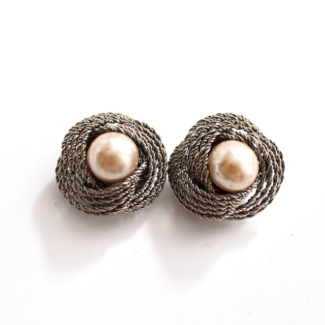 パール×ブラック*メタルワーク*フランスヴィンテージイヤリング