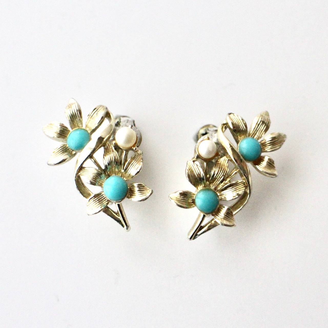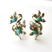 Jewlcraft*パール×ターコイズ*ダブルフラワー*ヴィンテージイヤリング