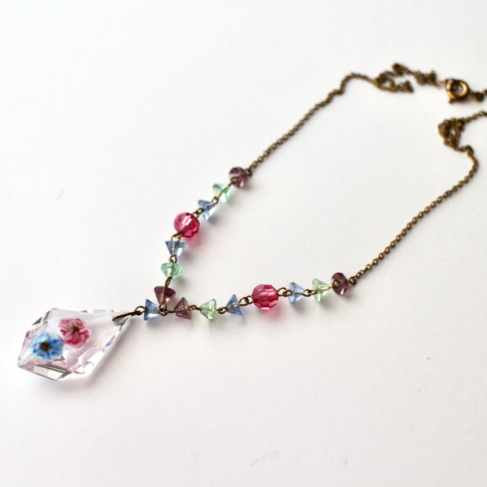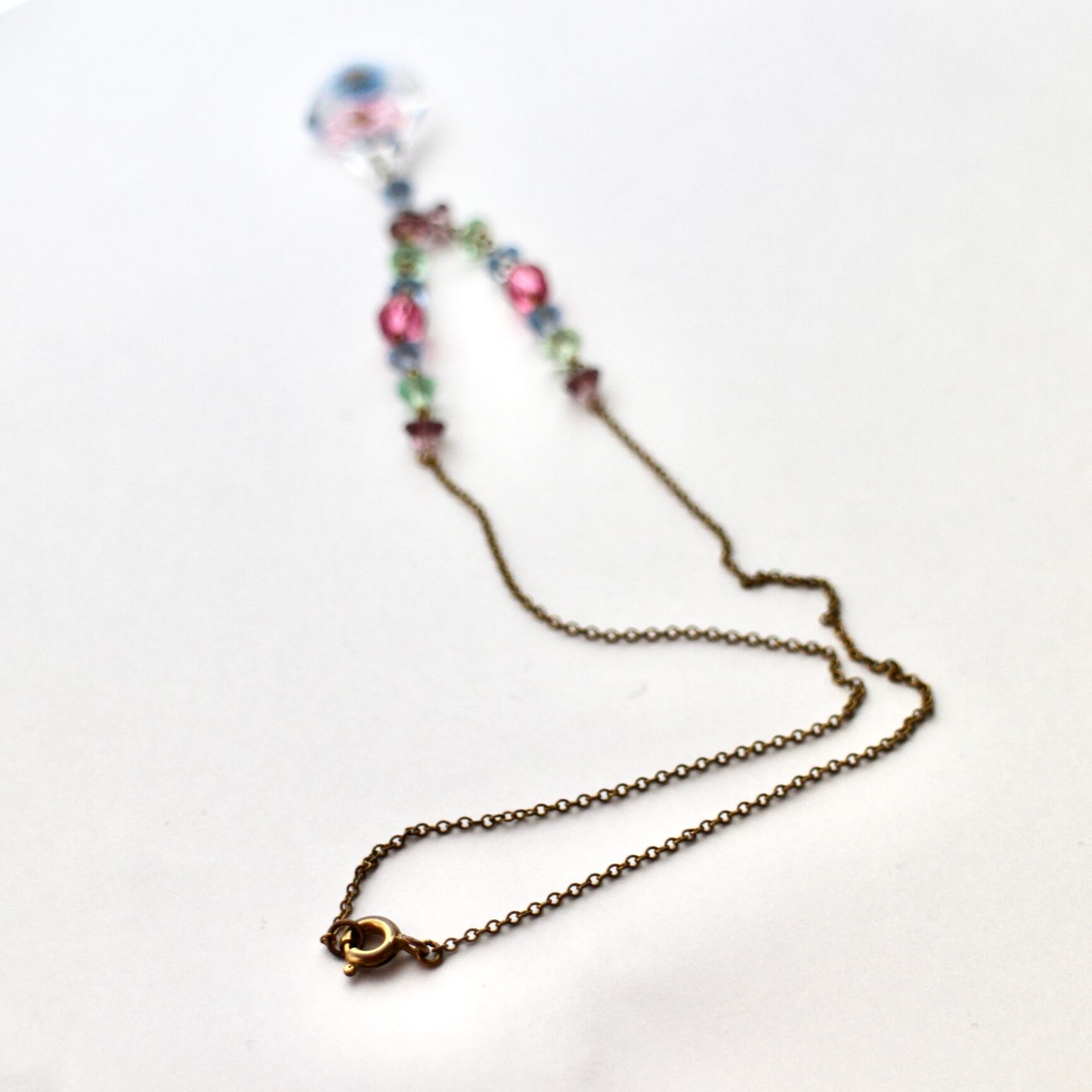 クリアクリスタル*インサイドフラワー*カラフルビジュー*ヴィンテージネックレス