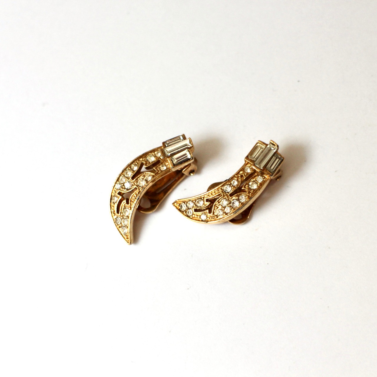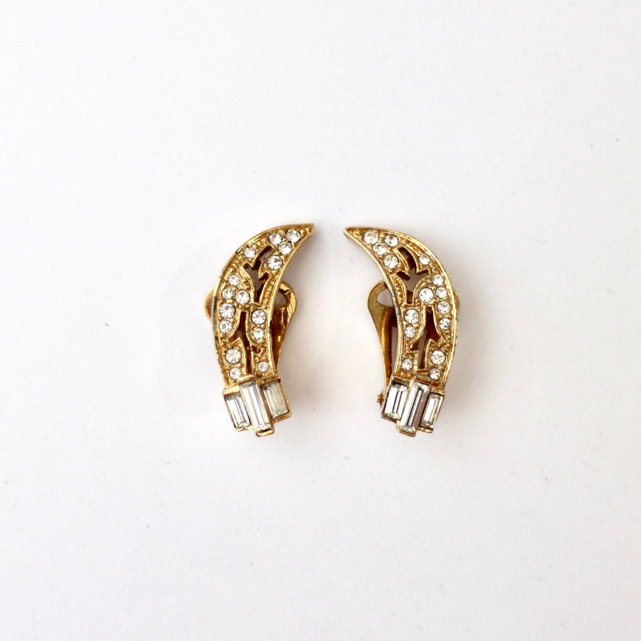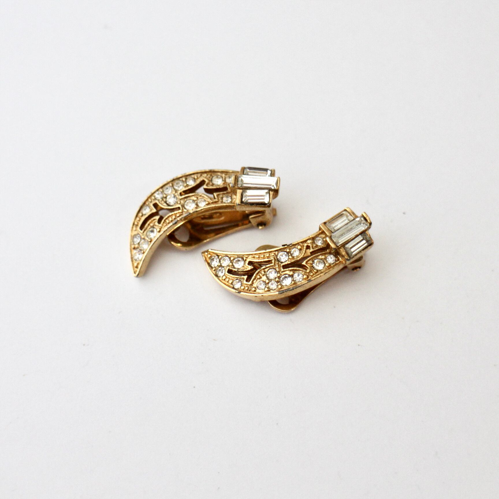 ムーンカーヴ*クリアビジュー*ヴィンテージイヤリング