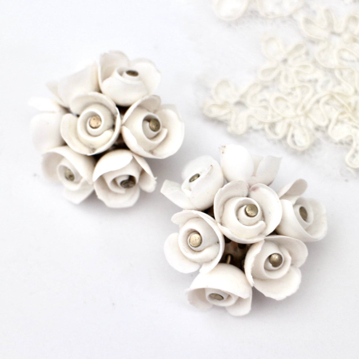 ホワイトローズブーケ*ヴィンテージイヤリング