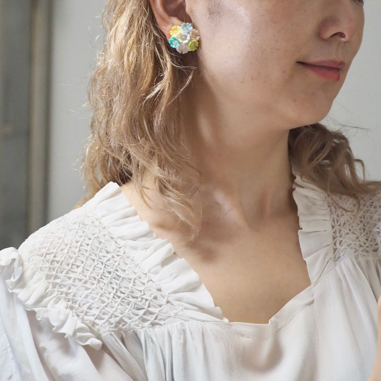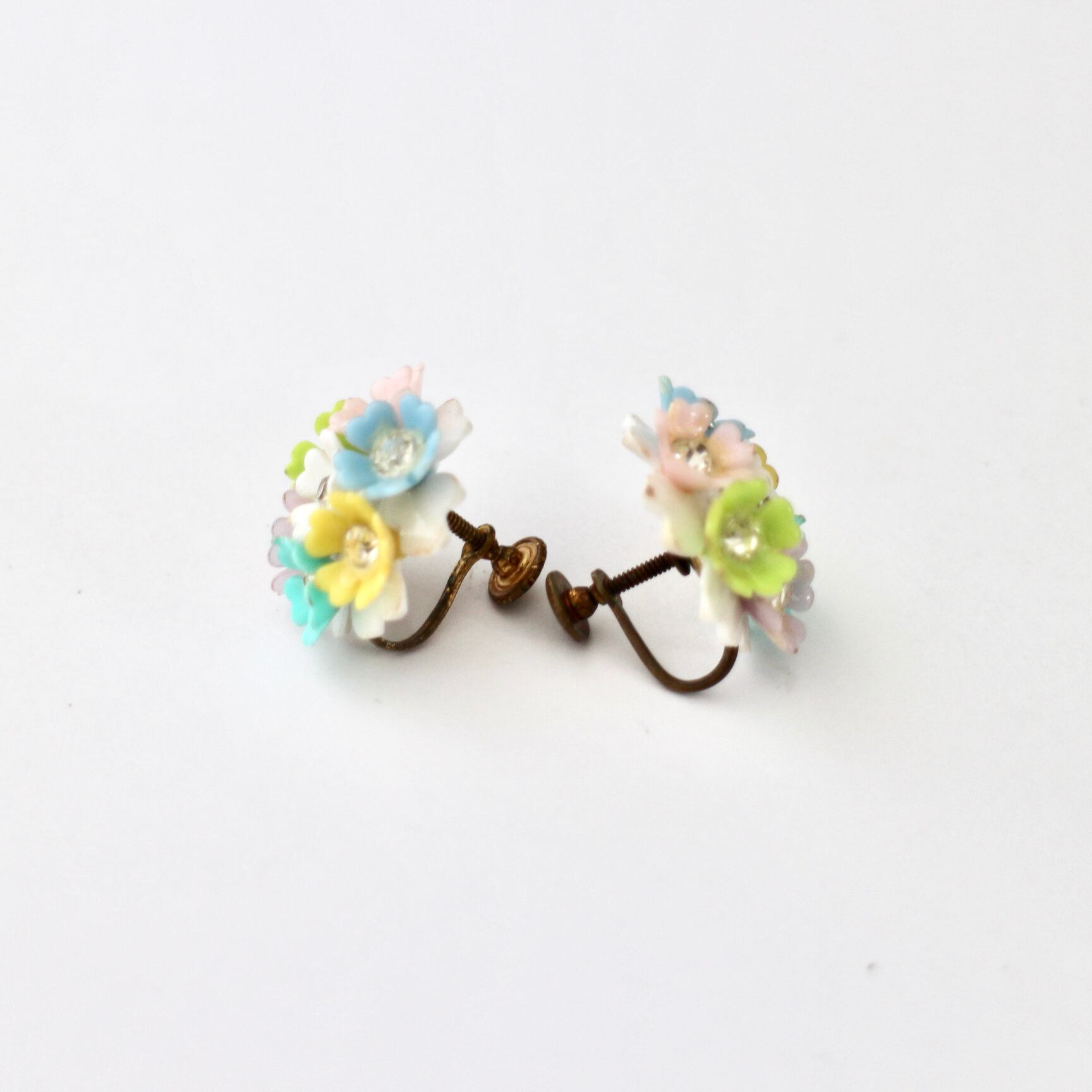ミルキーパステル*フラワーブーケ*ヴィンテージイヤリング