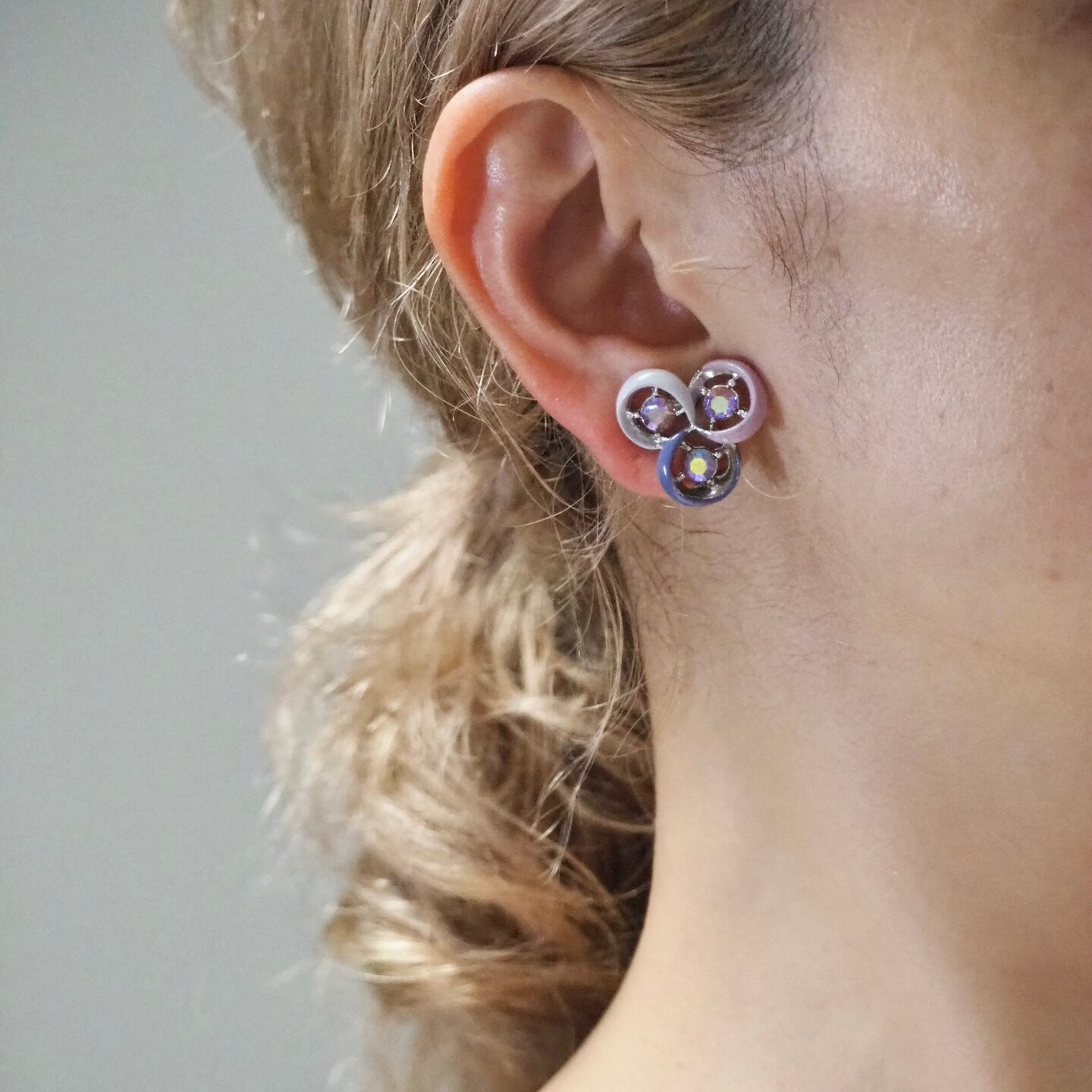 オーロラビジューが浮かぶヴィンテージイヤリング。