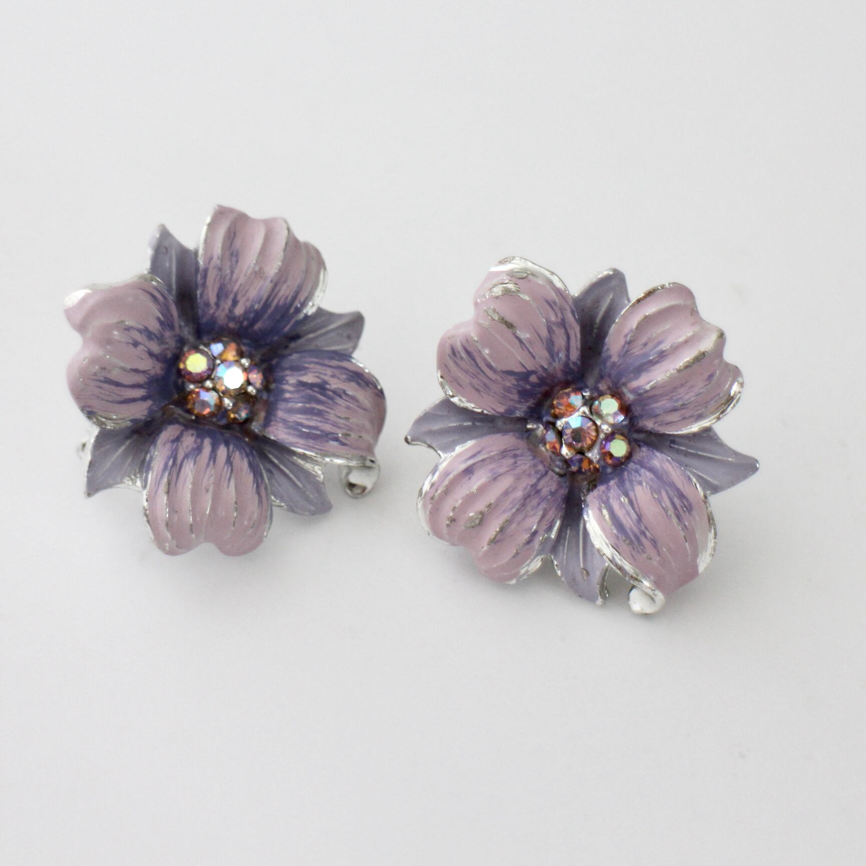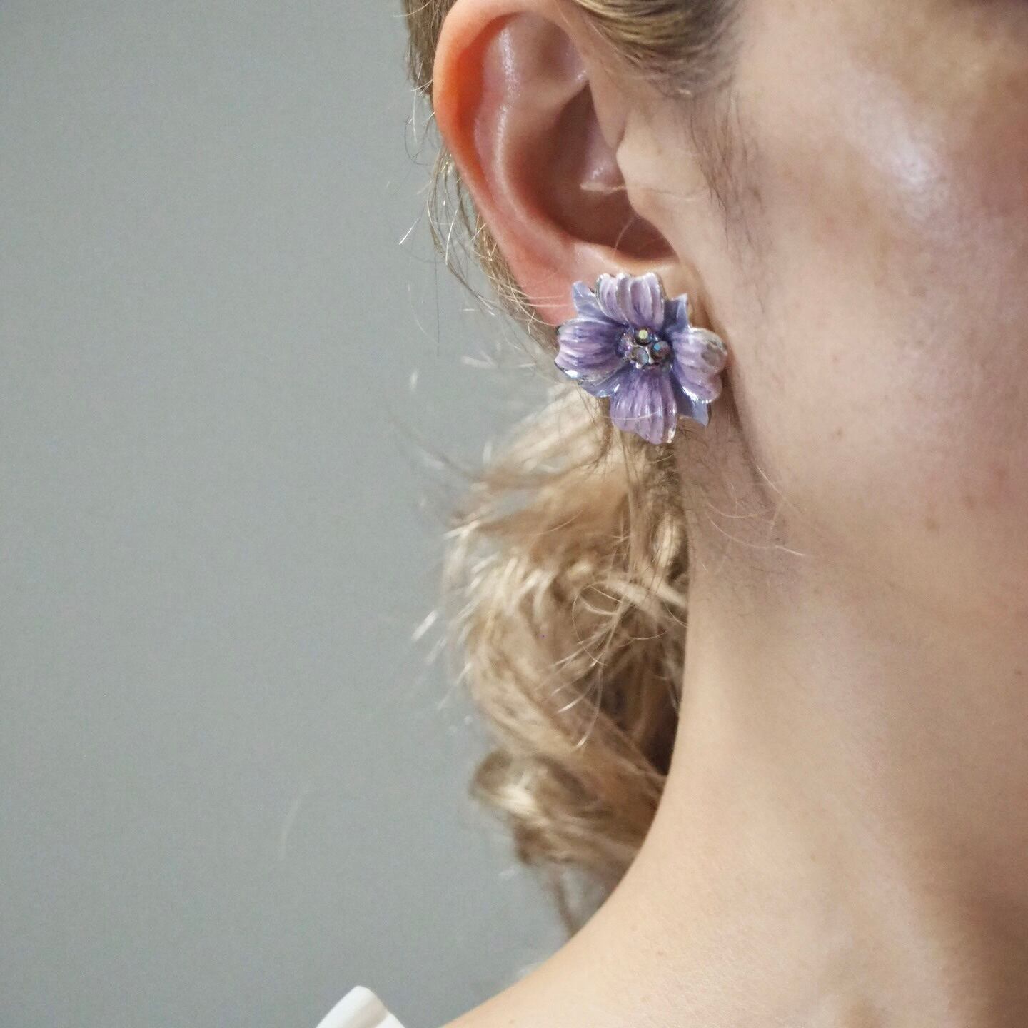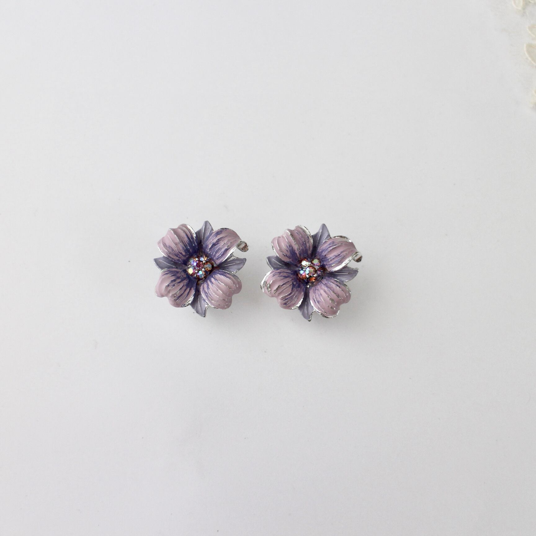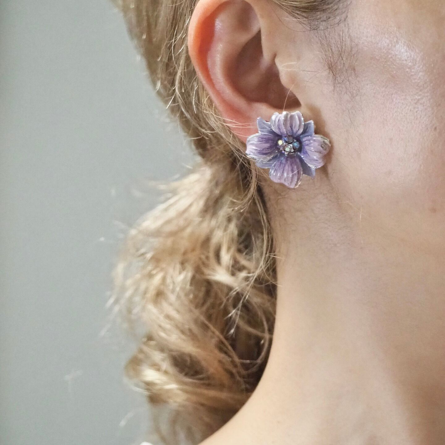 ラベンダーフラワー*オーロラビジュー*ヴィンテージイヤリング