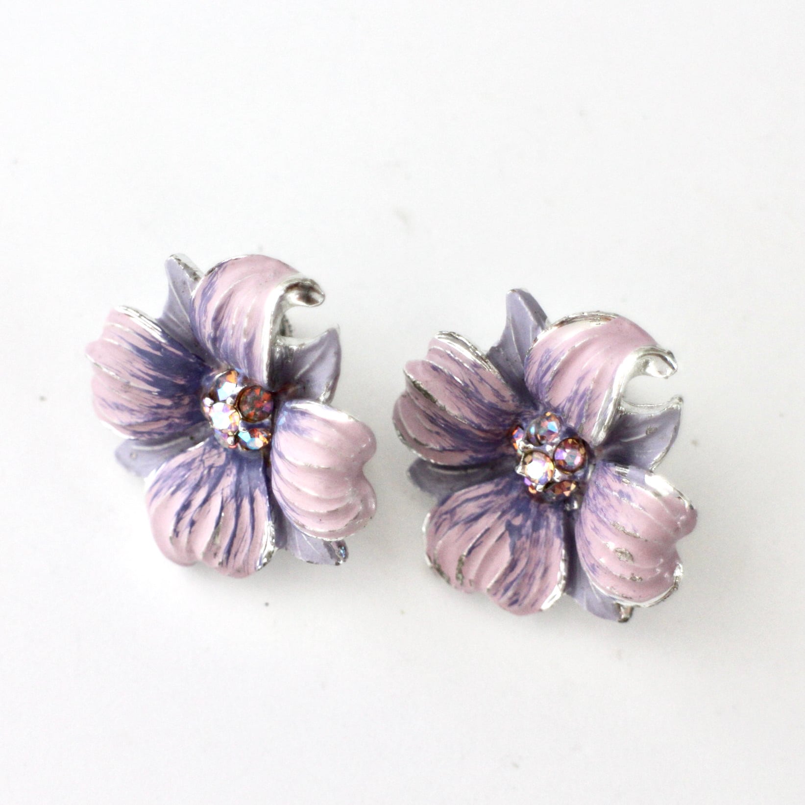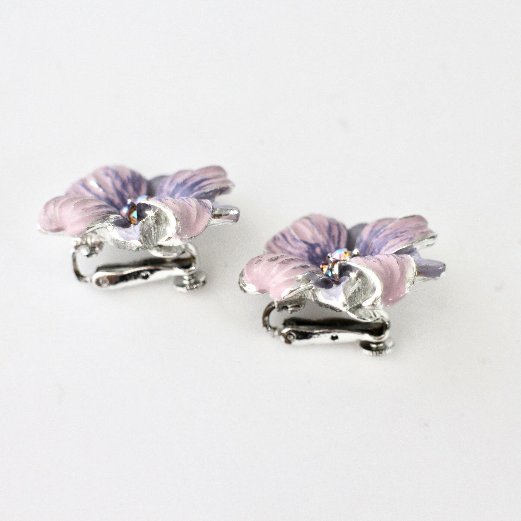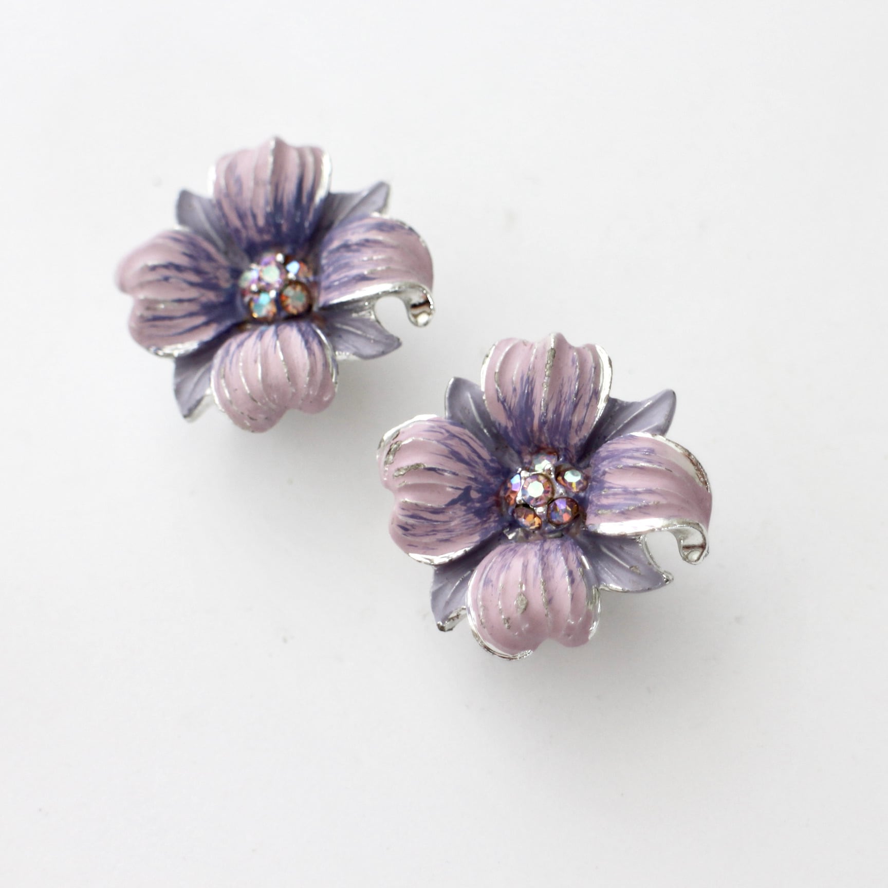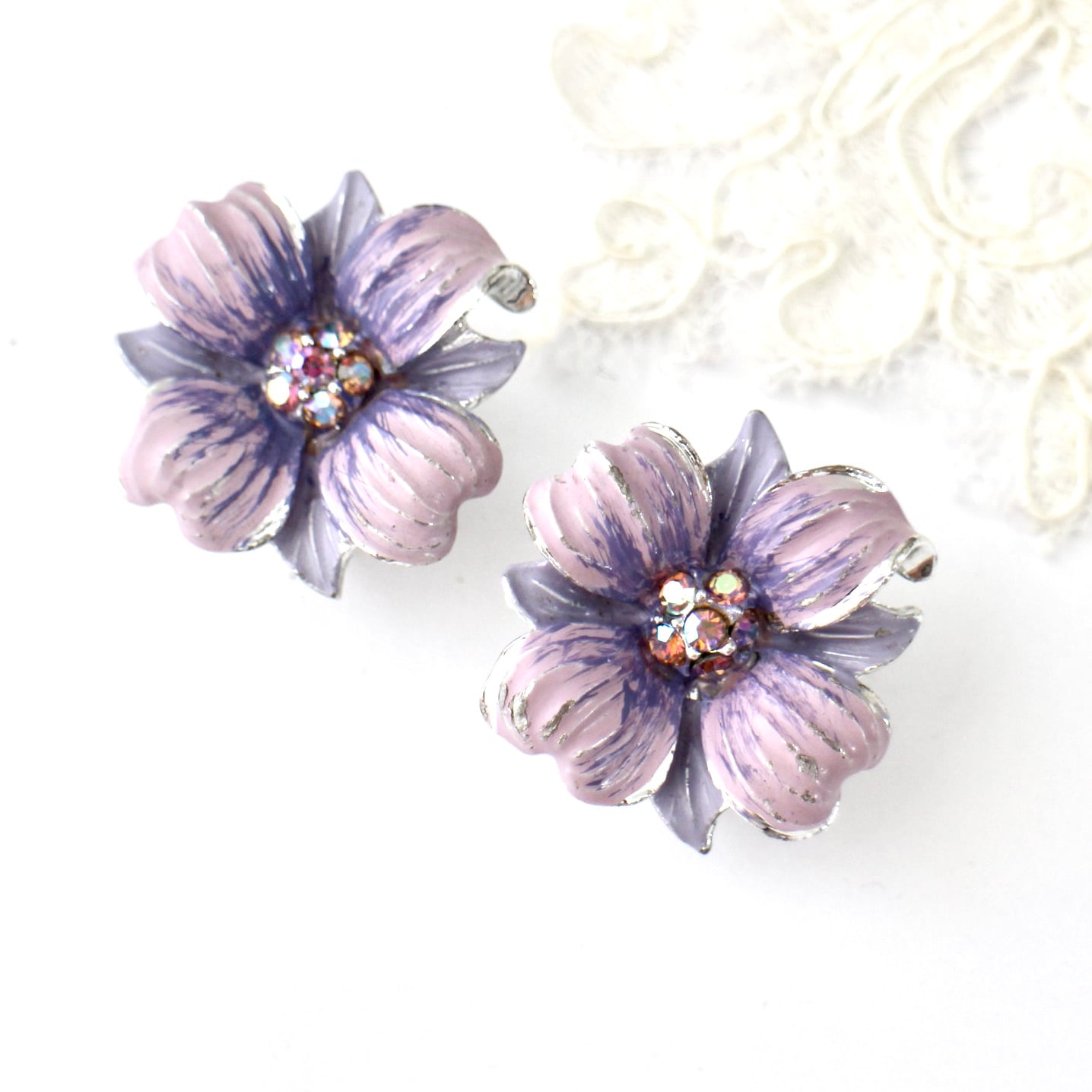 ラベンダーフラワー*オーロラビジュー*ヴィンテージイヤリング