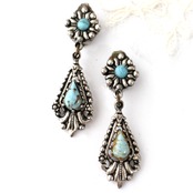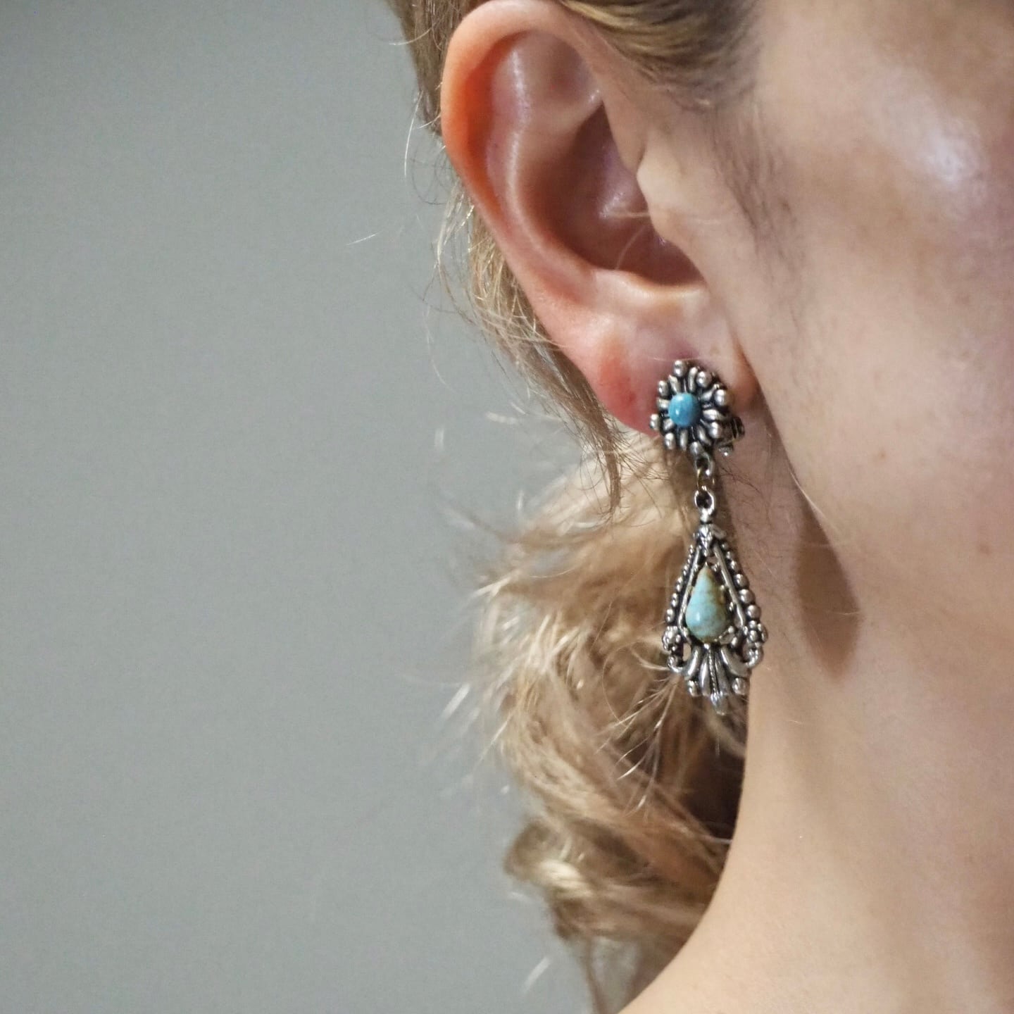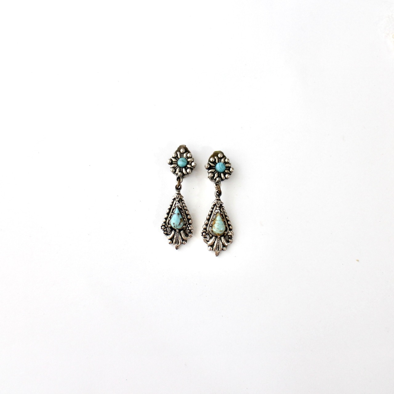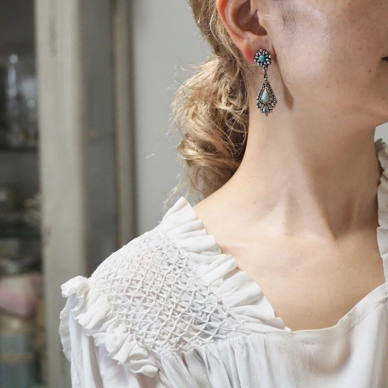 アールデコスタイル*ターコイズガラスドロップ*ヴィンテージイヤリング