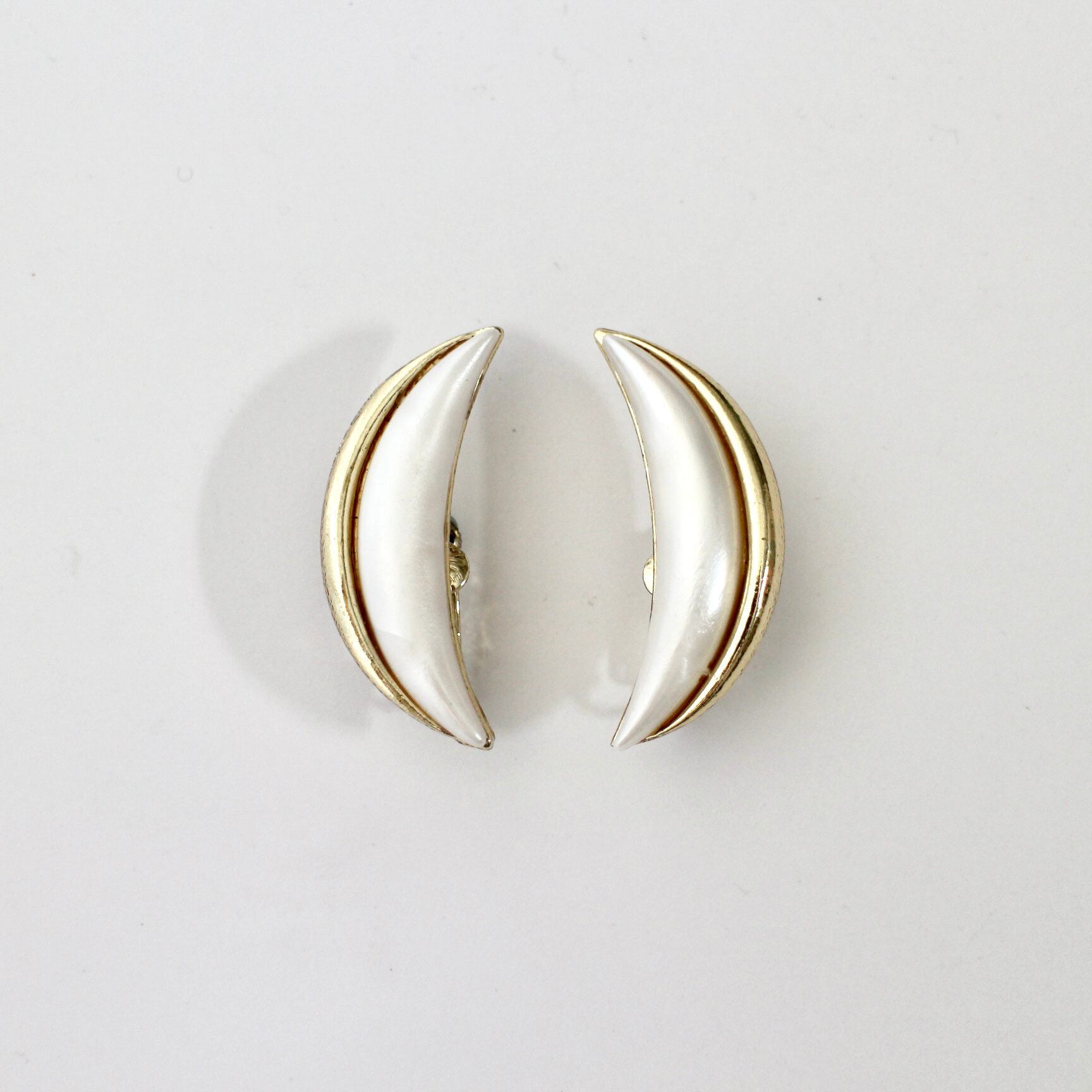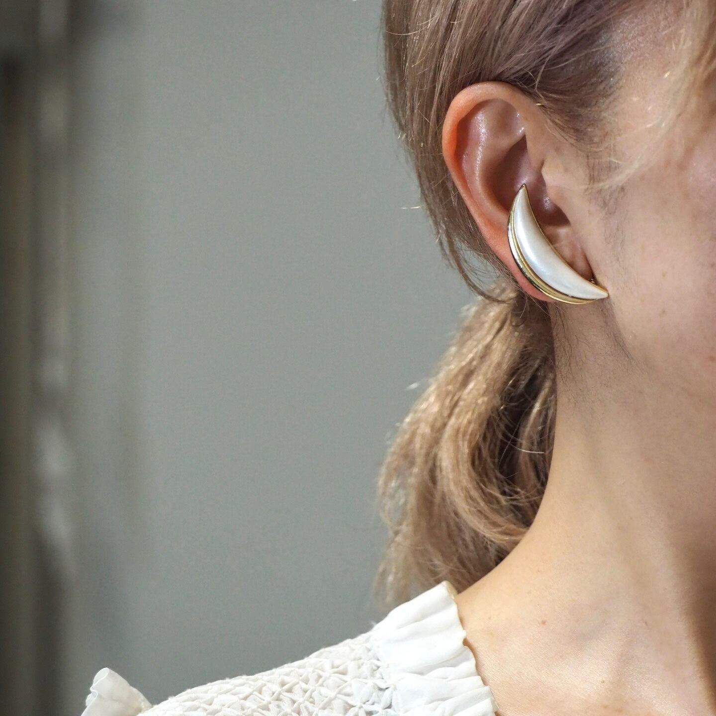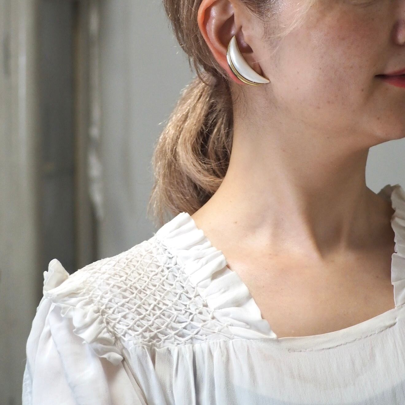 ホワイト×ゴールド*ムーンシェイプイヤリング*White Moon