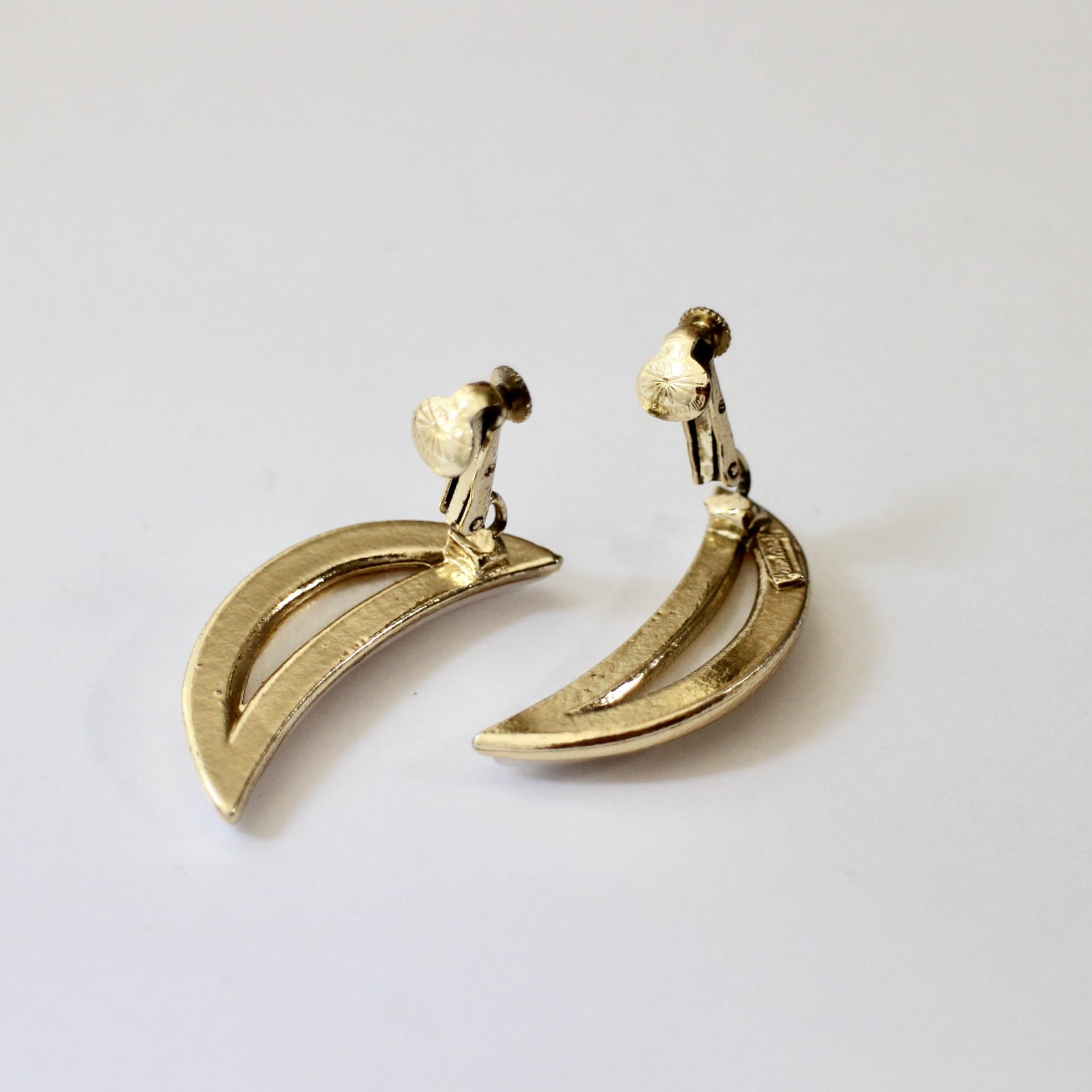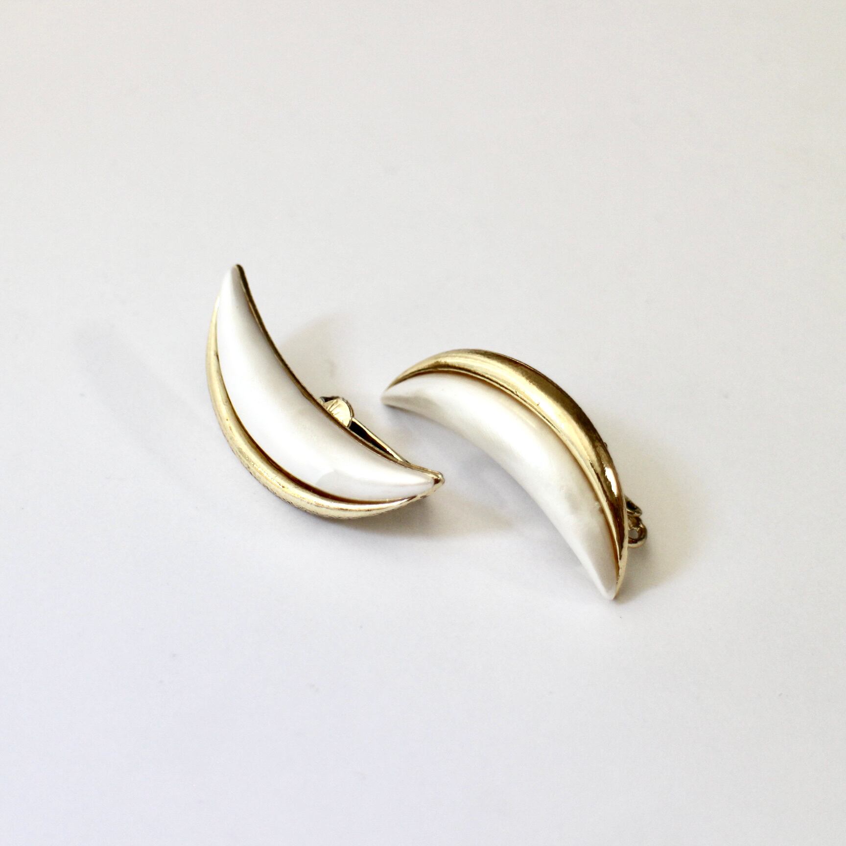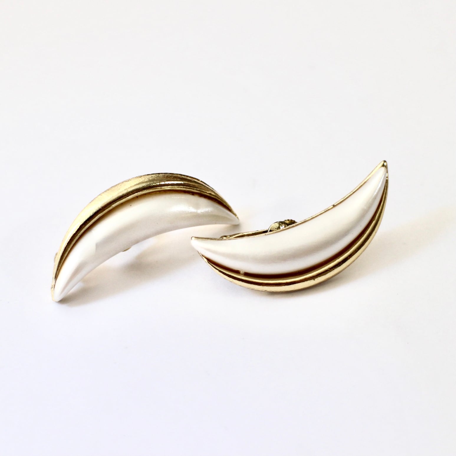 ホワイト×ゴールド*ムーンシェイプイヤリング*White Moon