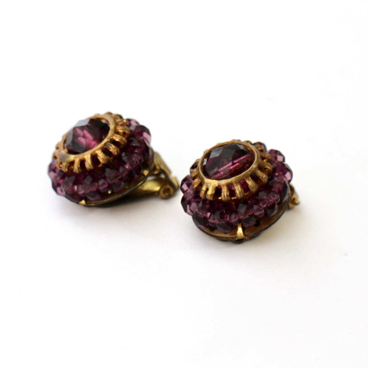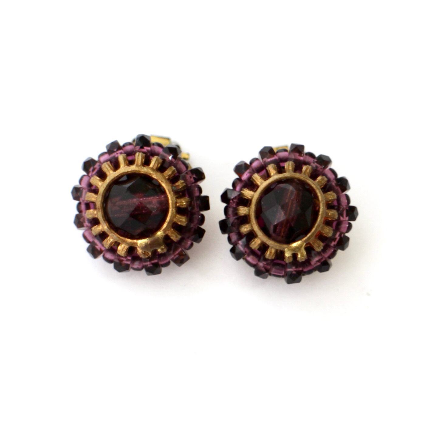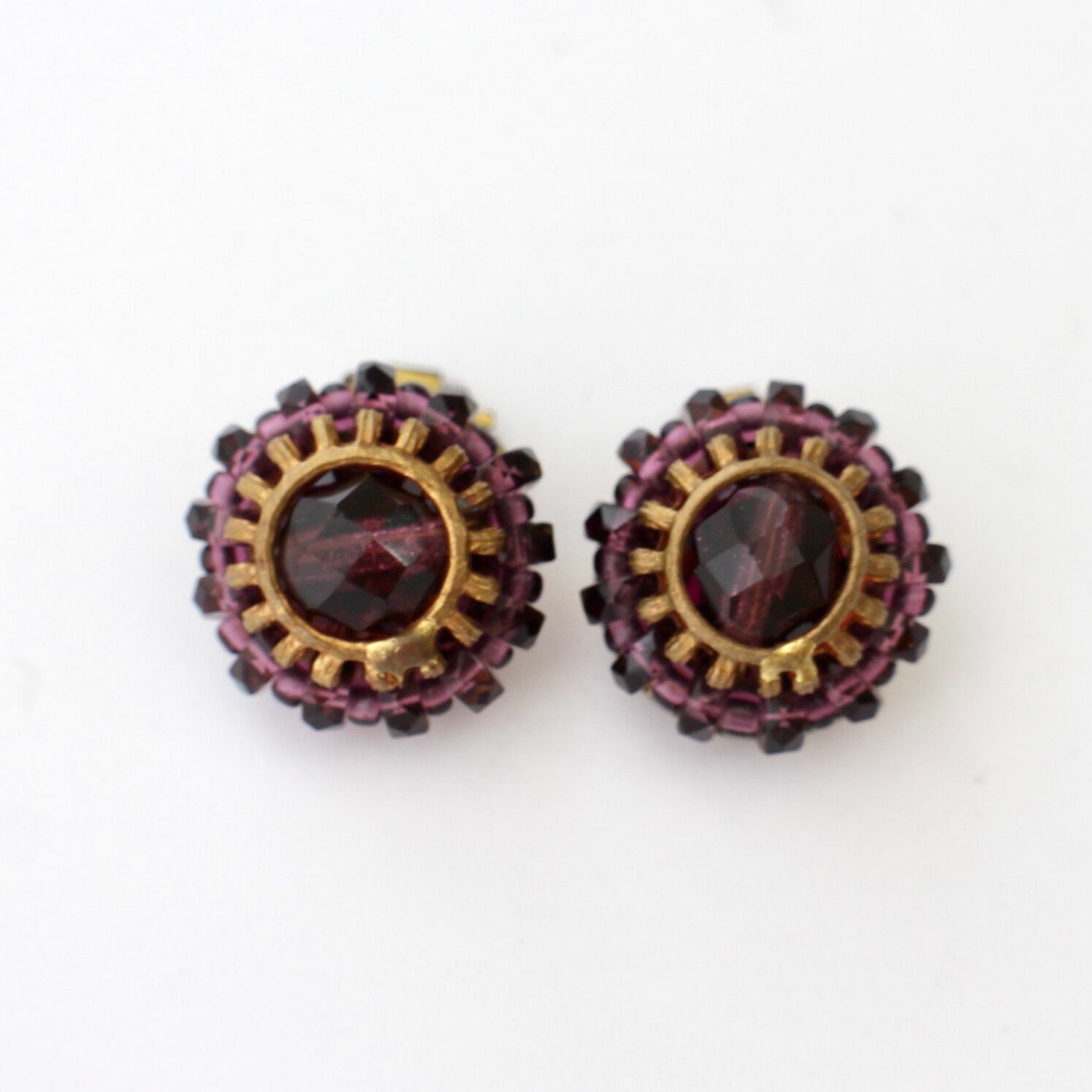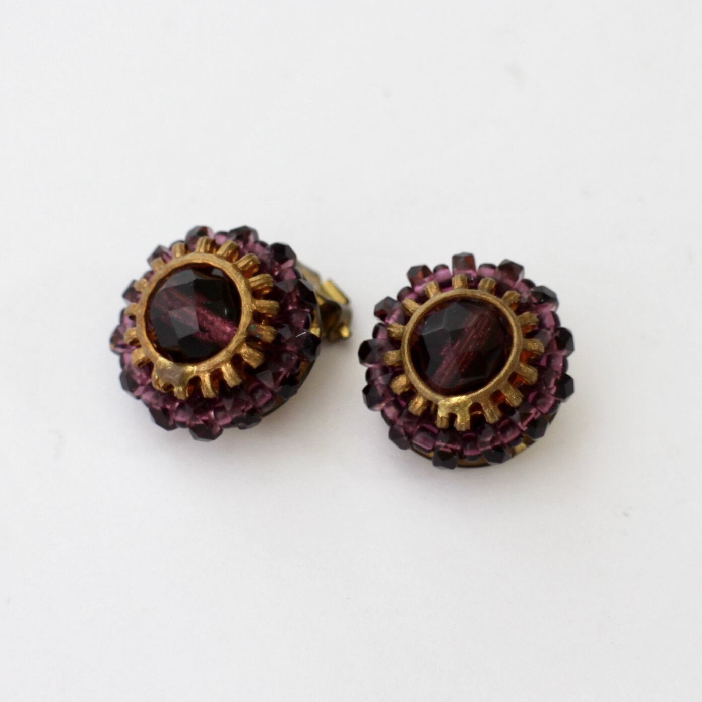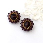 ノーブルパープル*ラウンドシェイプ*ヴィンテージイヤリング