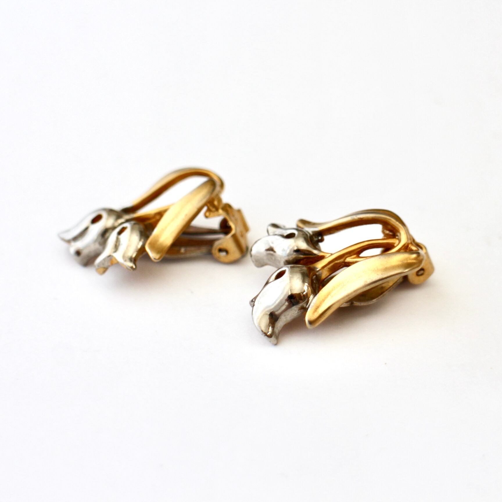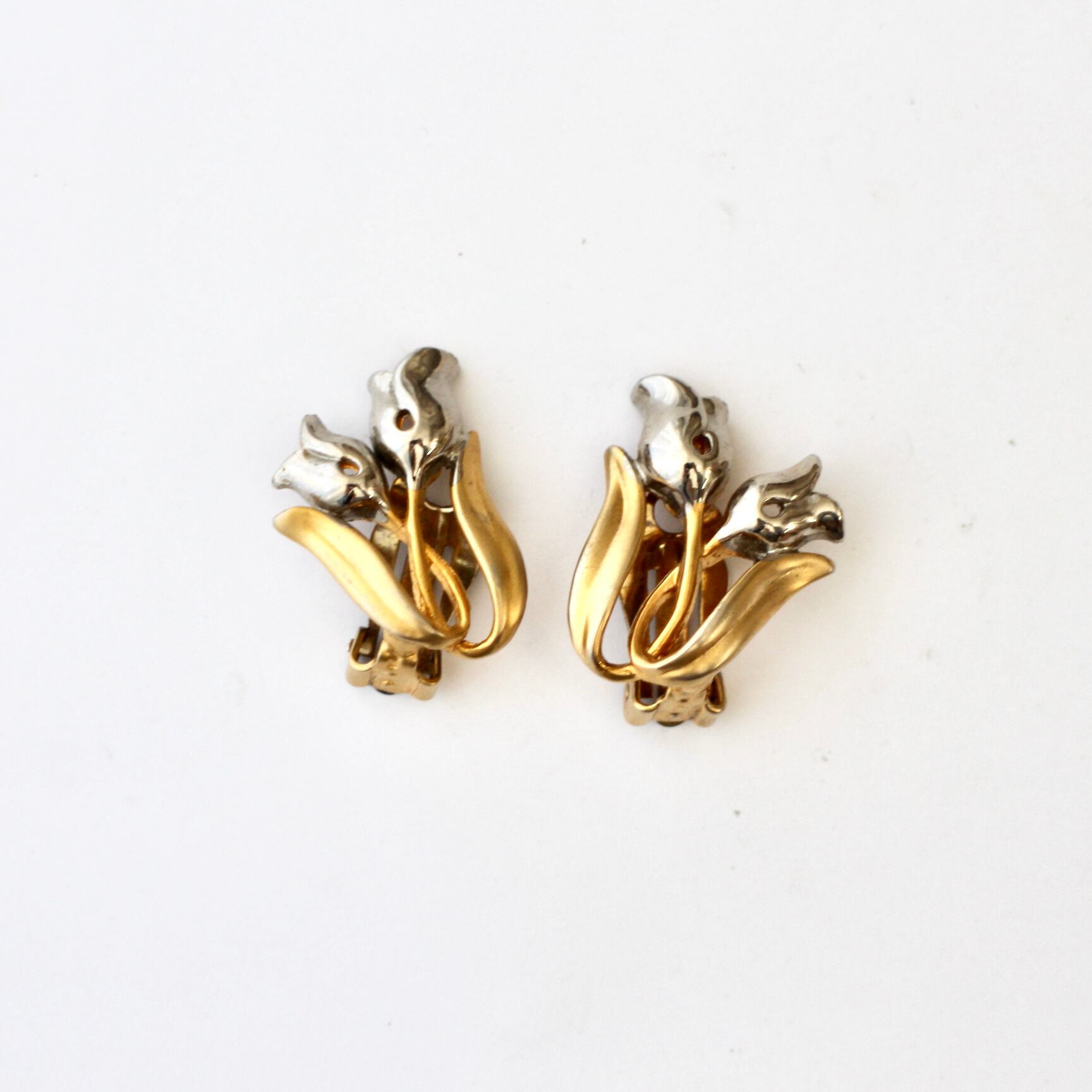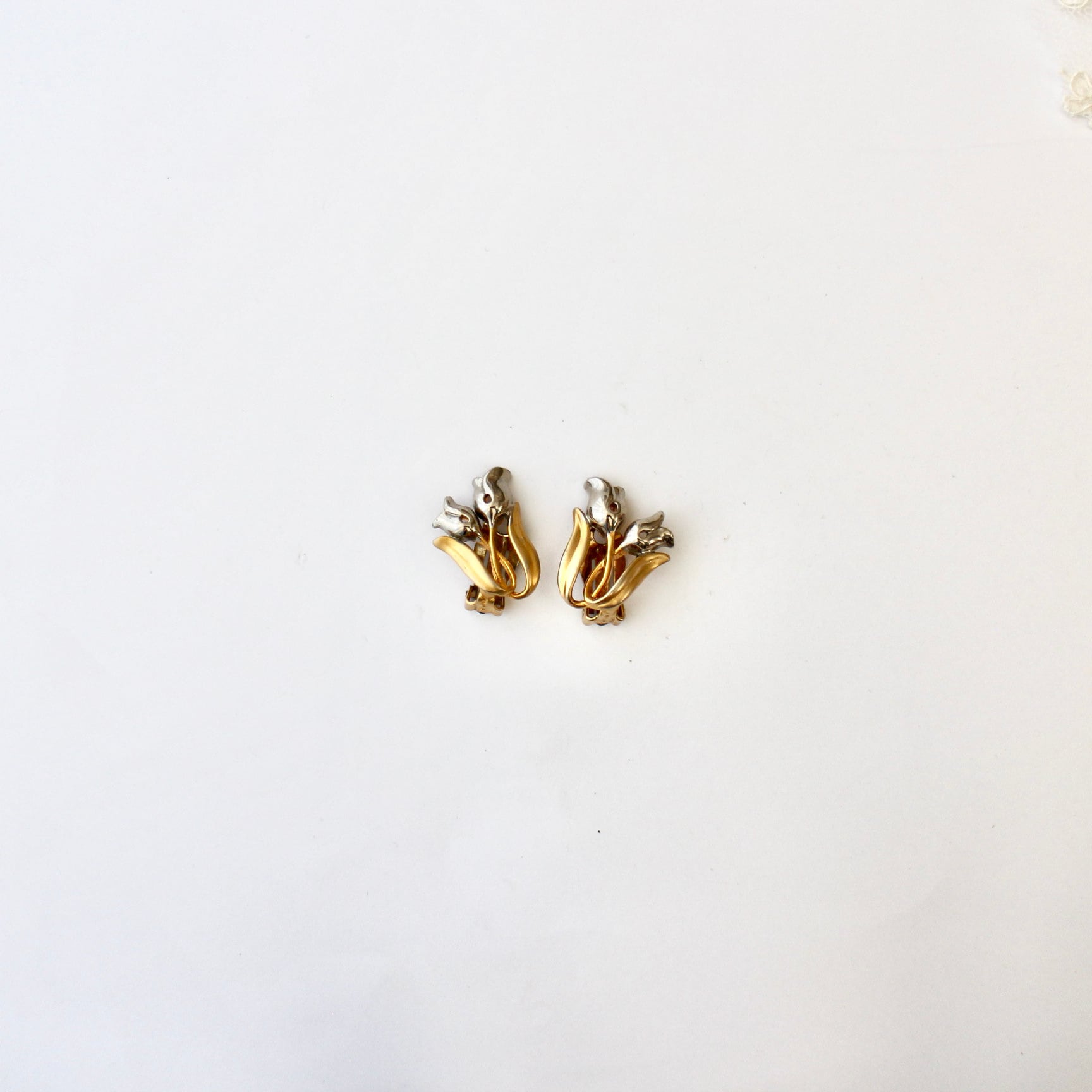 ゴールド×シルバー*チューリップ*ヴィンテージイヤリング