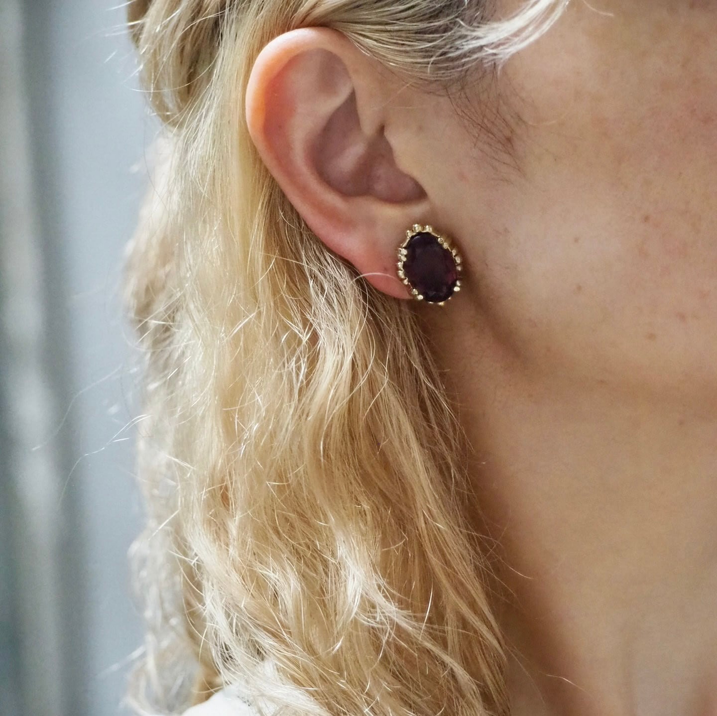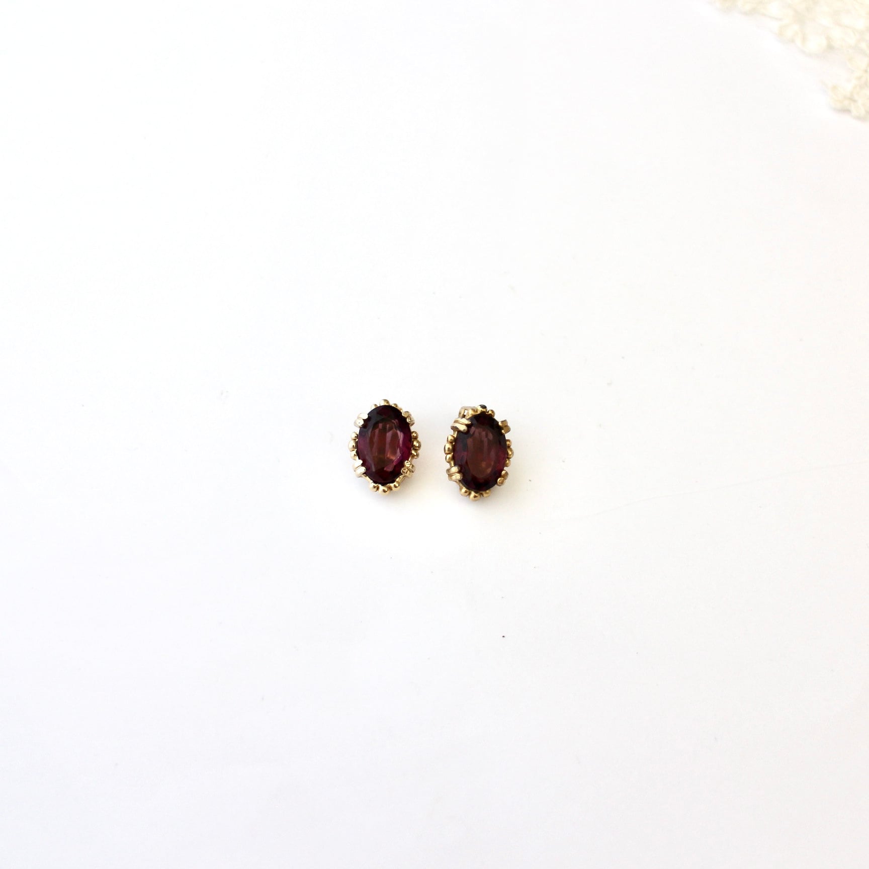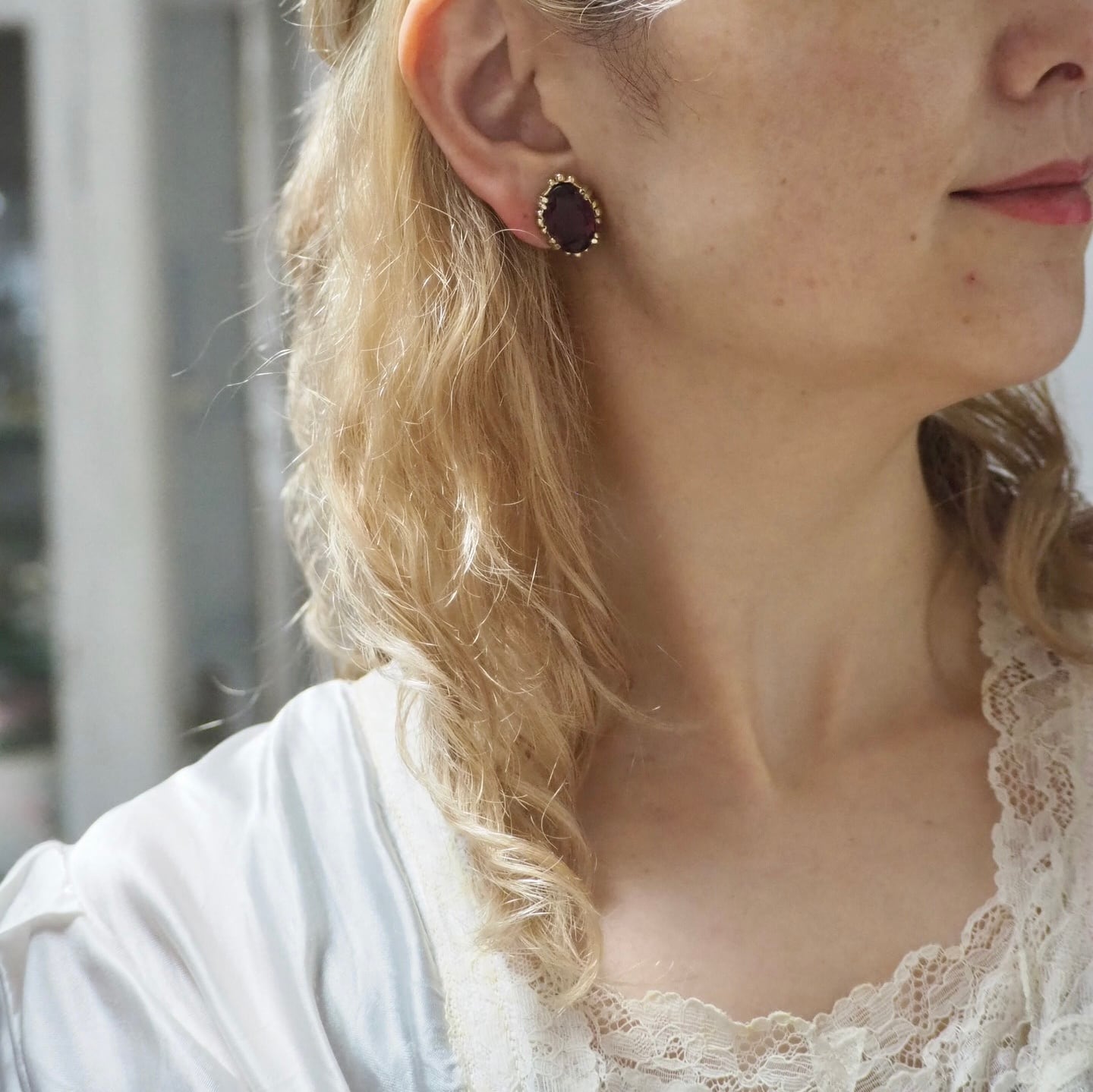 ボルドーパープル*クラシカルオーバル*ヴィンテージイヤリング