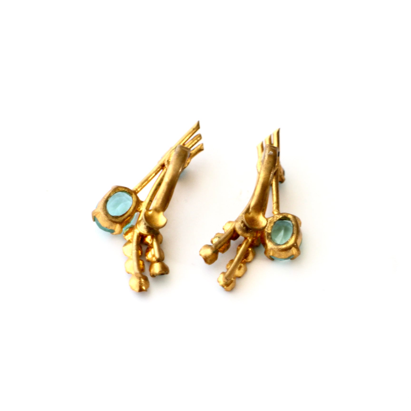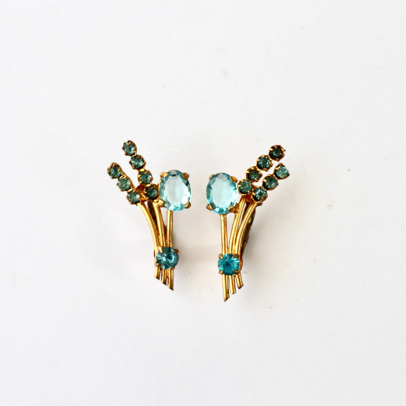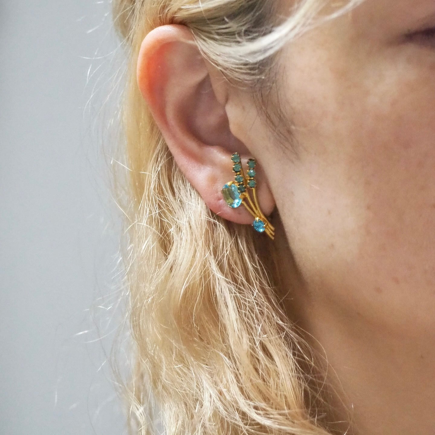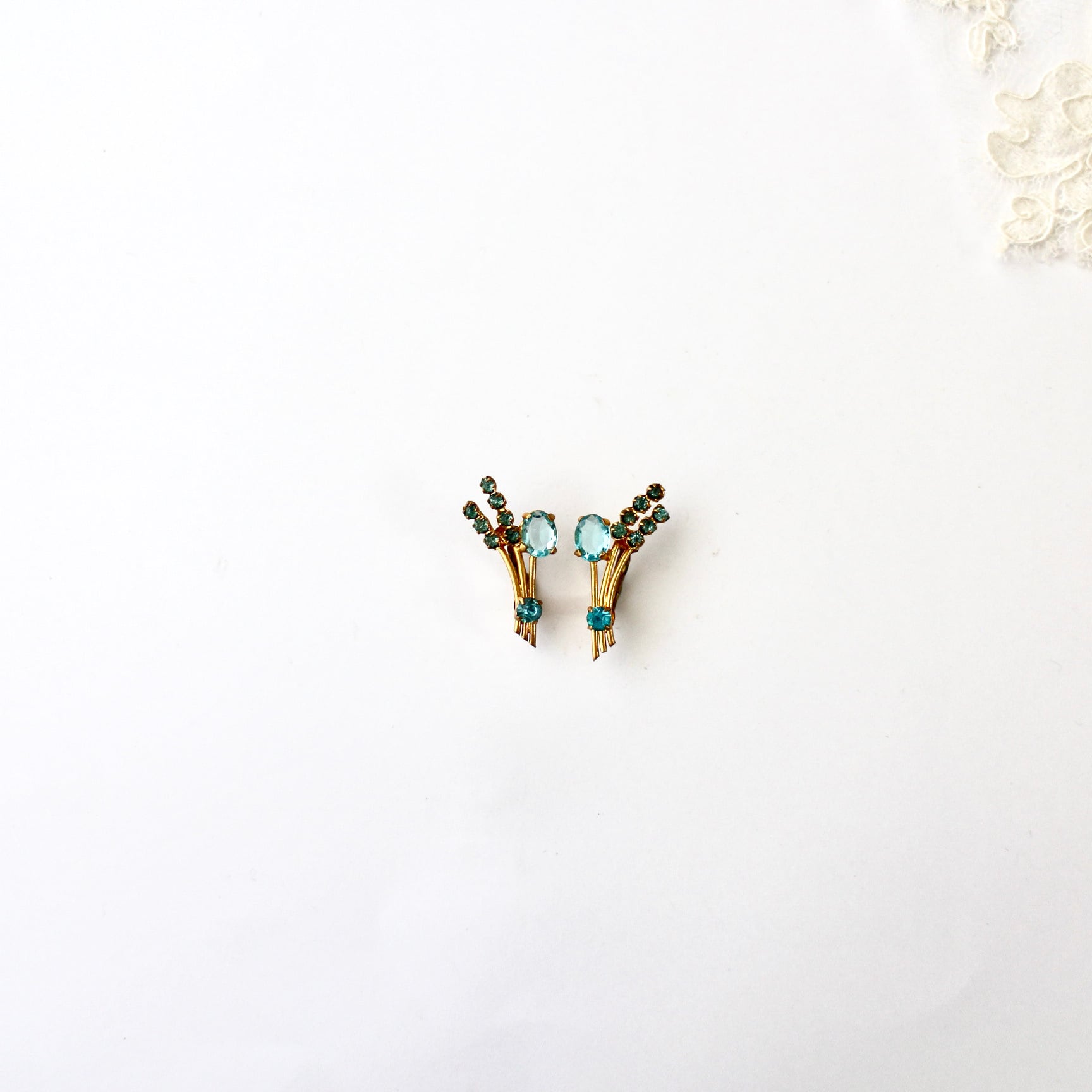 アクアブルー×ゴールド*フラワーブーケ*ヴィンテージイヤリング