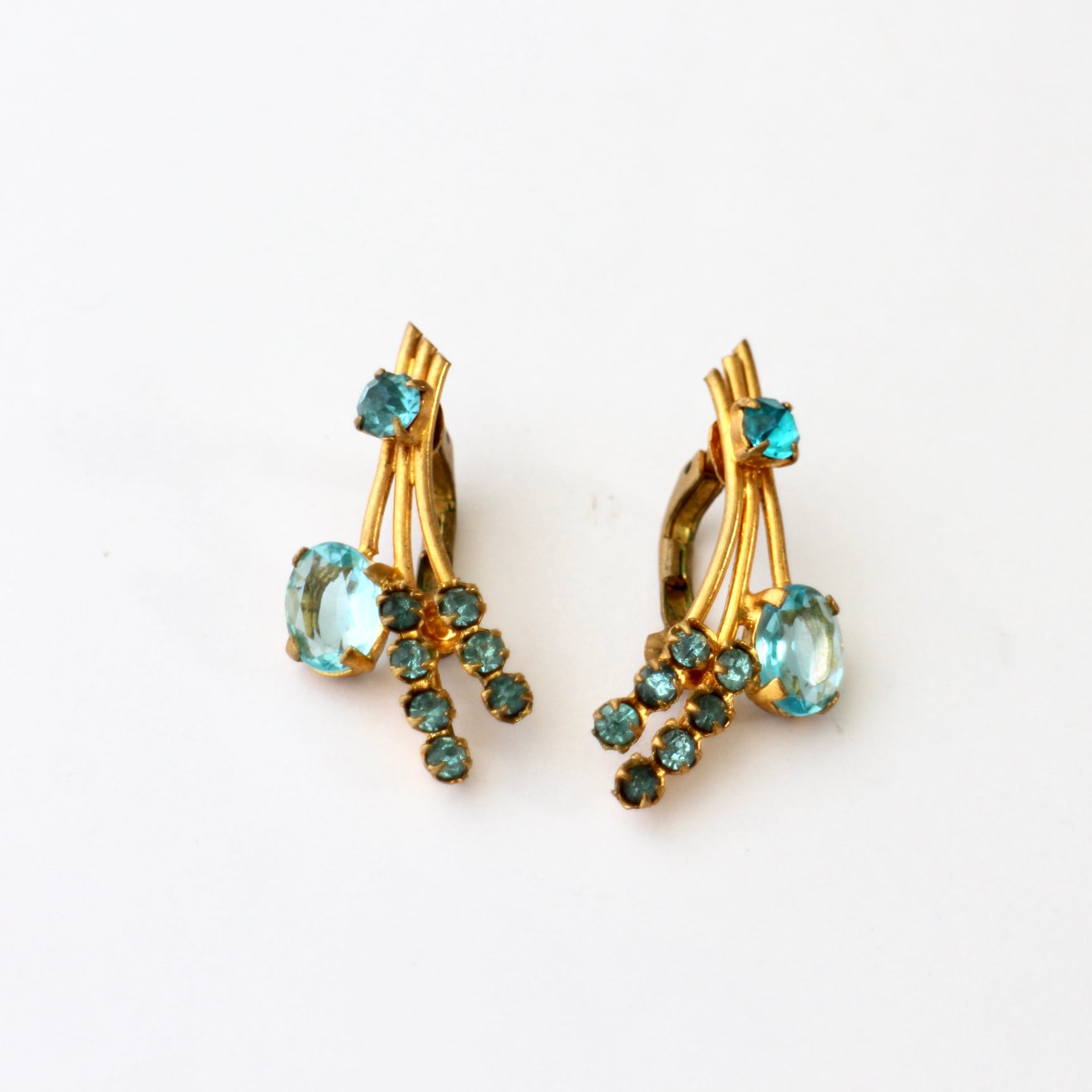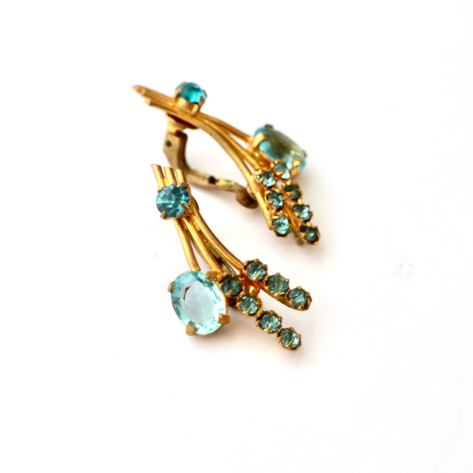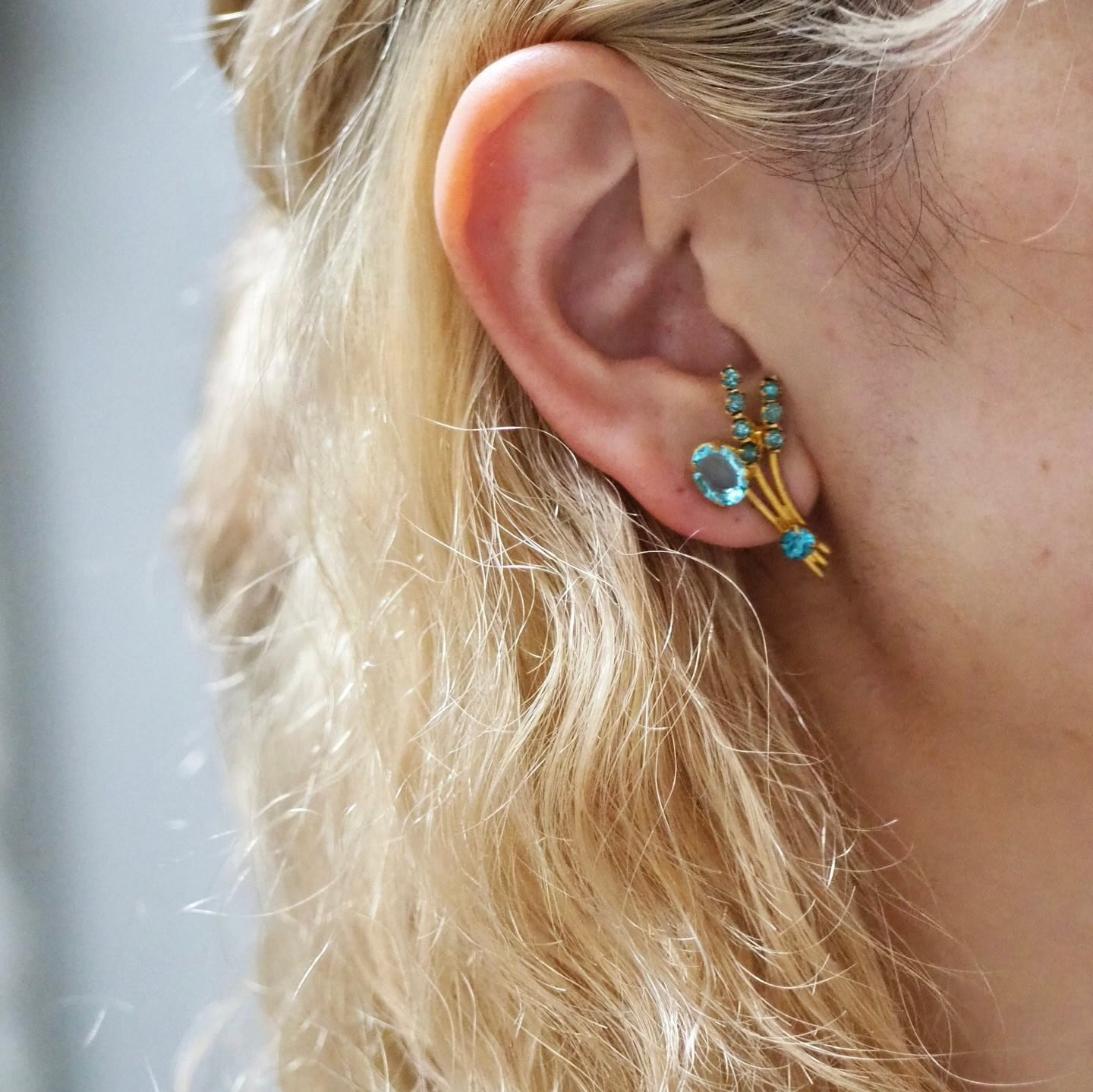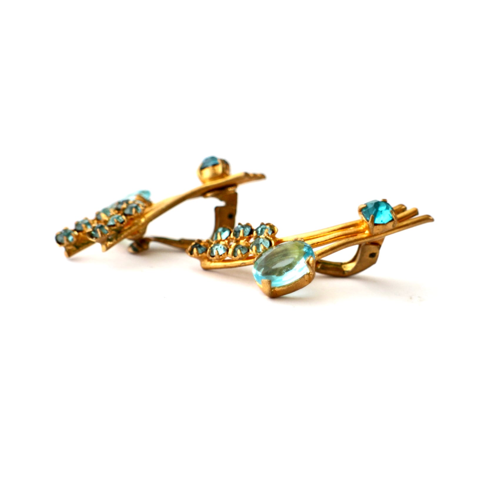 アクアブルー×ゴールド*フラワーブーケ*ヴィンテージイヤリング