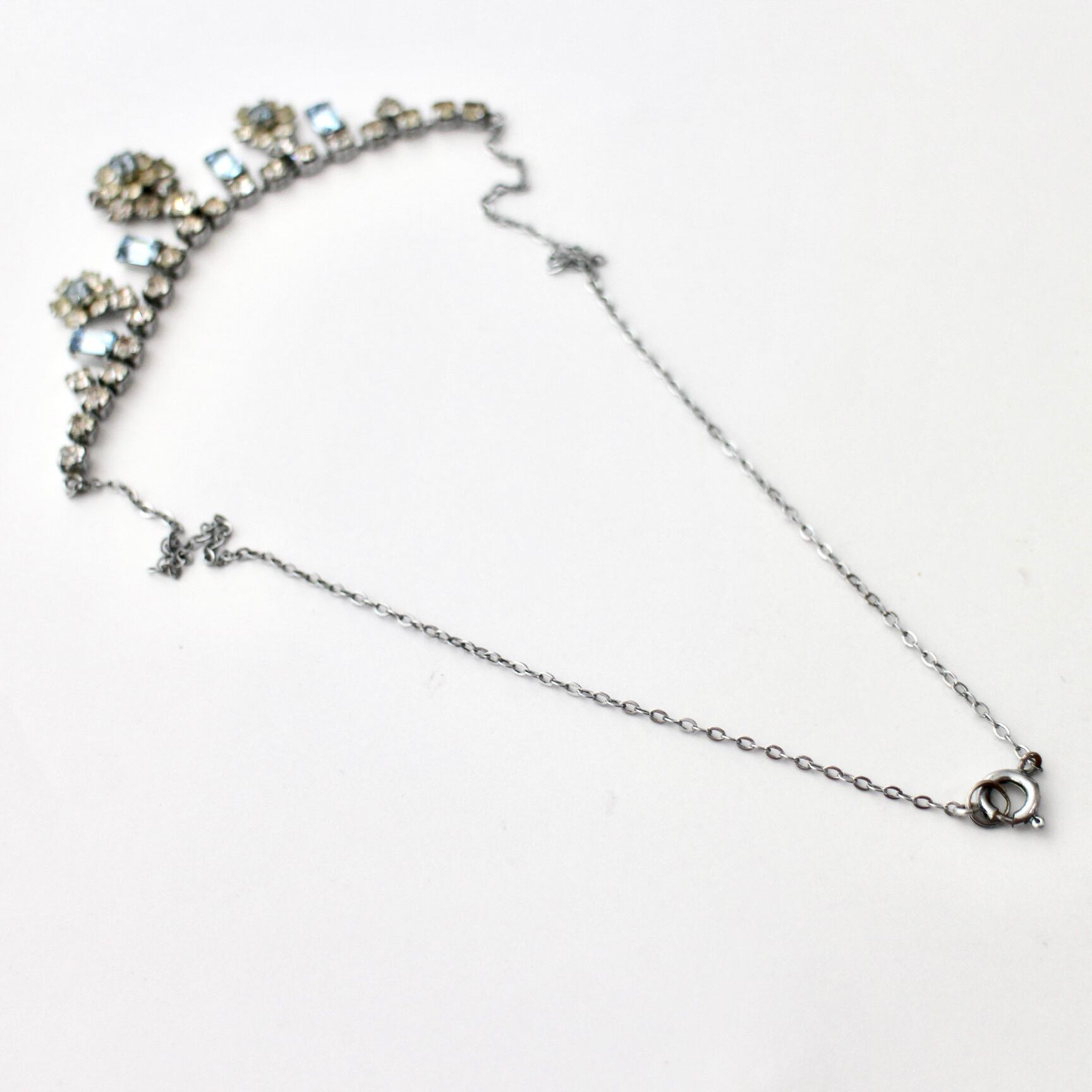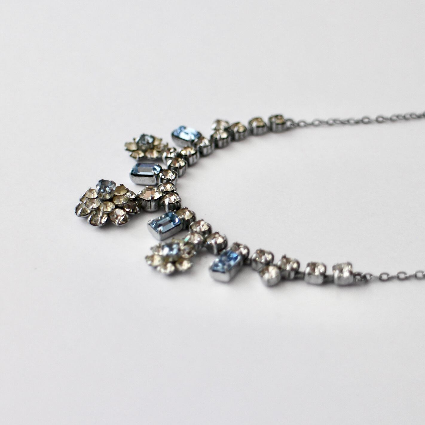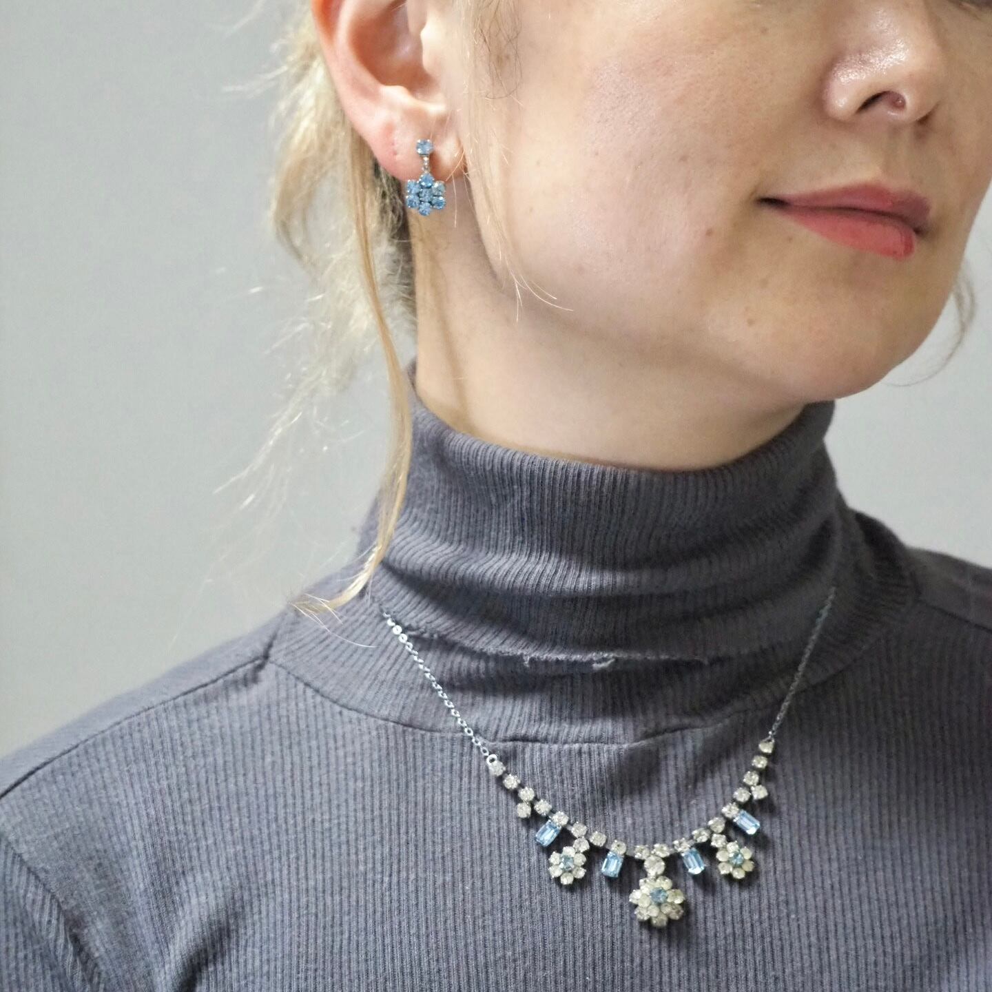 クリア×ライトブルー*プチフラワー*ヴィンテージネックレス
