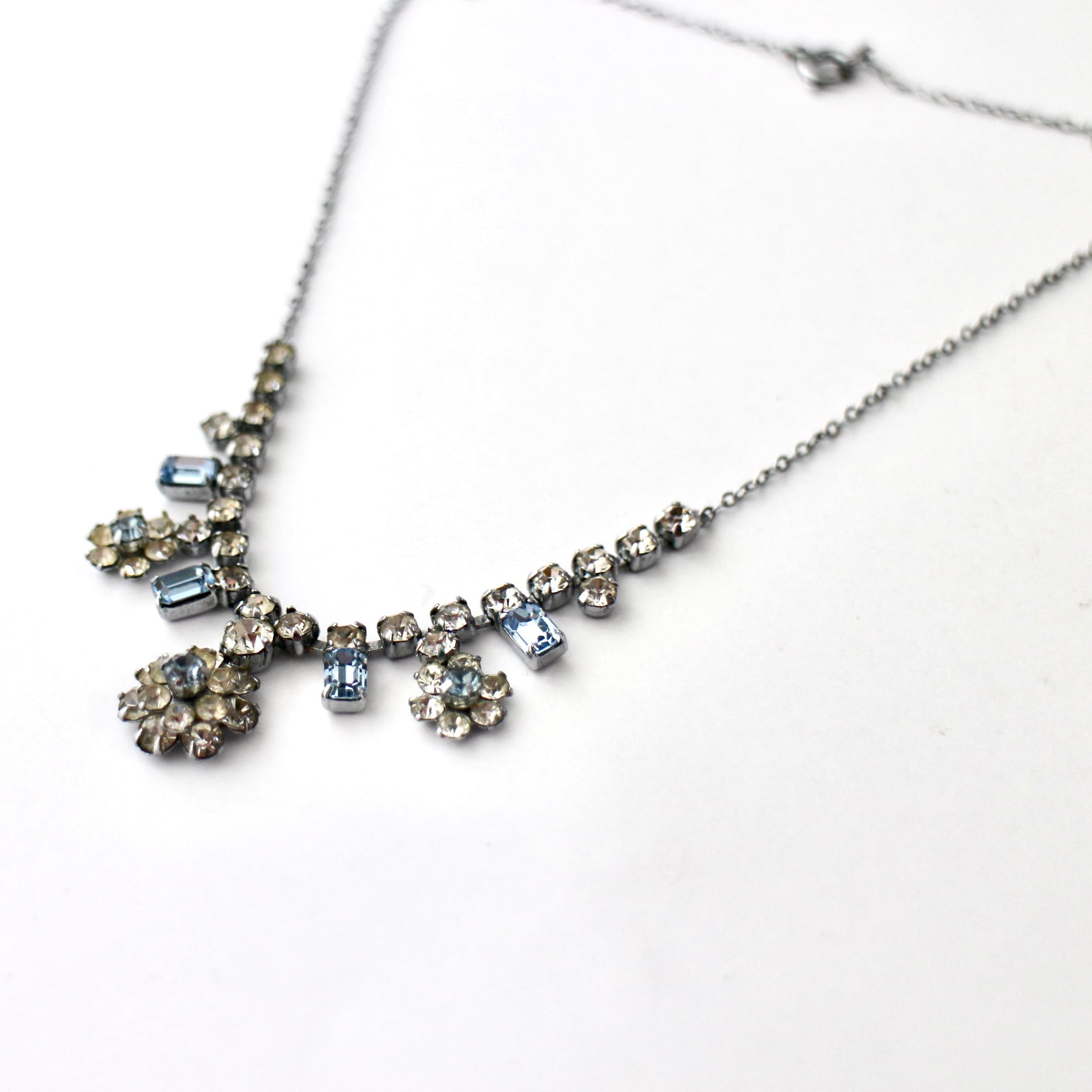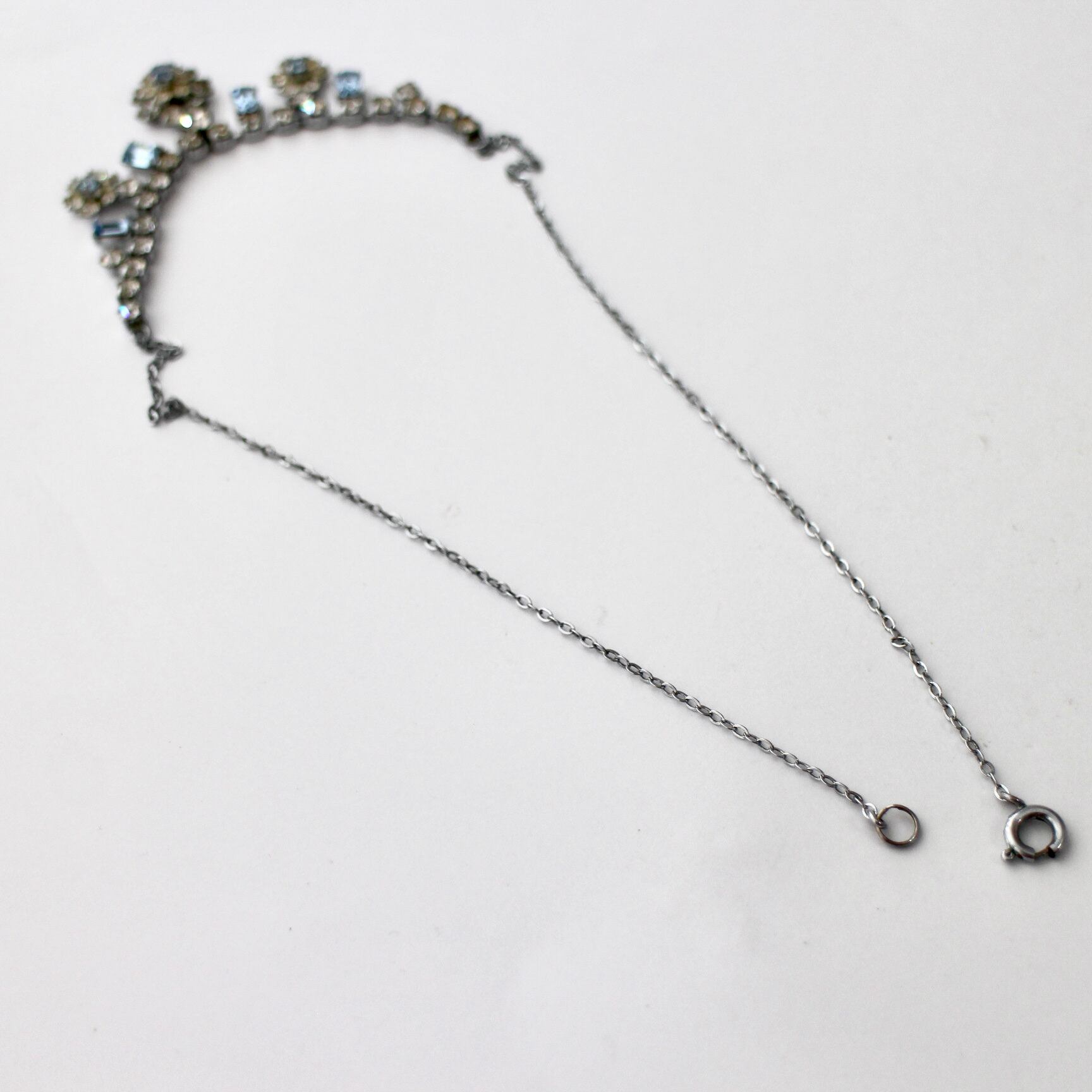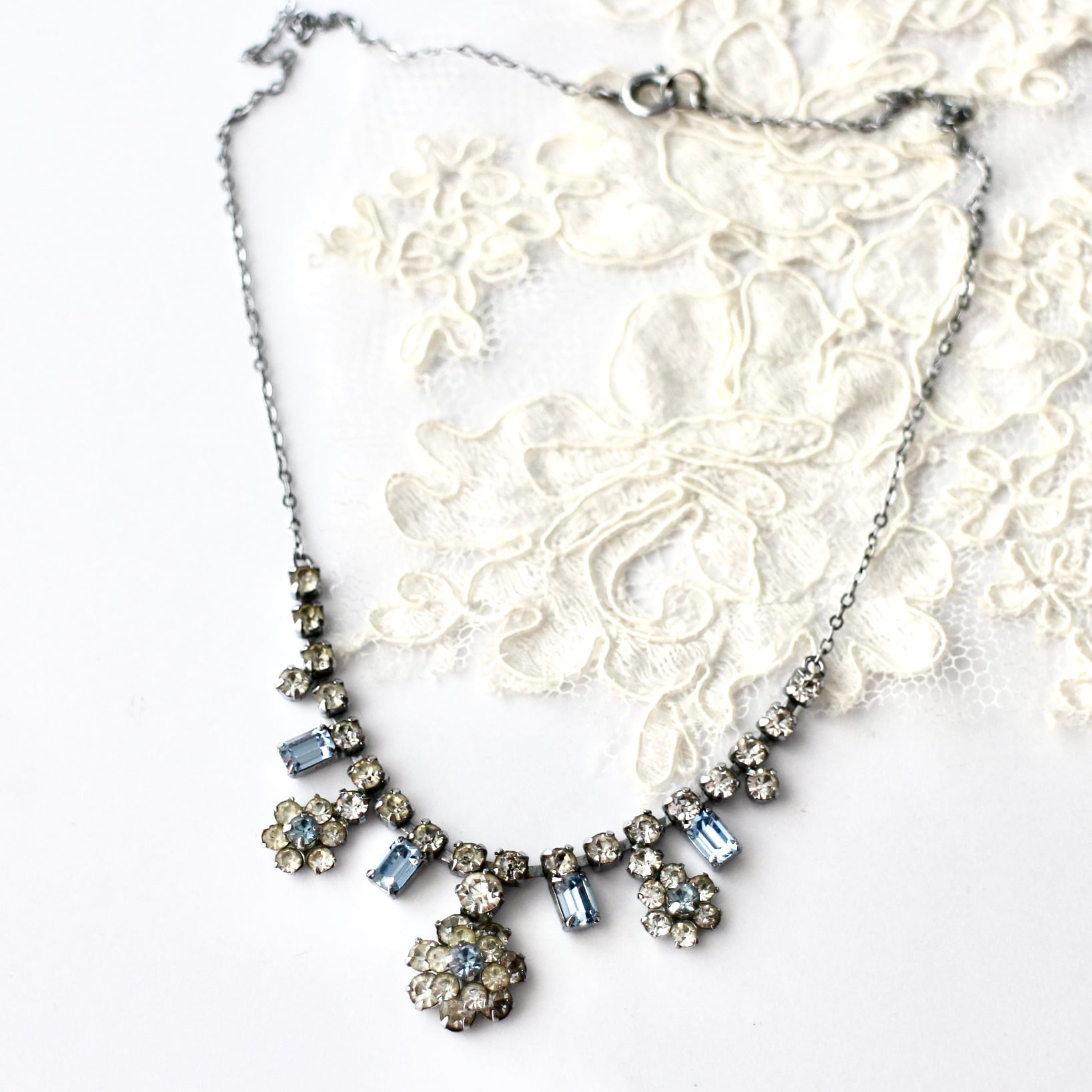 クリア×ライトブルー*プチフラワー*ヴィンテージネックレス