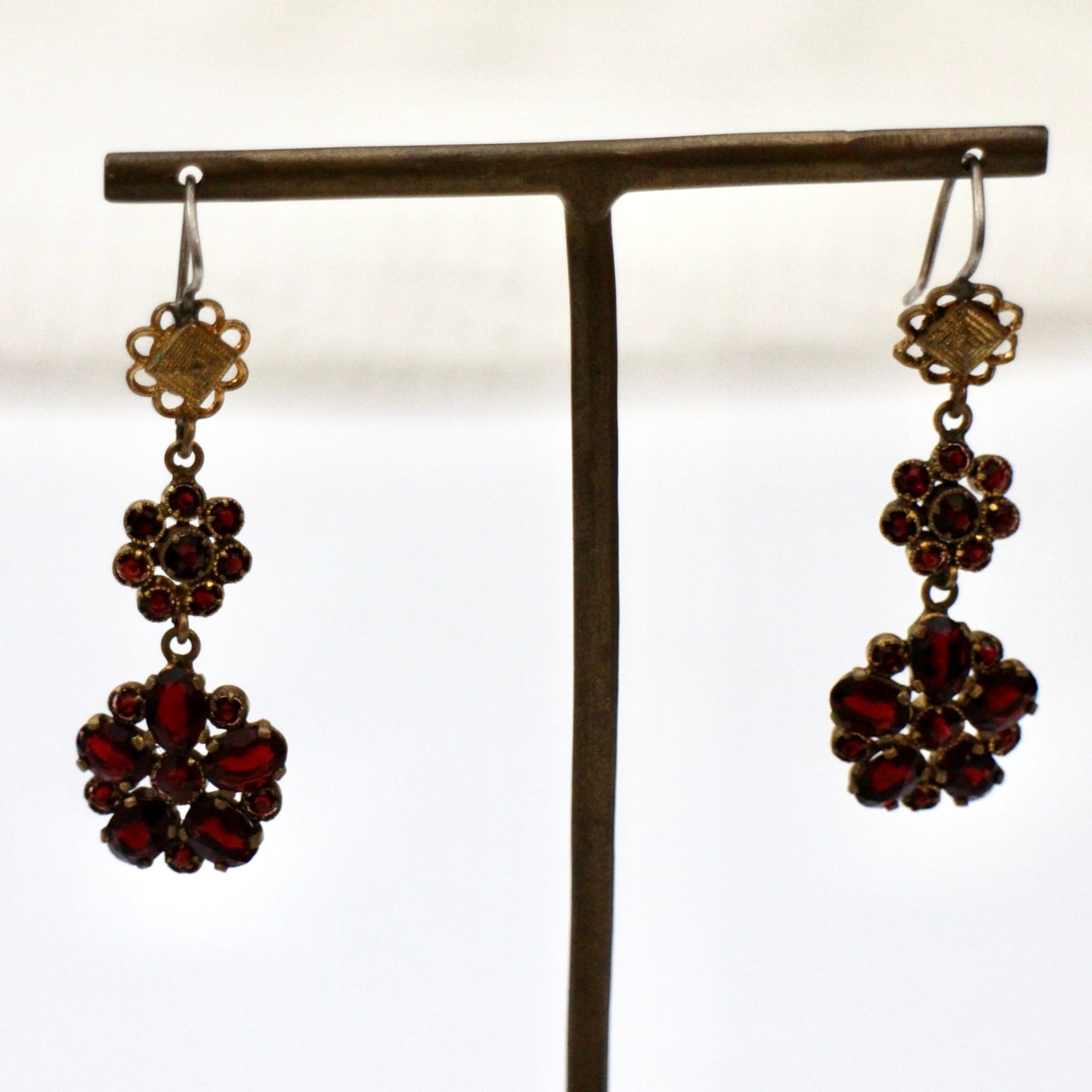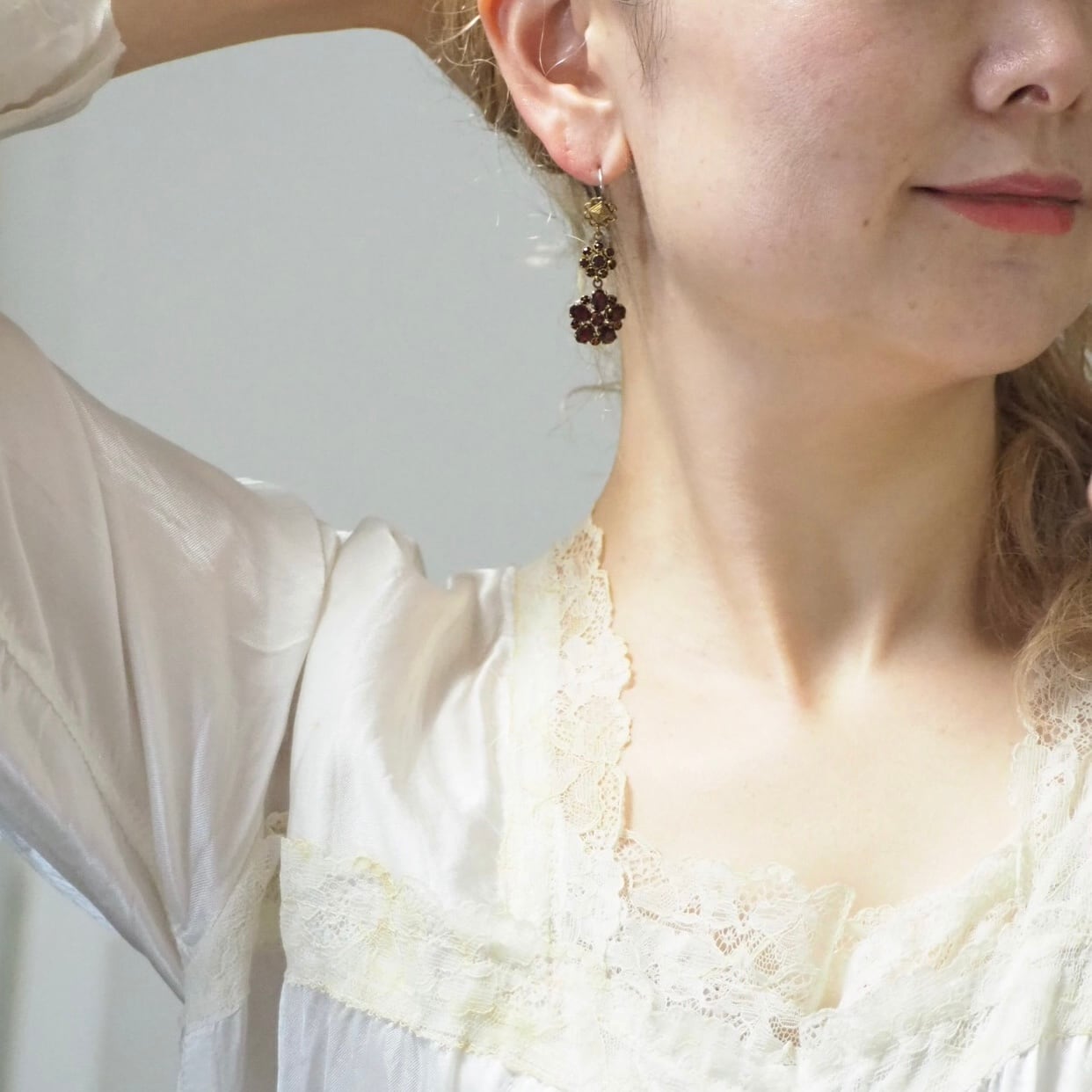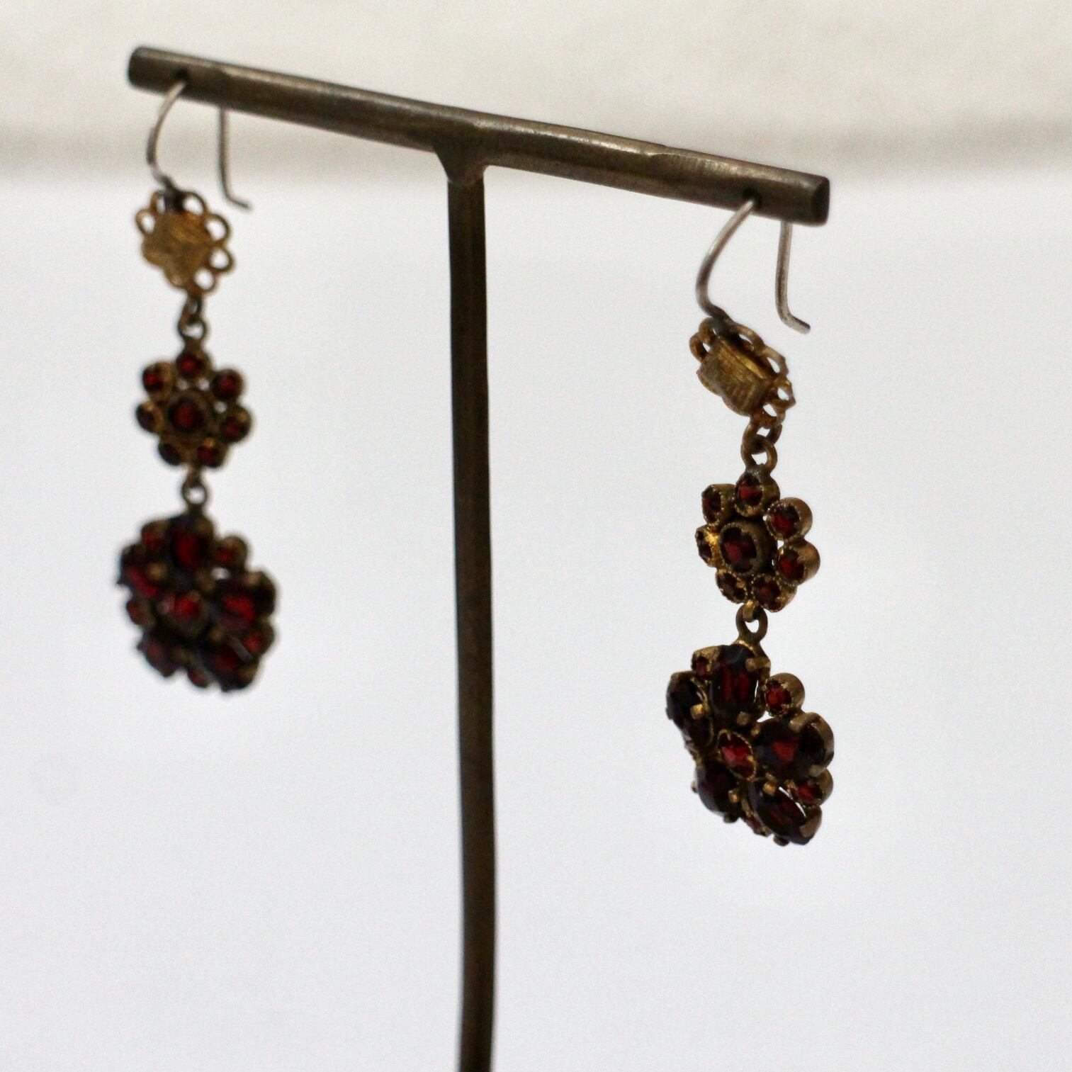 ガーネットガラス*ロマンティックフラワー*ヴィンテージピアス