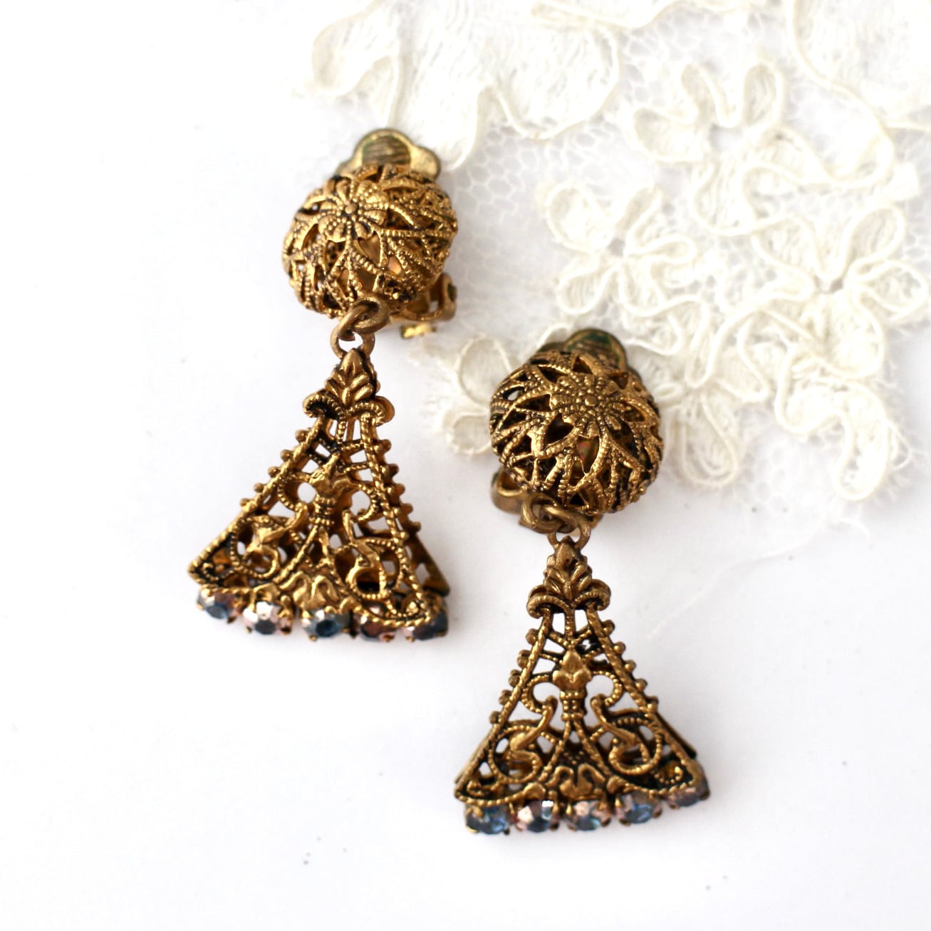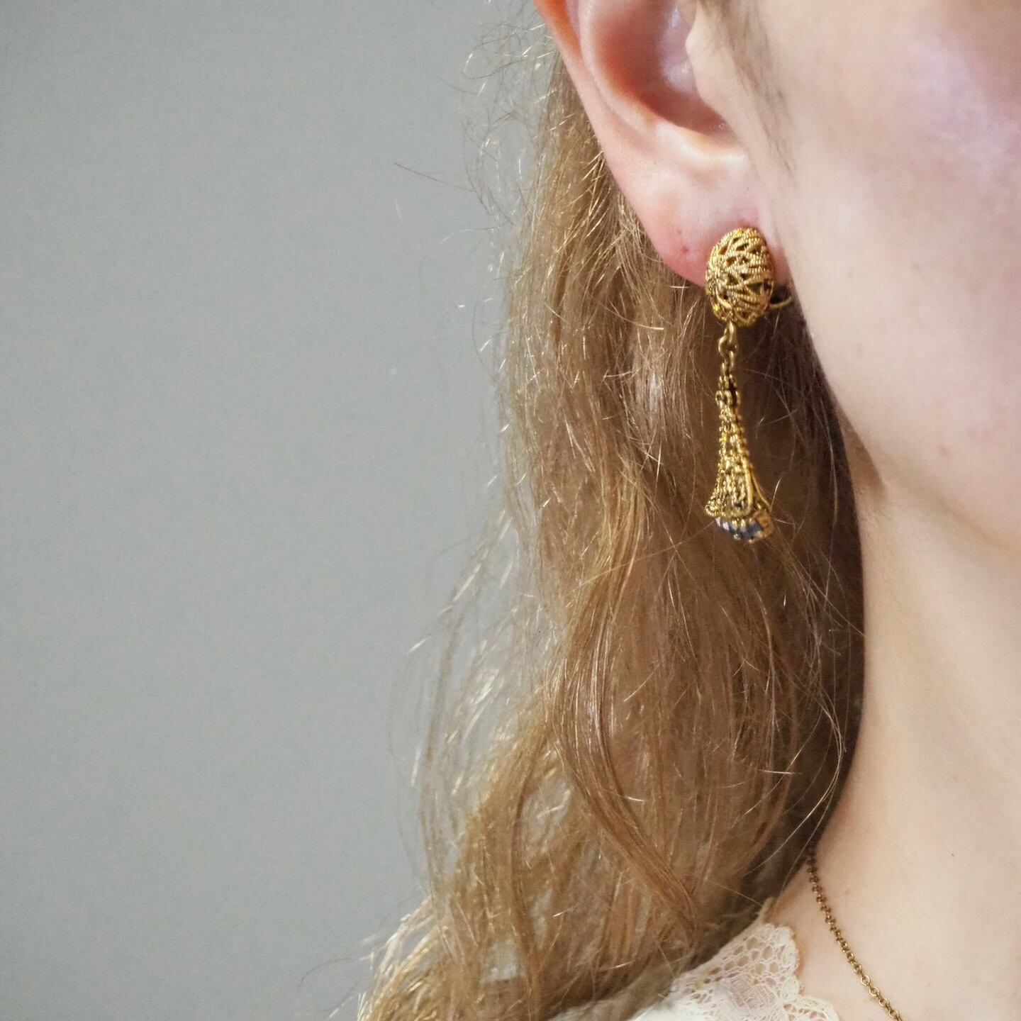フィリグリー*オーロラブルービジュー*ヴィンテージイヤリング