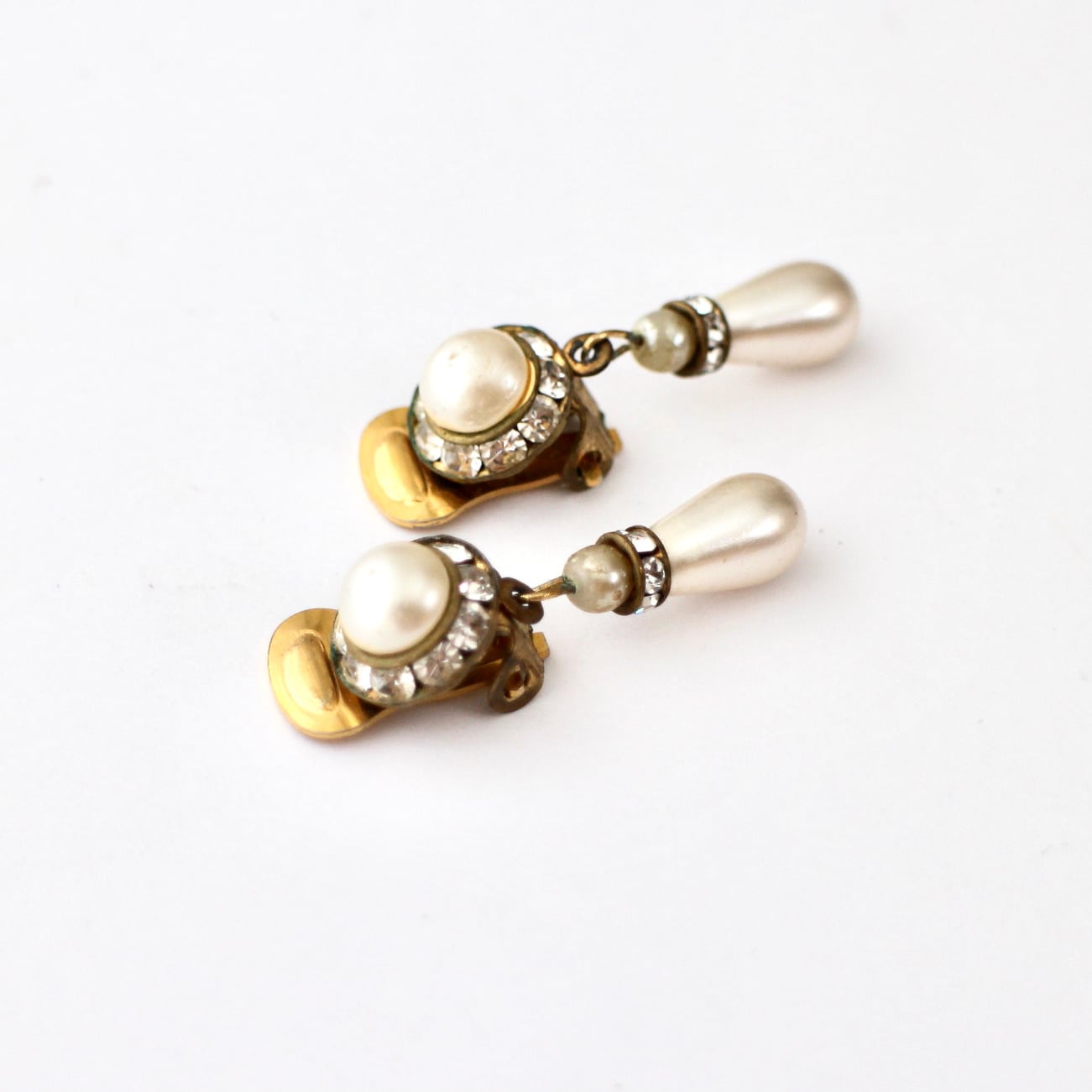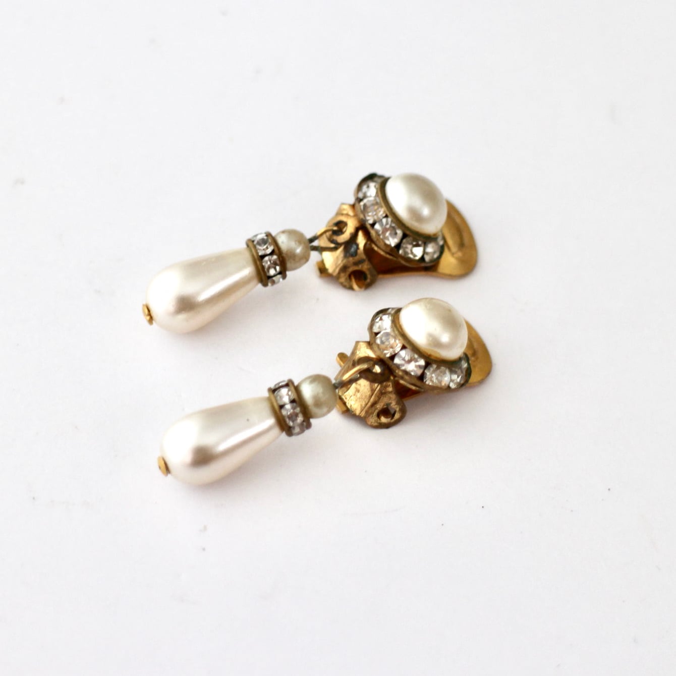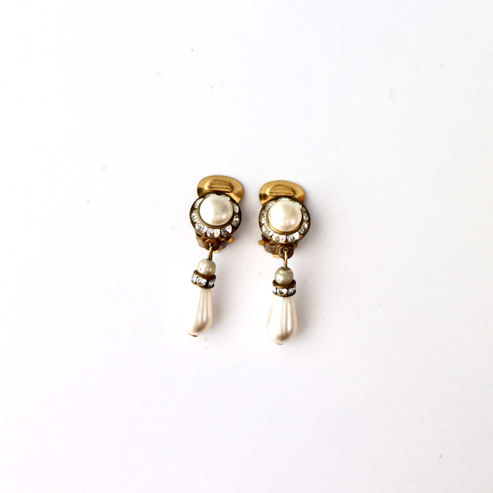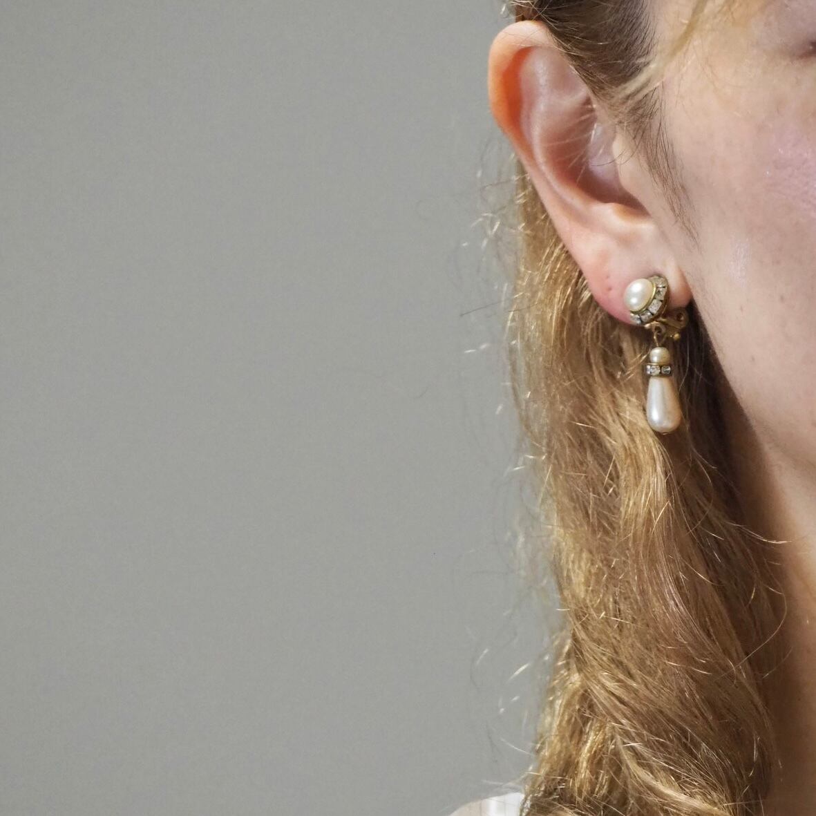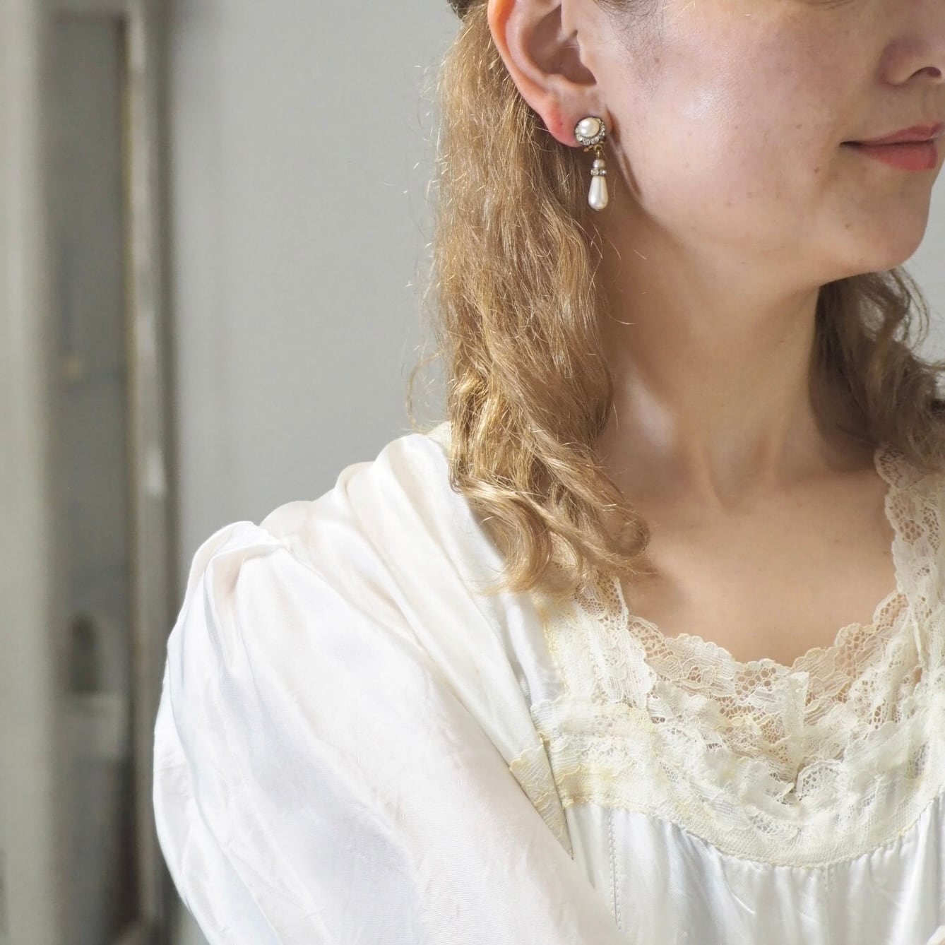 パール×クリアビジュー*スウィングヴィンテージイヤリング