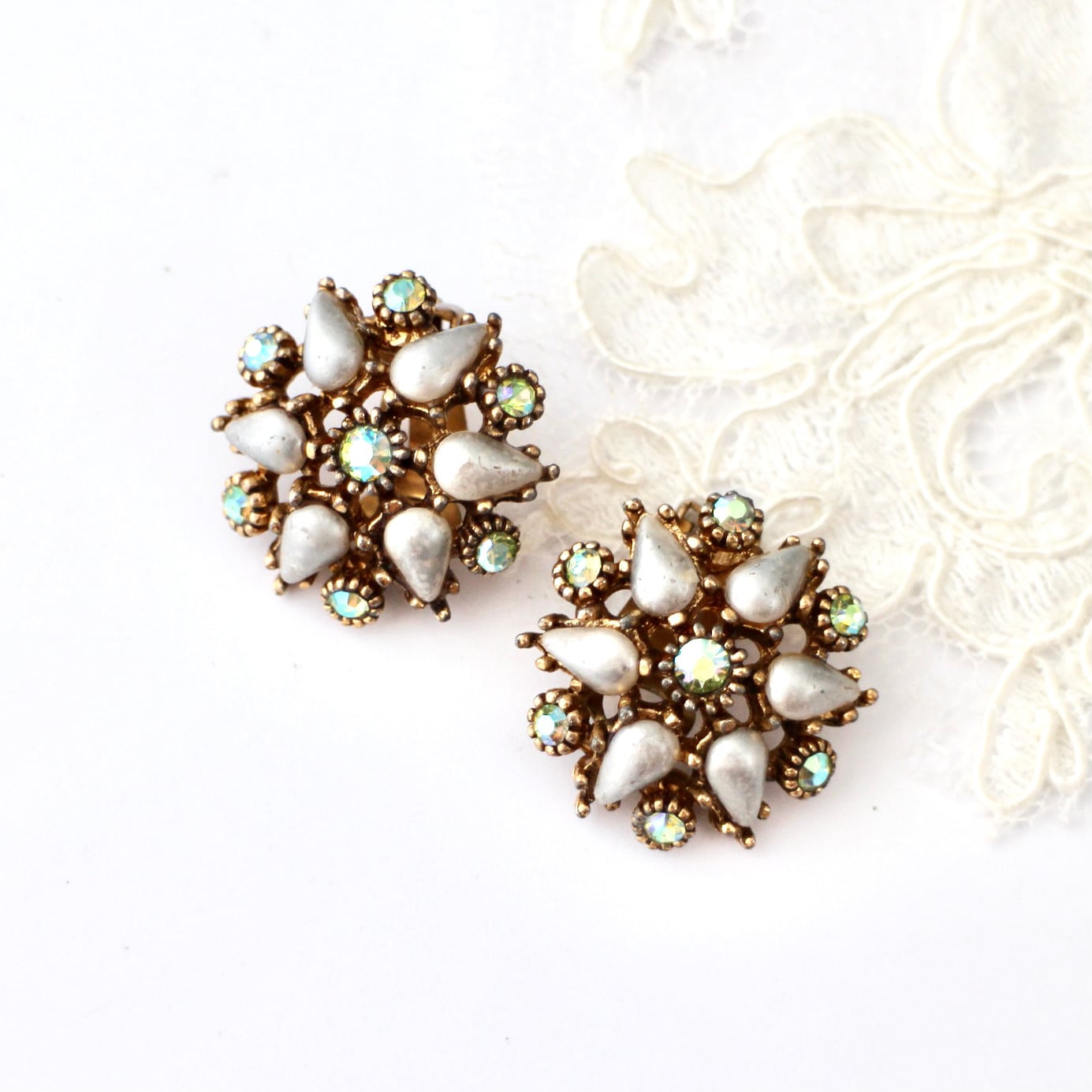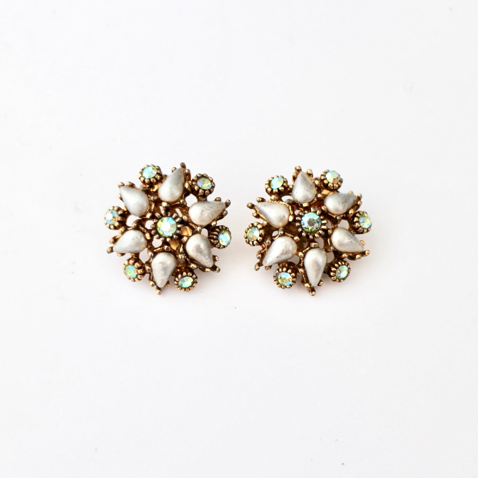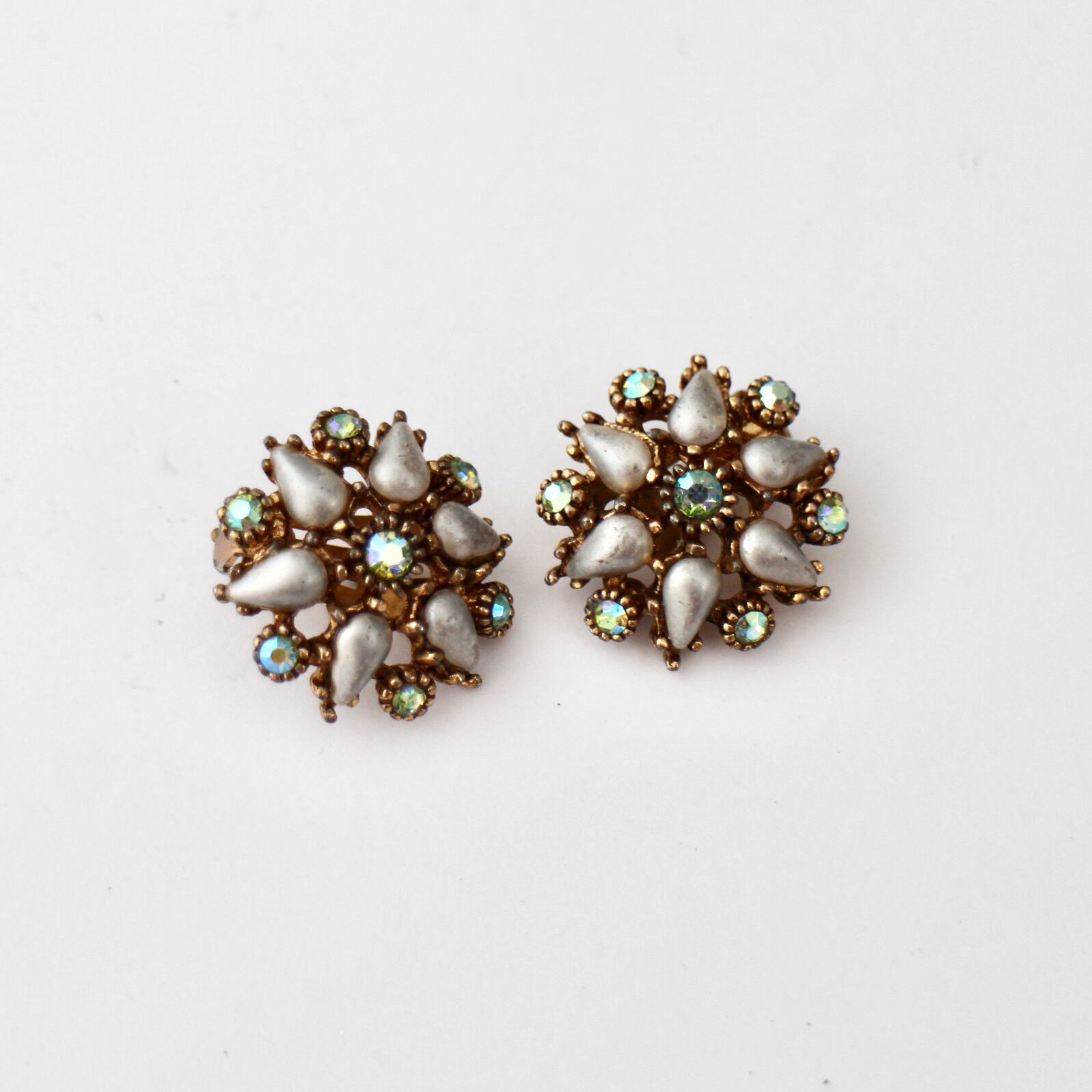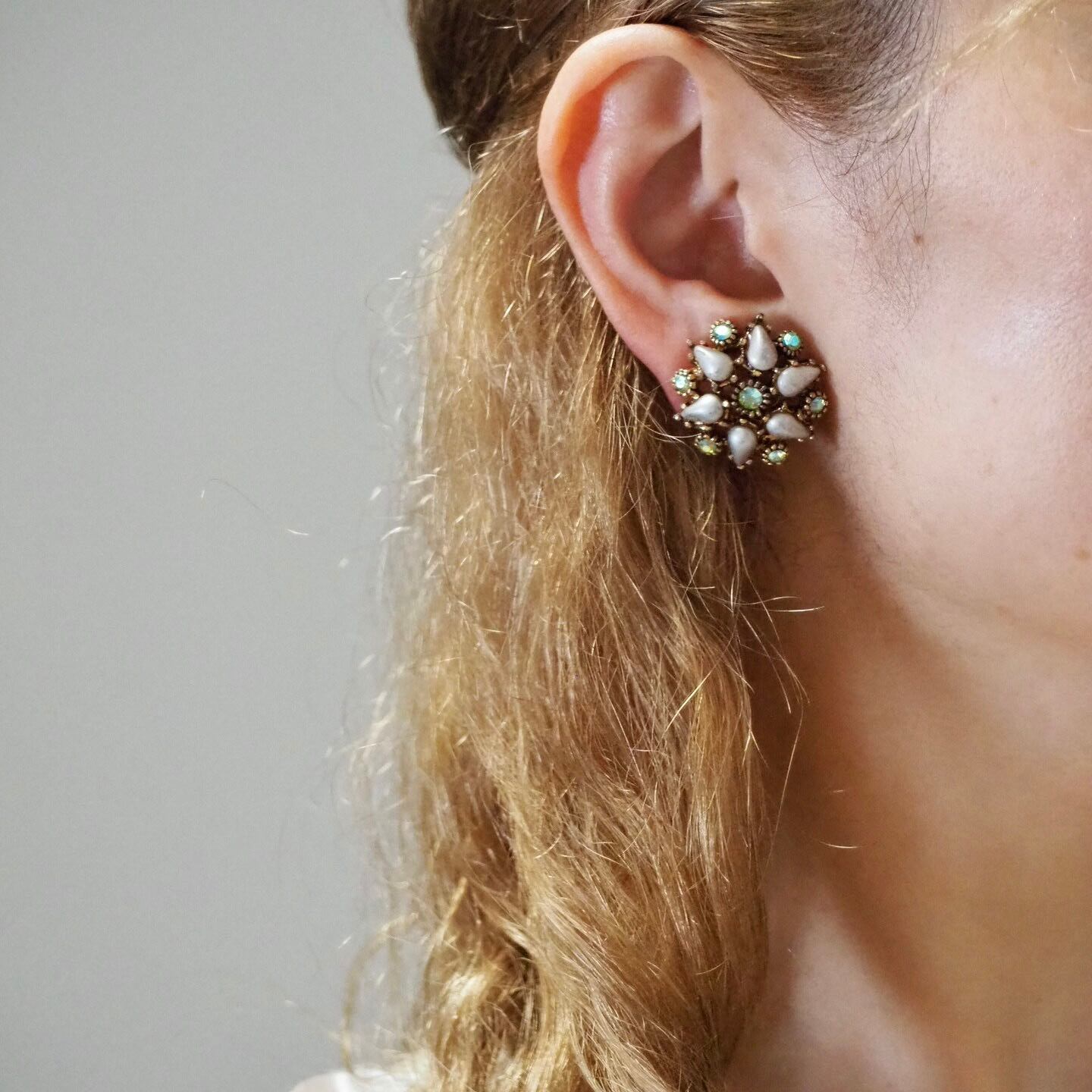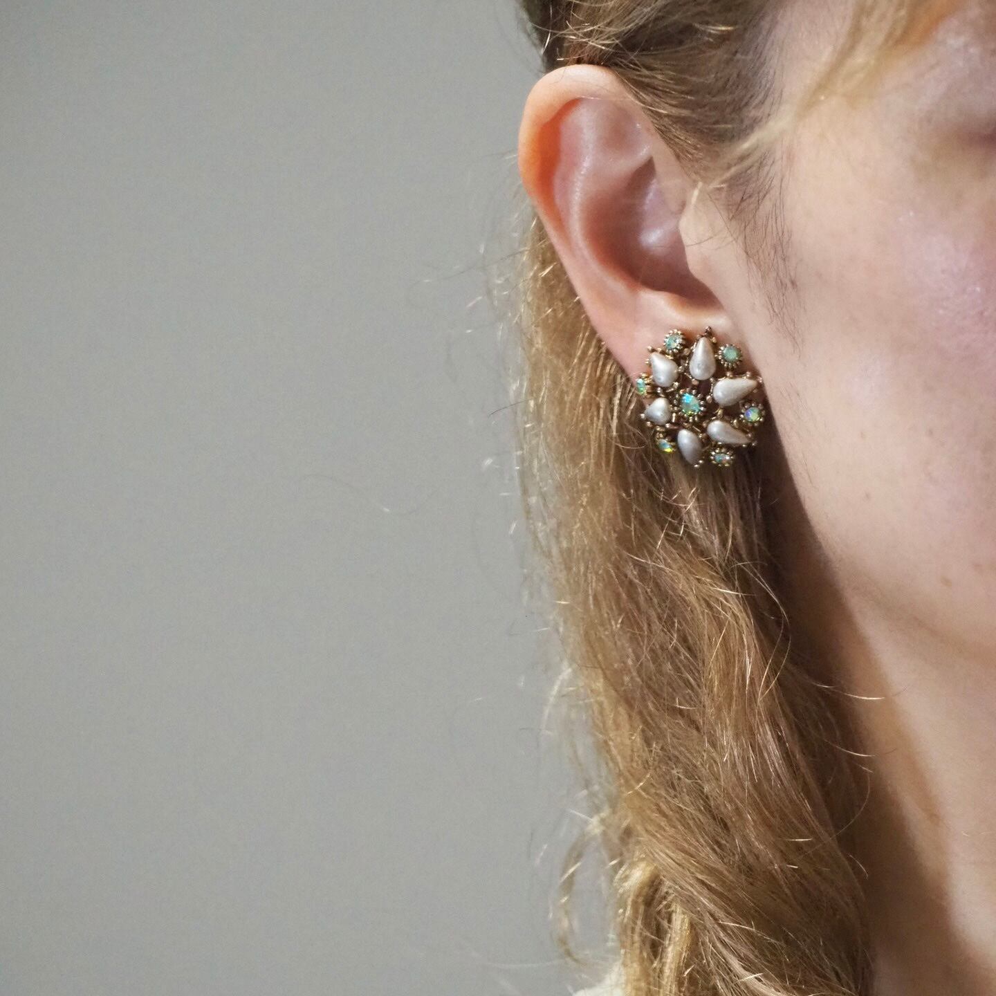 グレイッシュドロップパール*オーロラビジュー*ヴィンテージイヤリング
