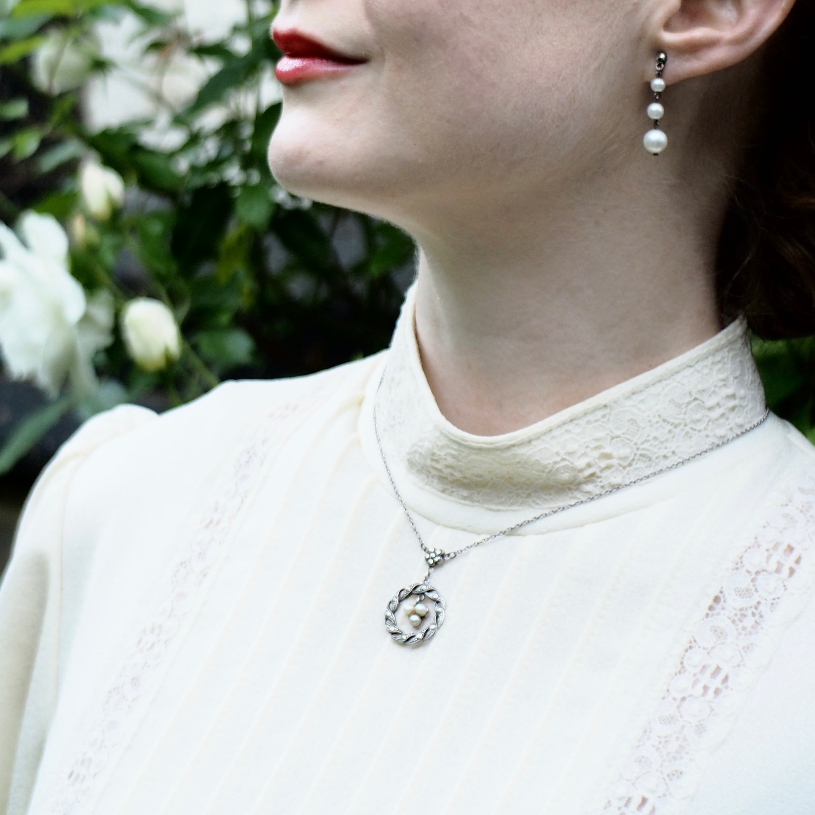 小さなパールが三粒、静かに息づくネックレス。