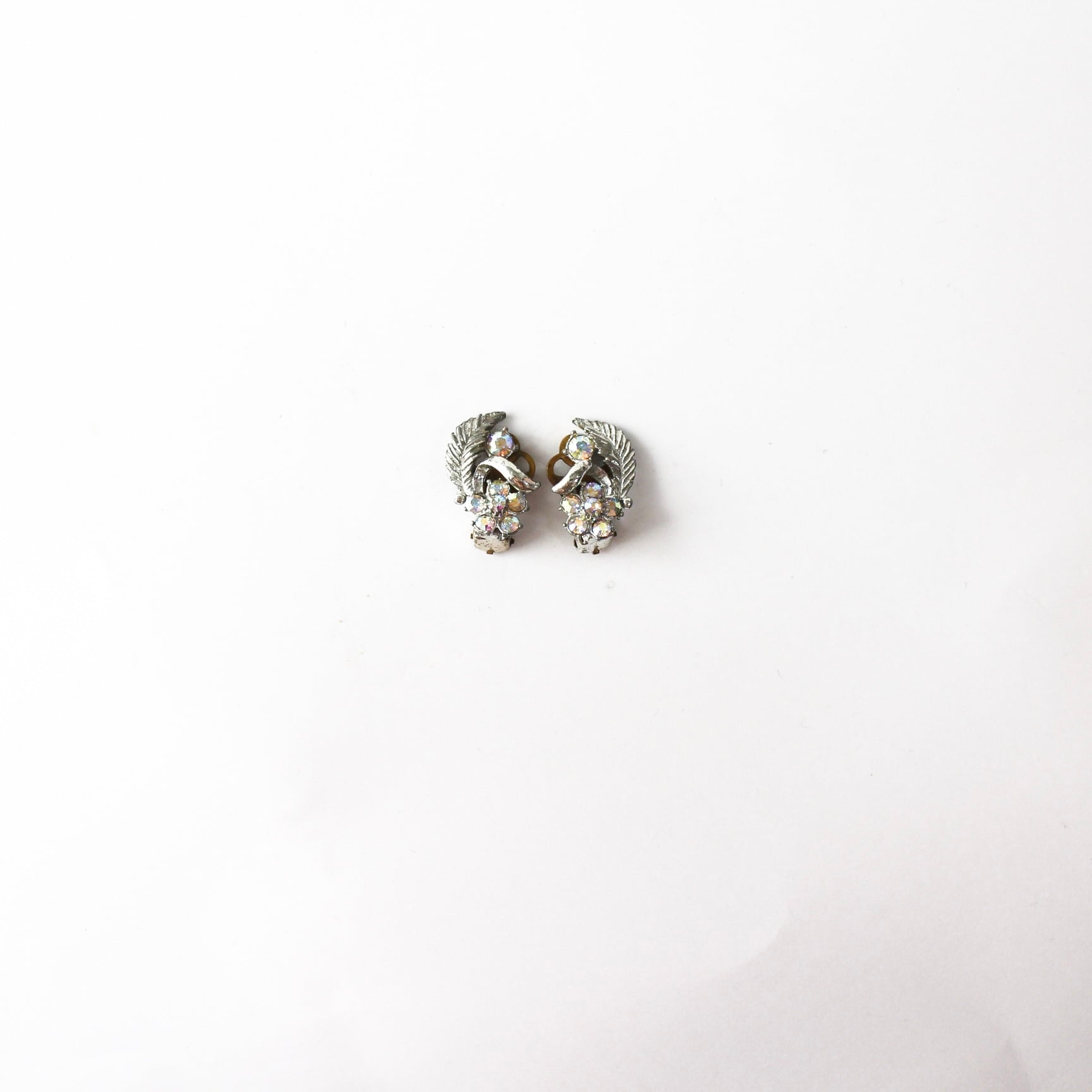 オーロラフラワーが添えられたヴィンテージイヤリング。