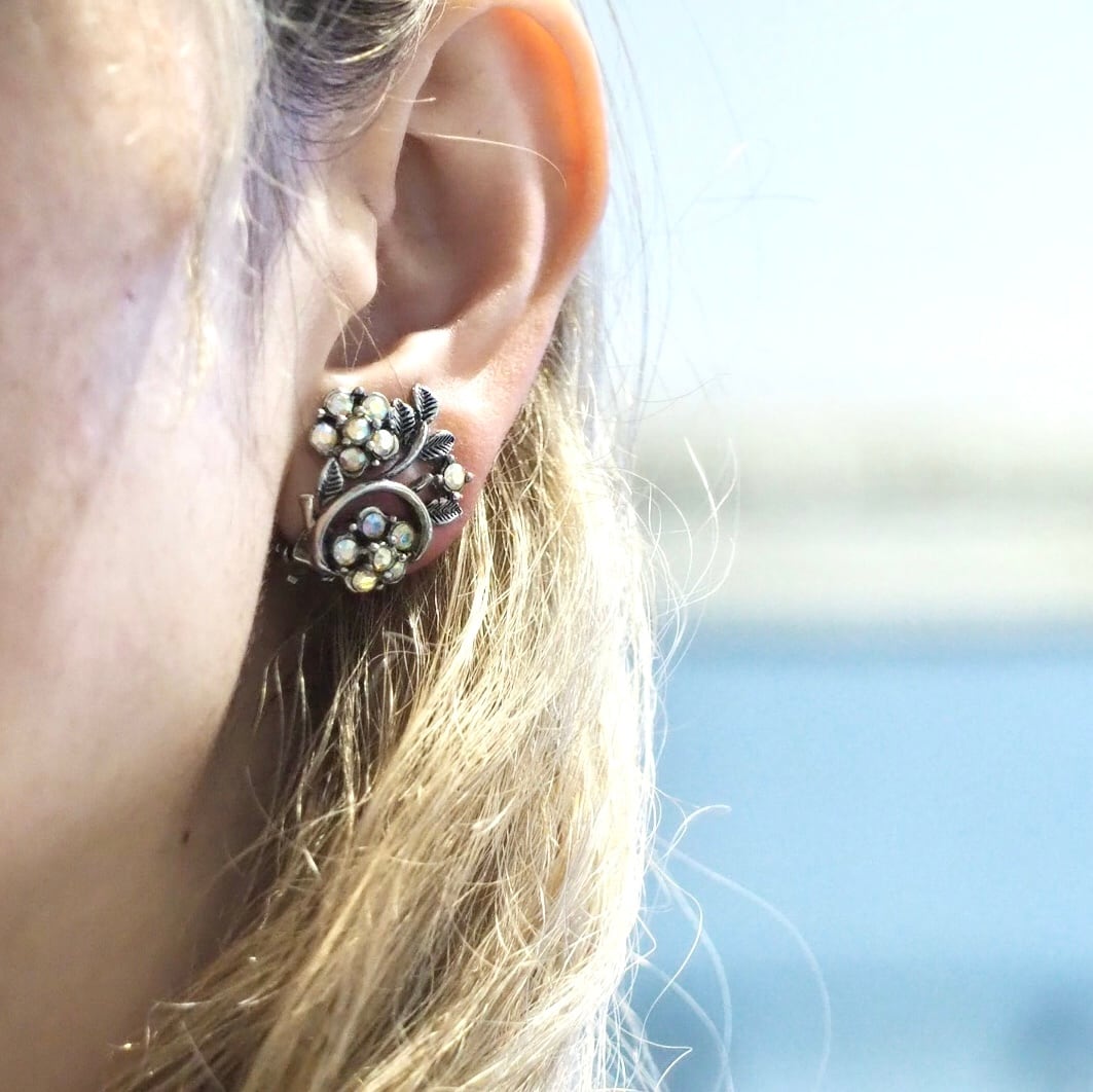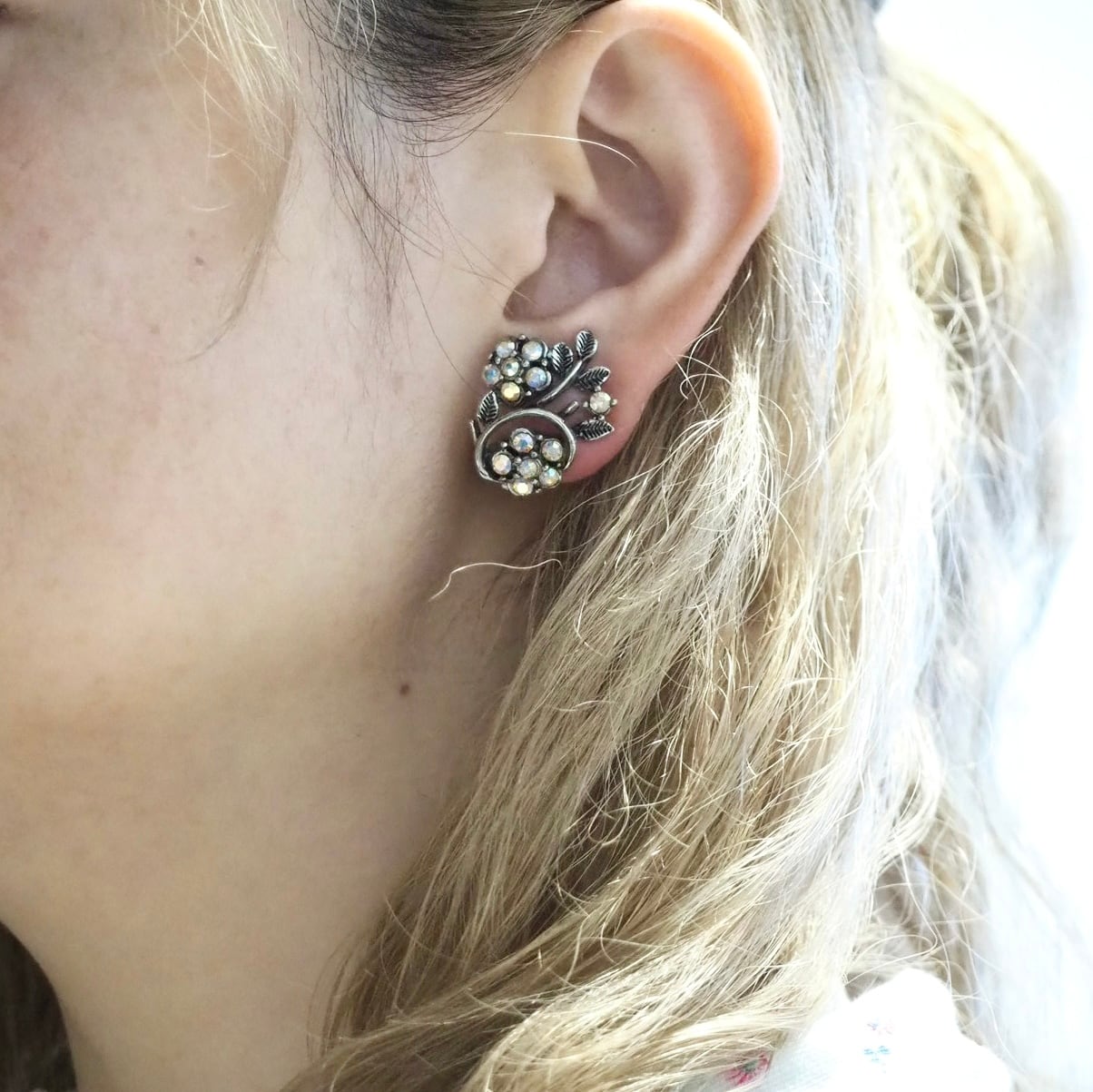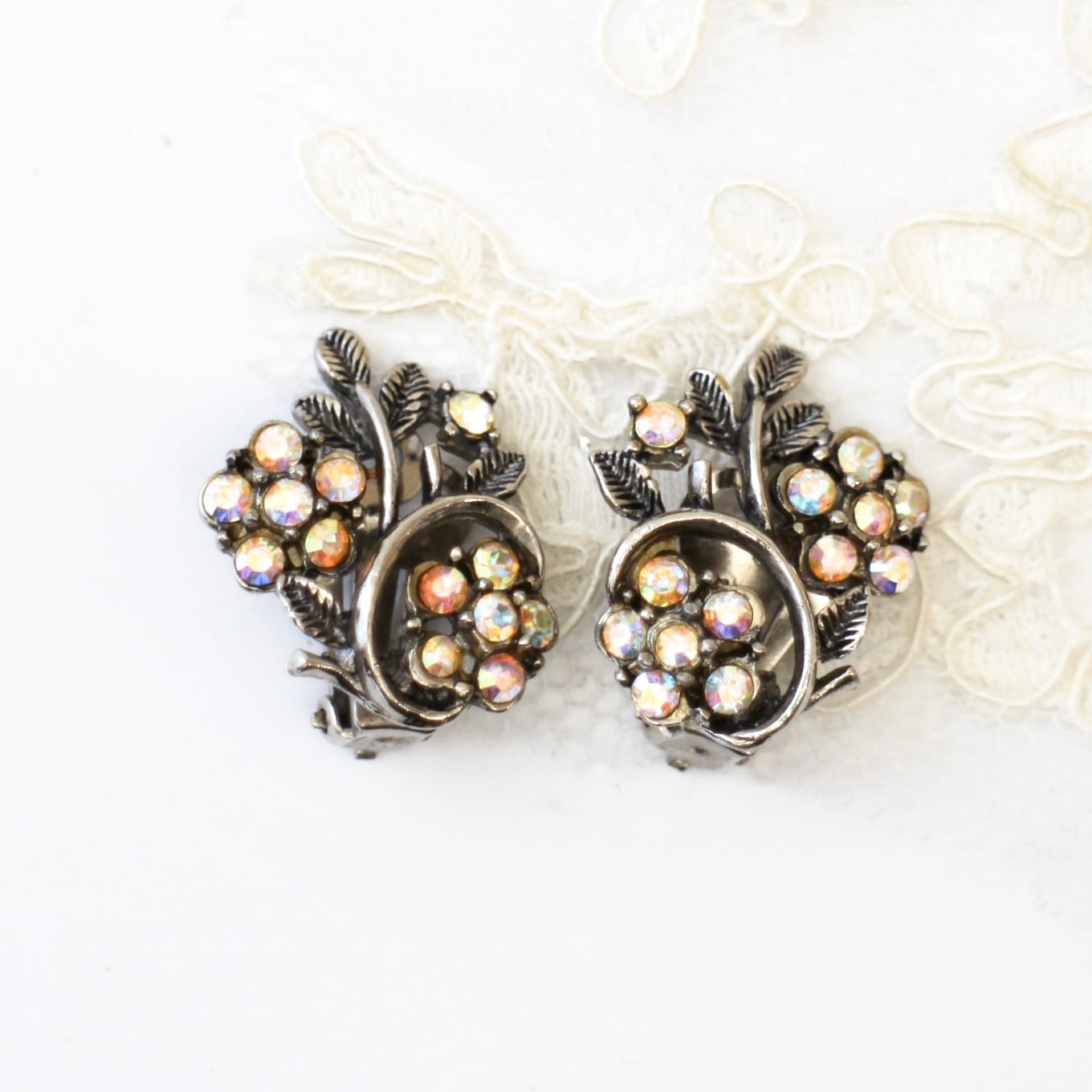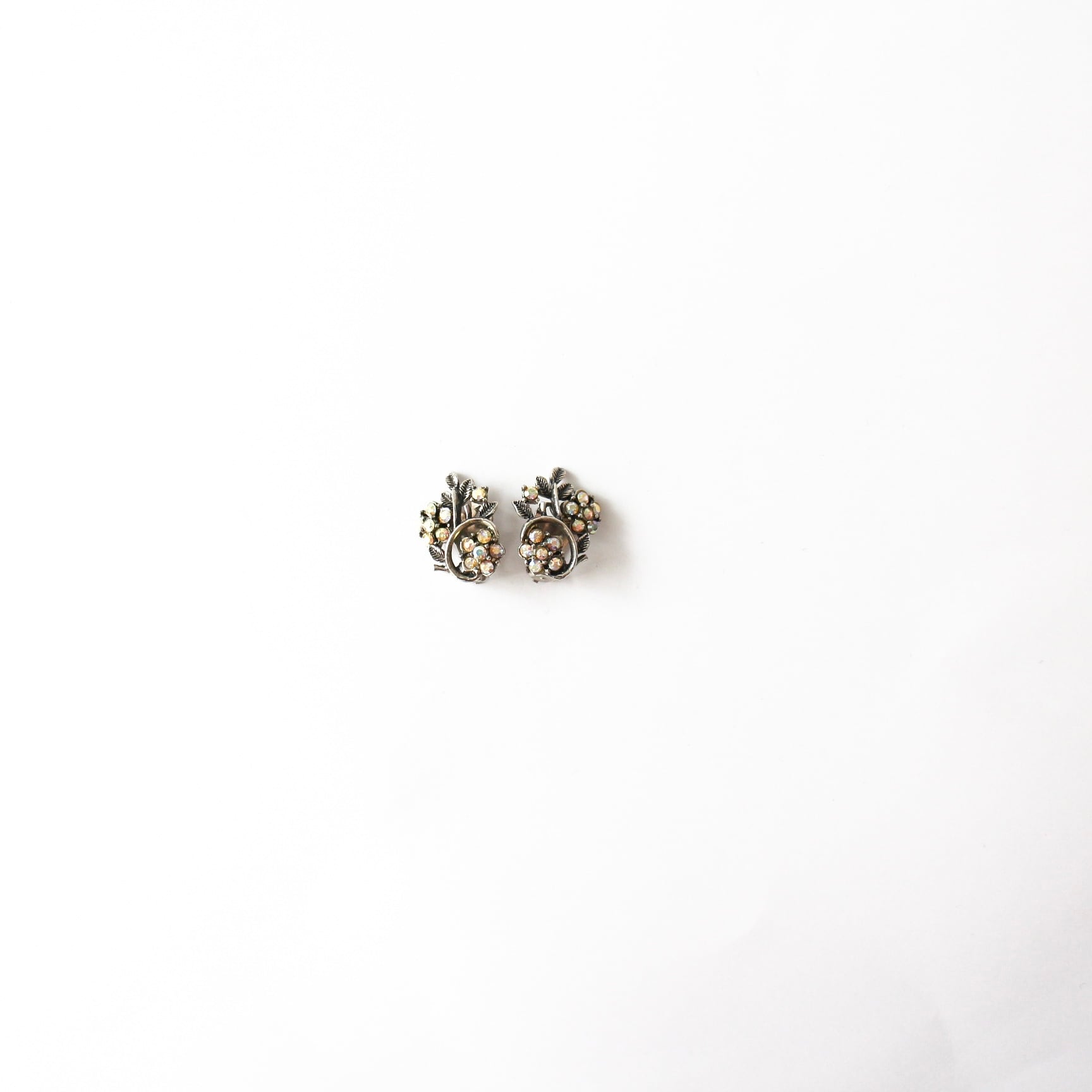 虹色のオーロラビジューでお花を描いたヴィンテージイヤリング。