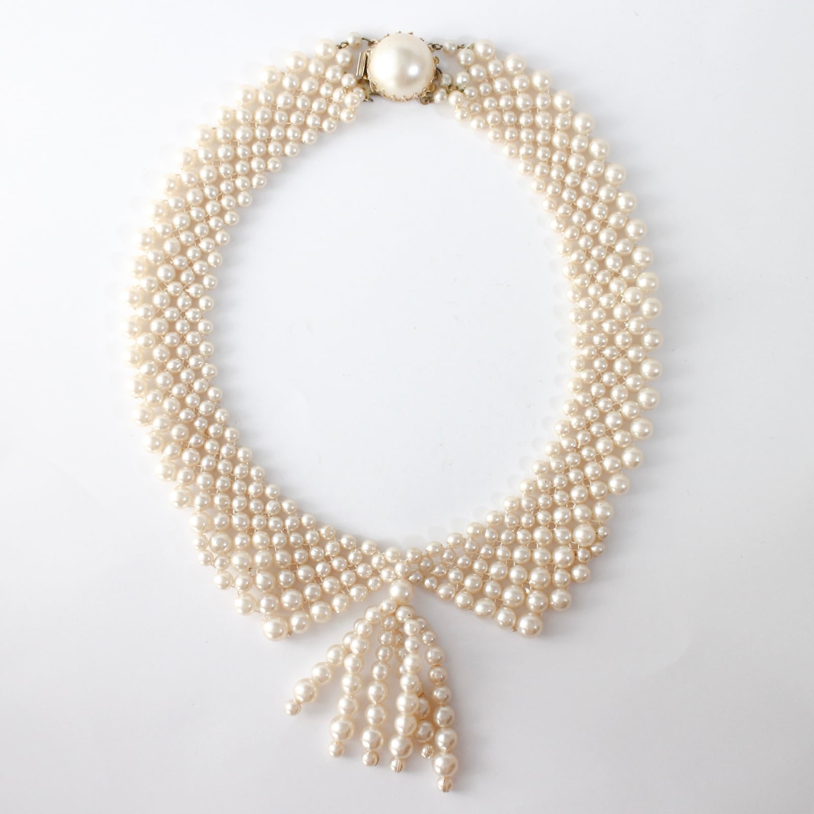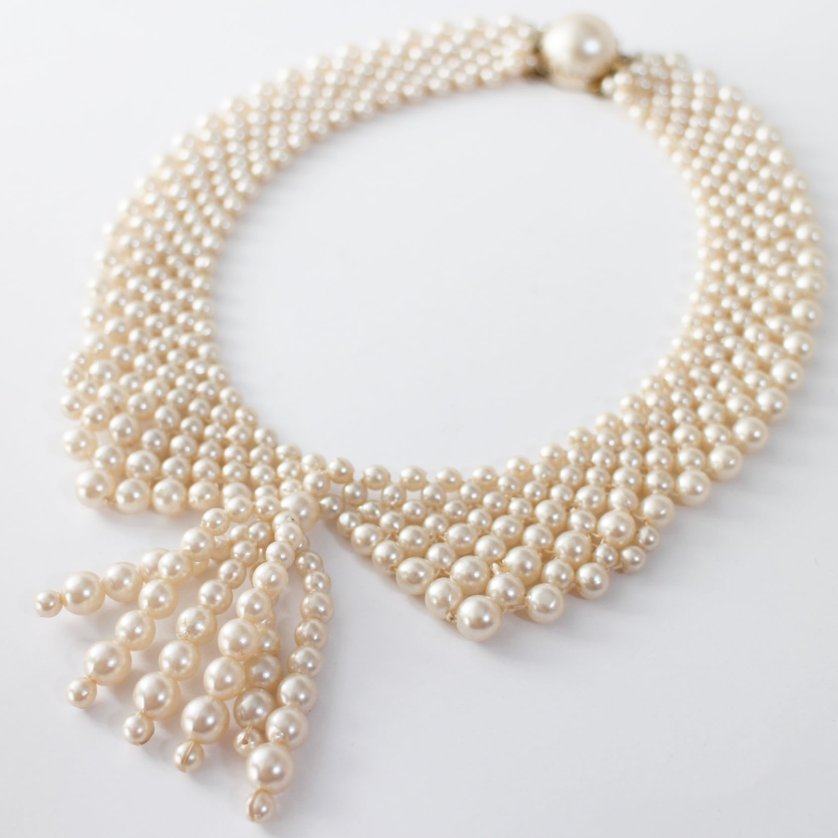 パールカラー*リボンモチーフ*ヴィンテージネックレス