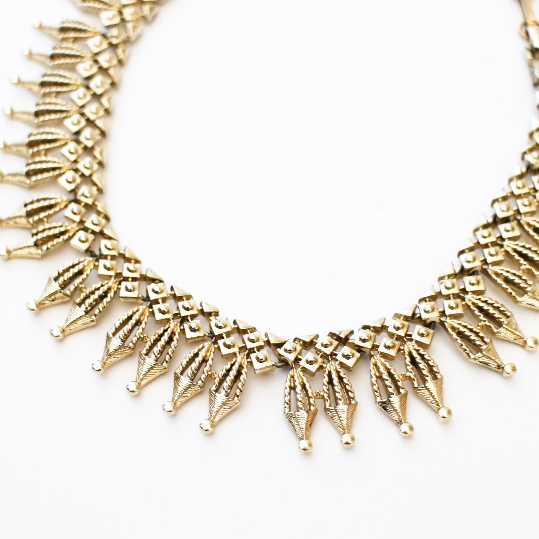 動くたびに金の羽根がふわりと揺れるようなネックレス。