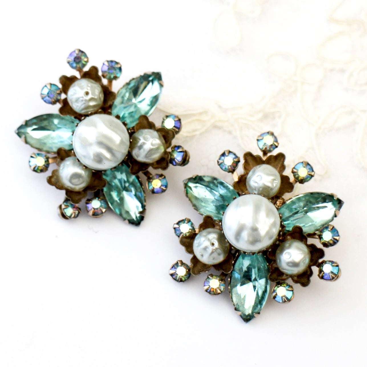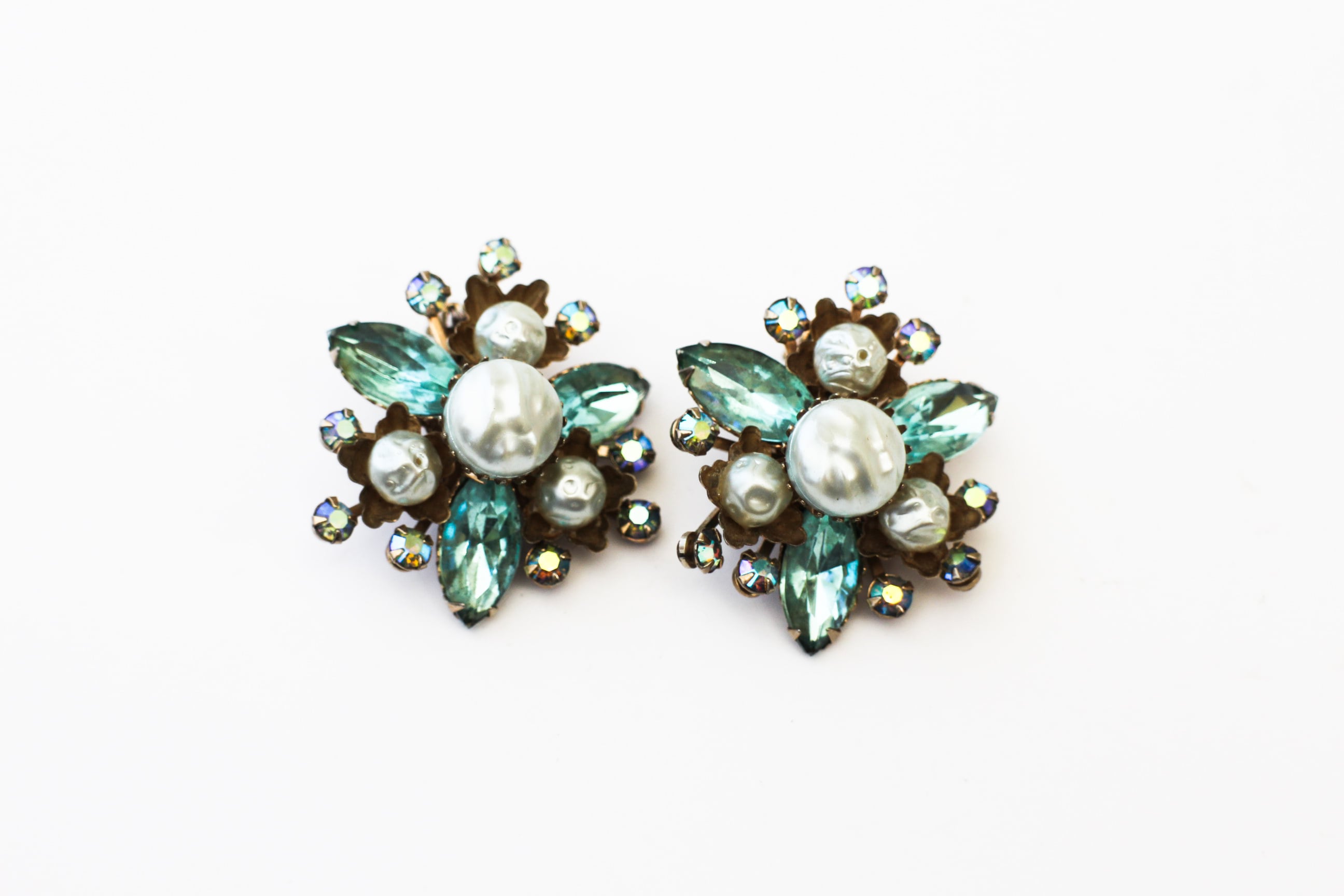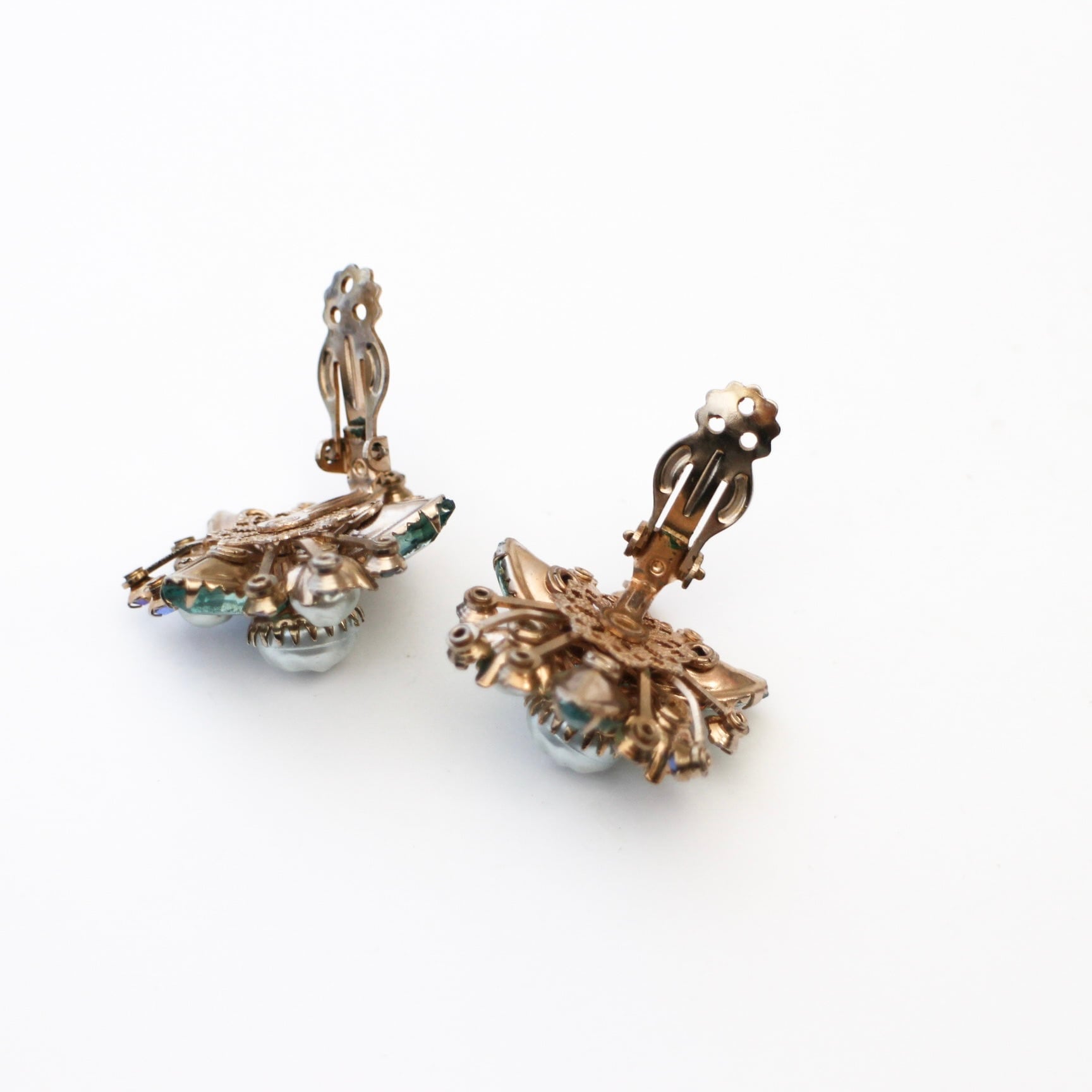 アクアブルービジュー×パール*ボリュームヴィンテージイヤリング