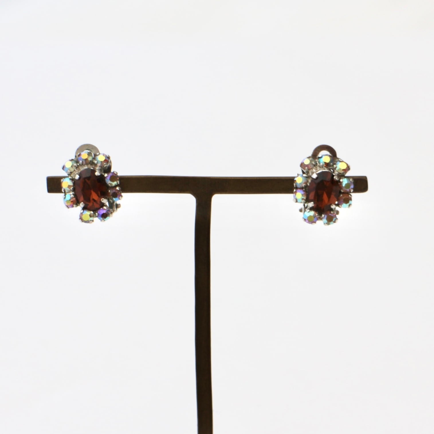 ガーネットガラス*オーロラビジュー*ヴィンテージイヤリング