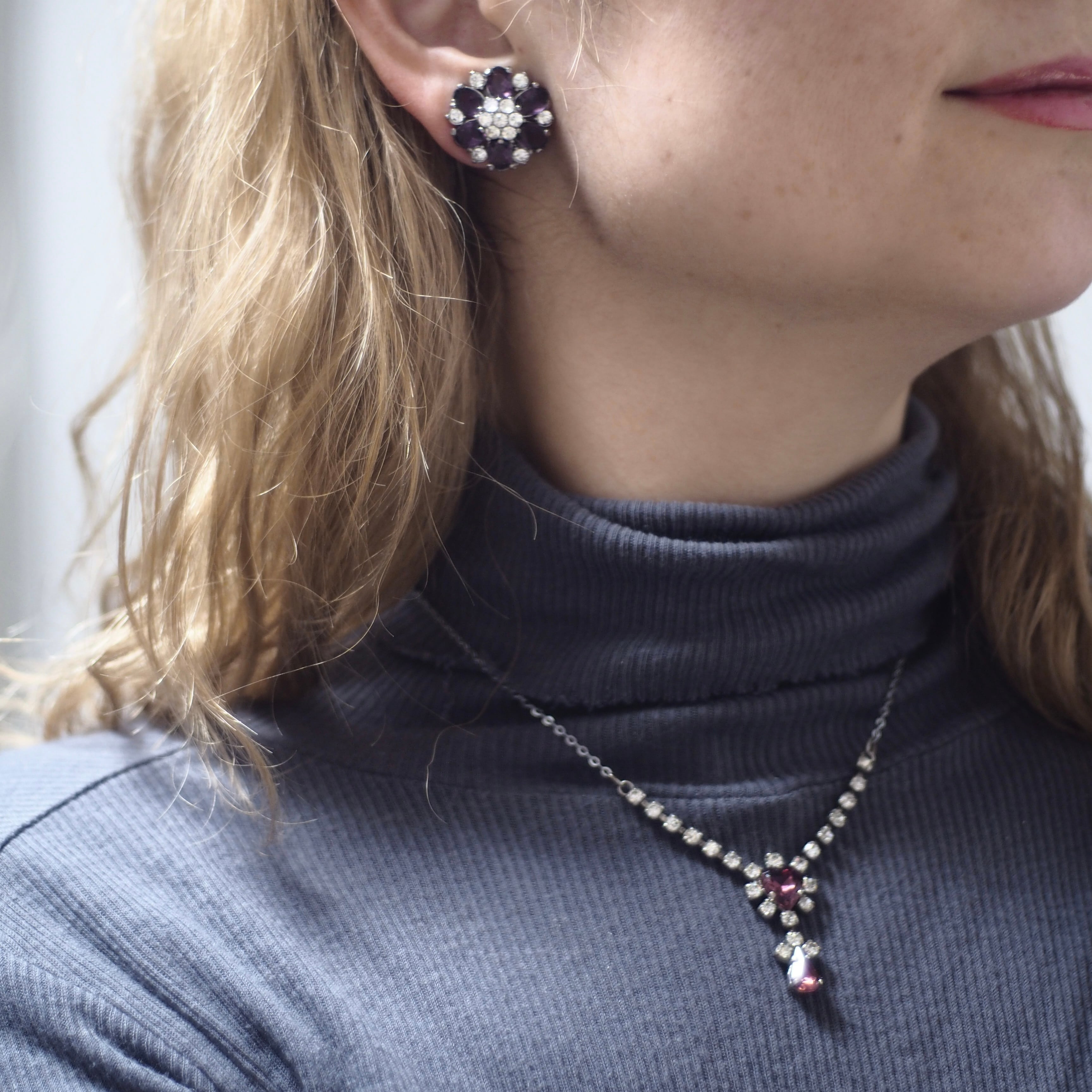 クリアビジュー*パープルドロップ*ヴィンテージネックレス