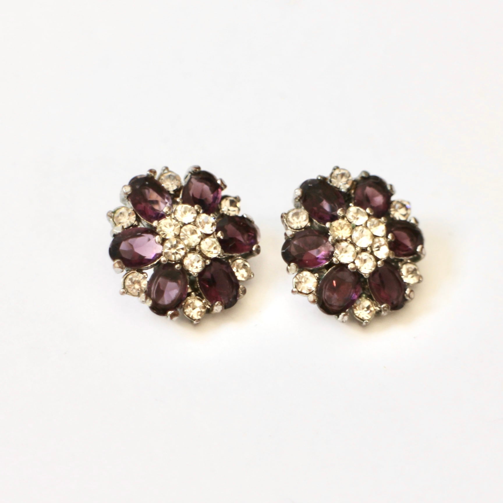 耳もとに咲く、輝く花のヴィンテージイヤリング。
