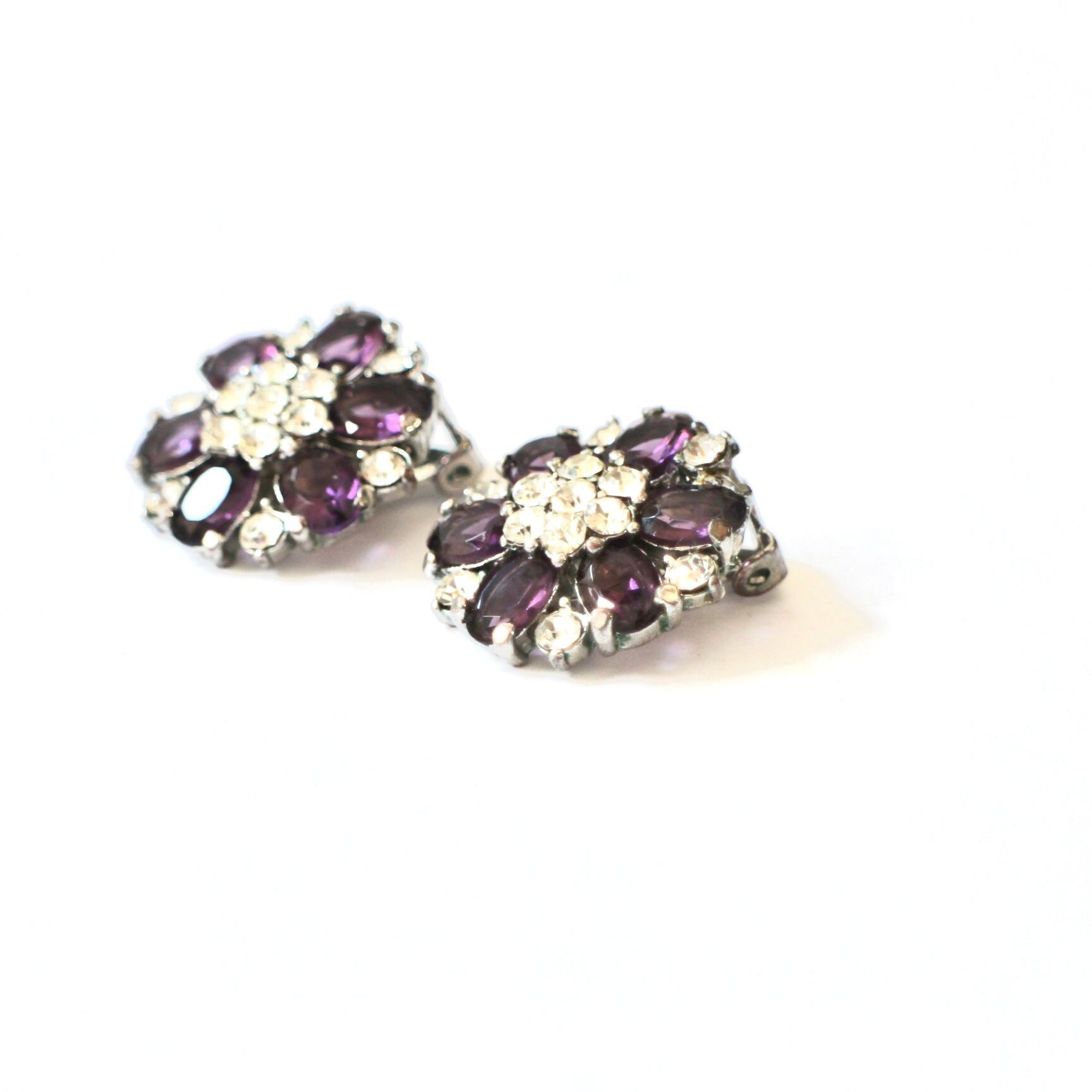 アメシストガラス*クリアビジュー*ヴィンテージイヤリング