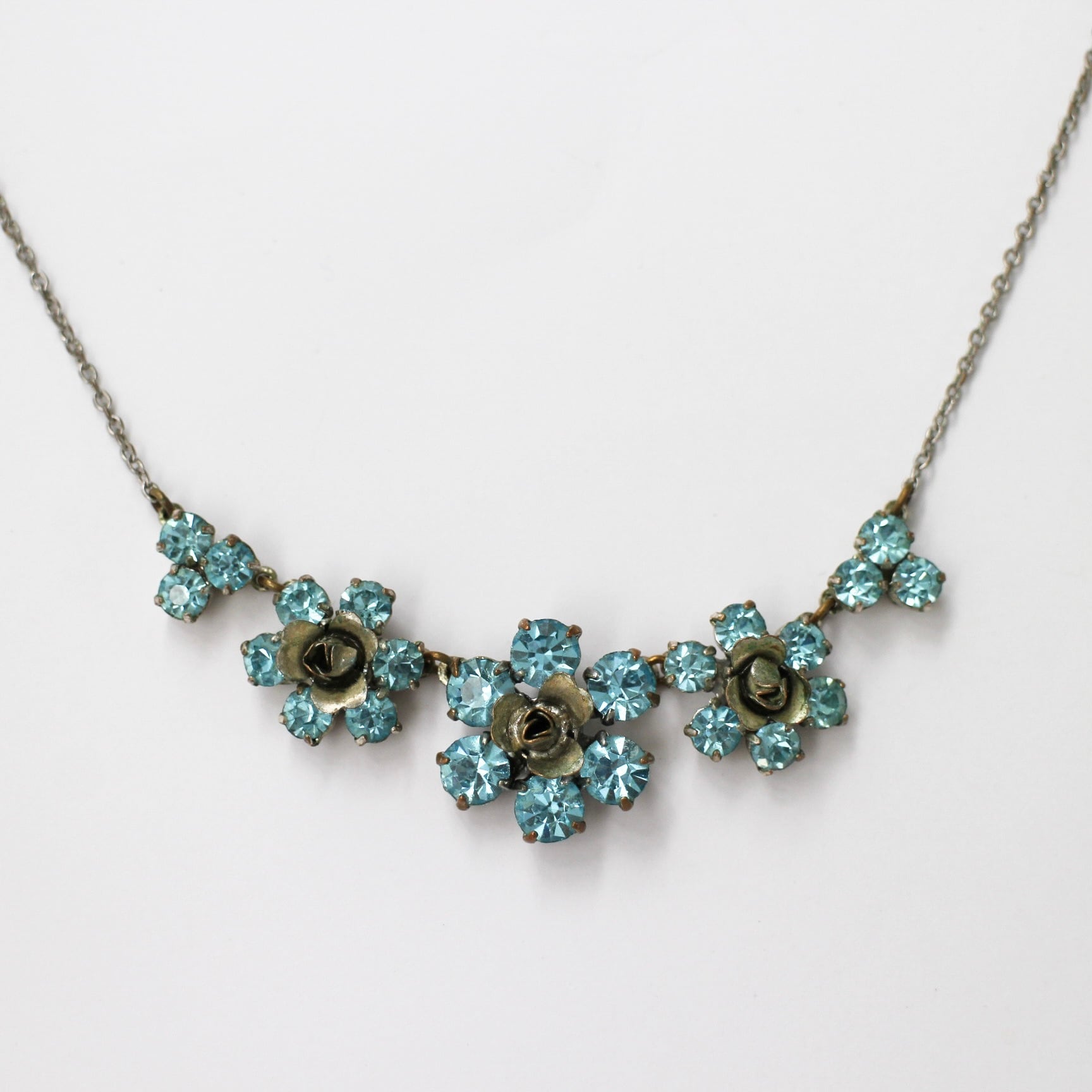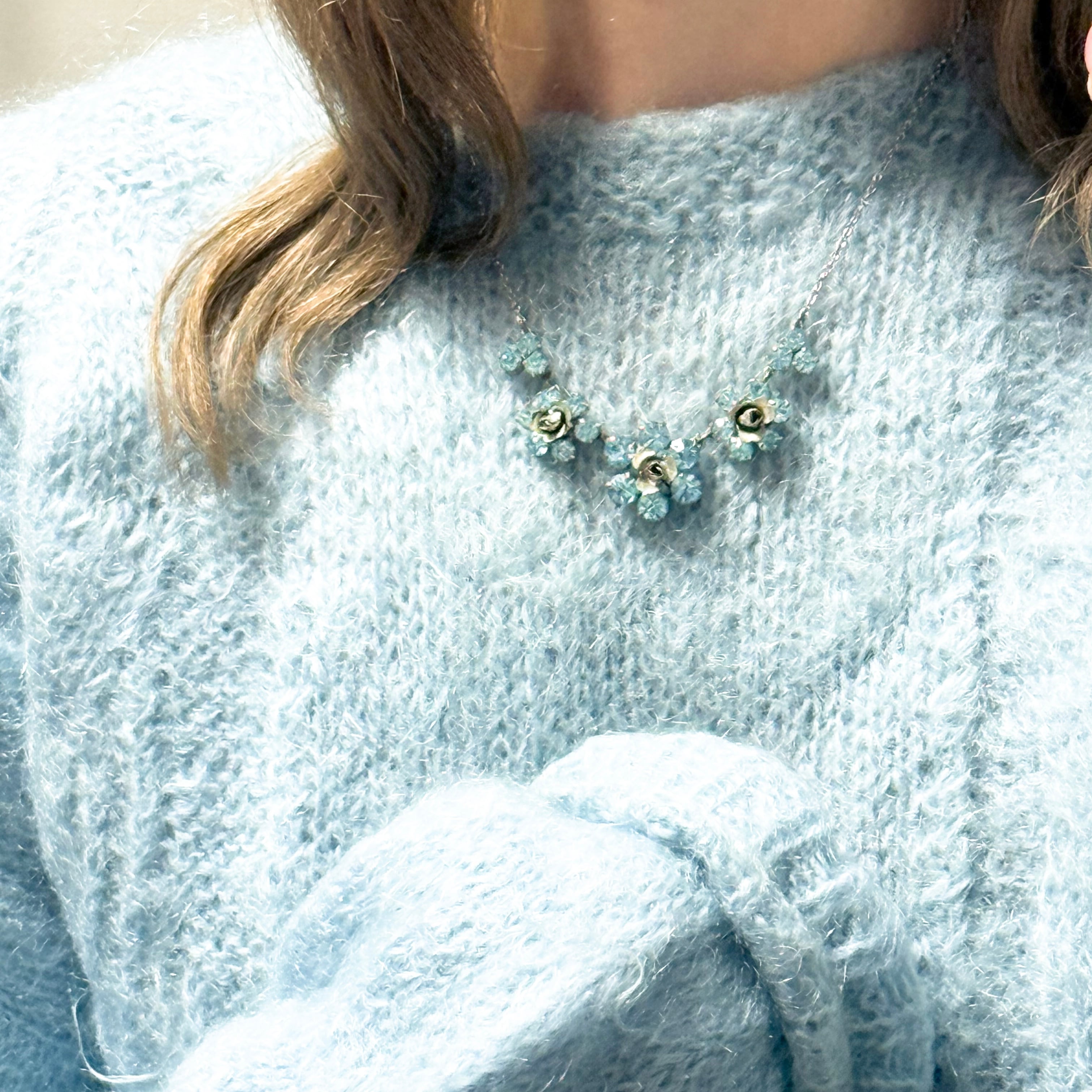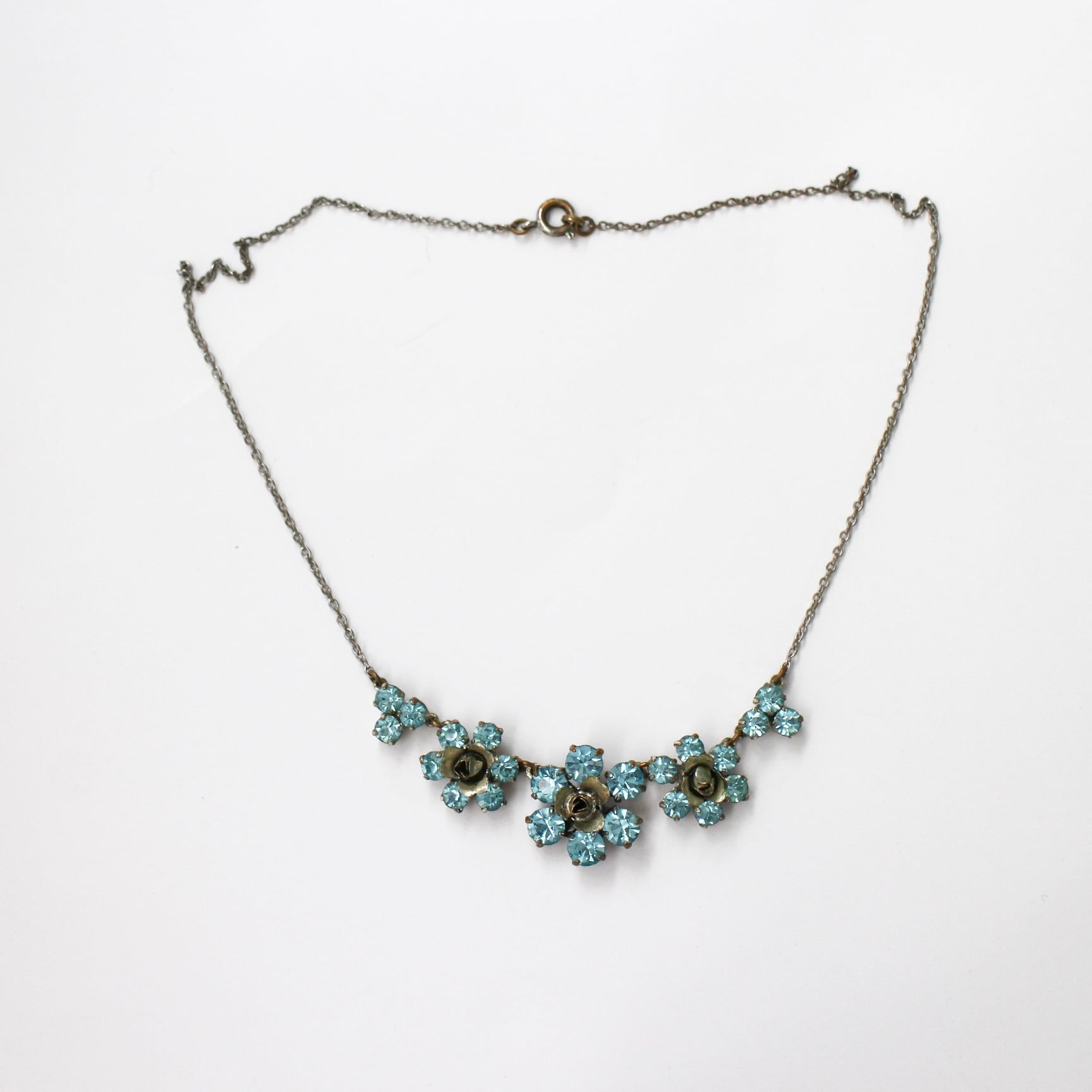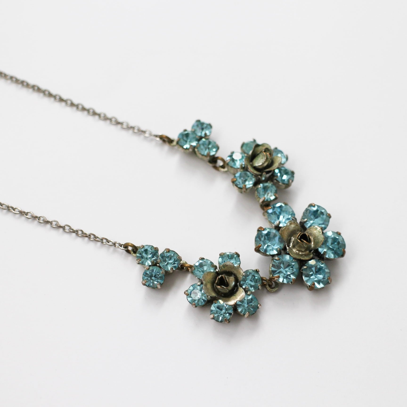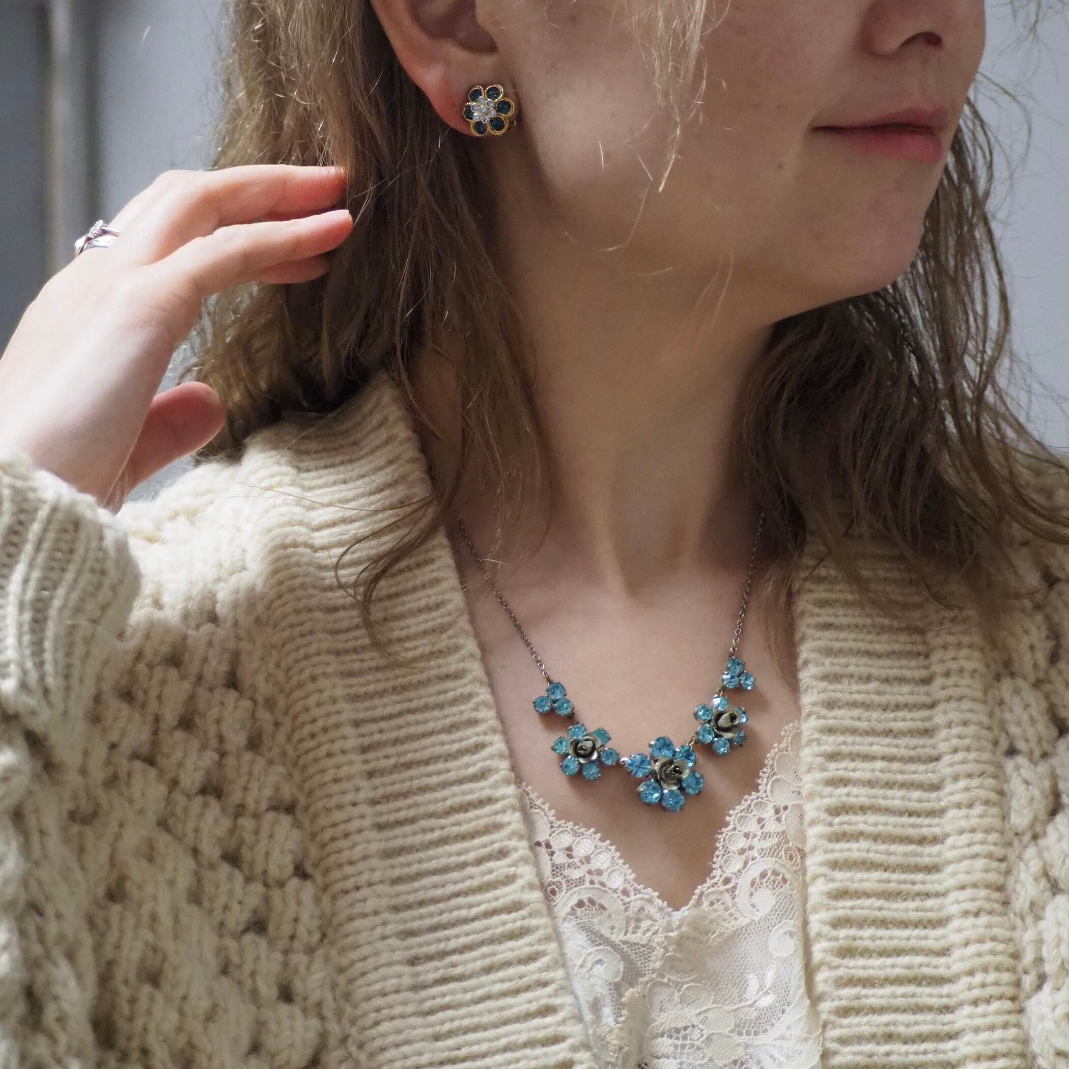 クリアブルー*ダブルフラワー*ヴィンテージネックレス