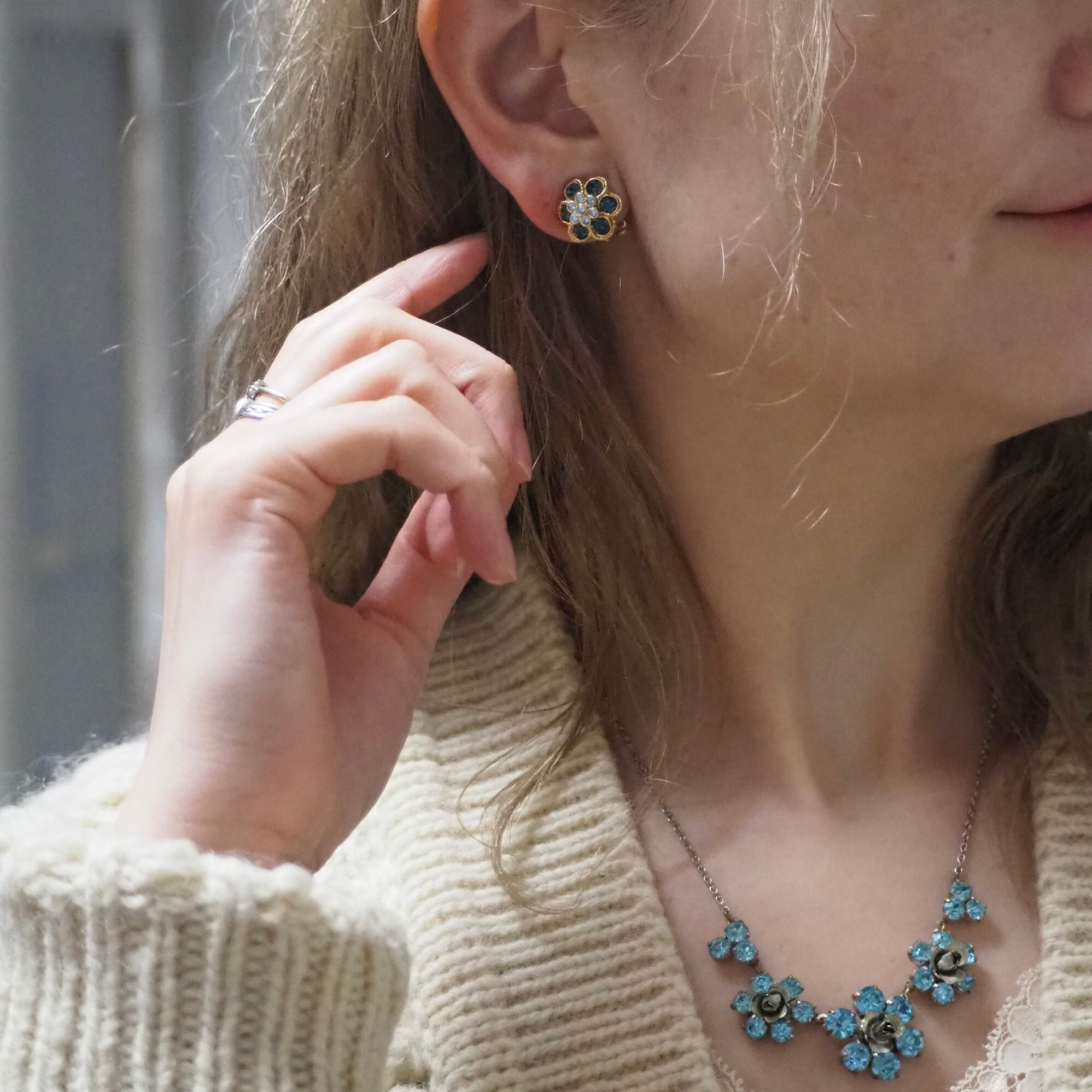 ダブルブルーフラワー*ヴィンテージイヤリング