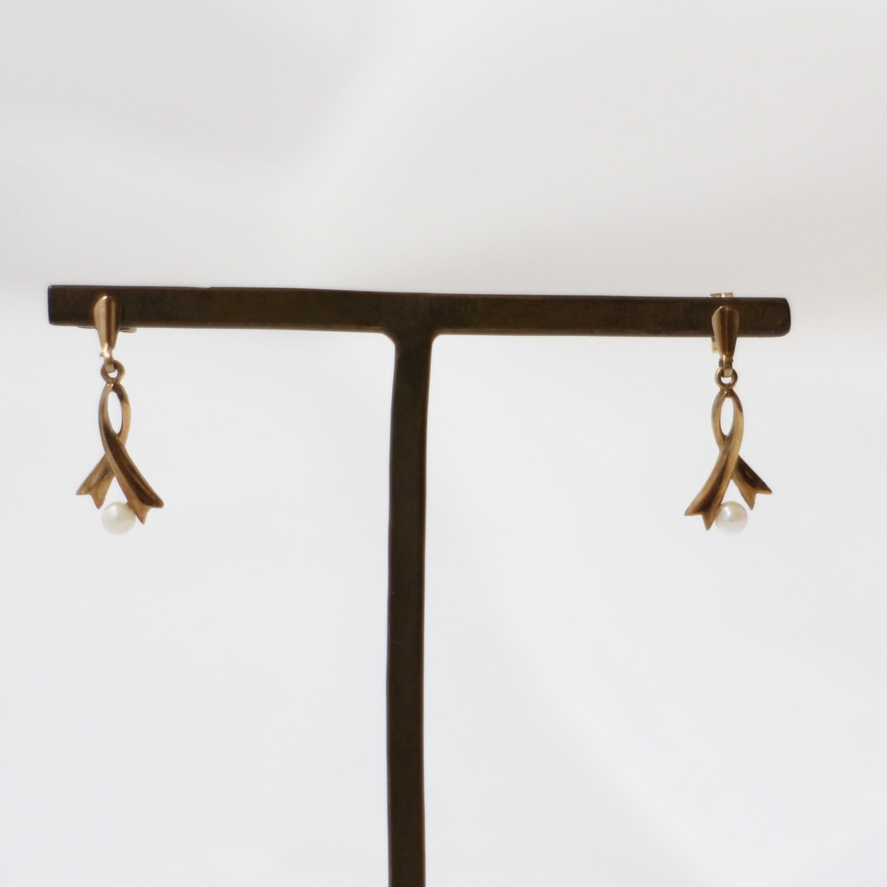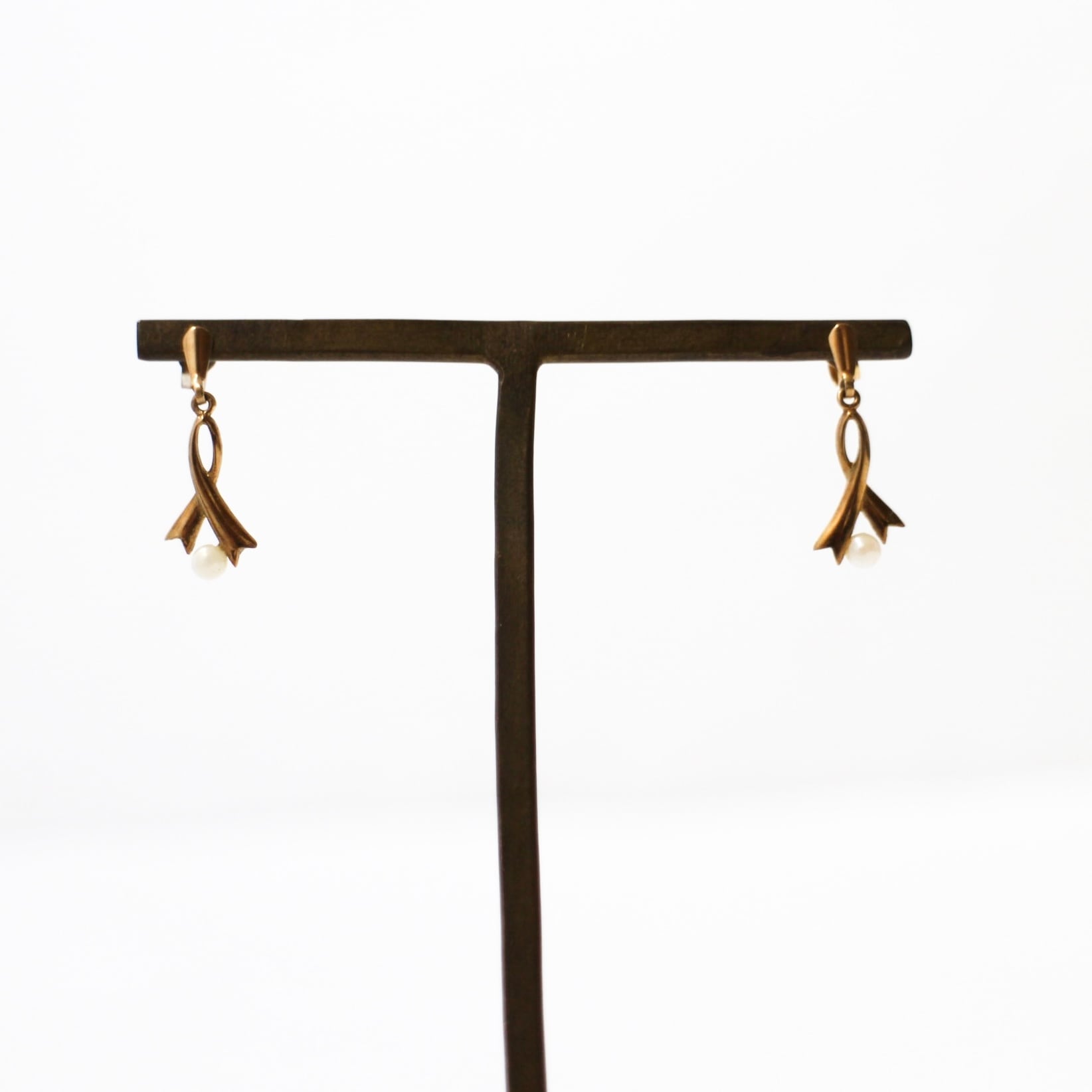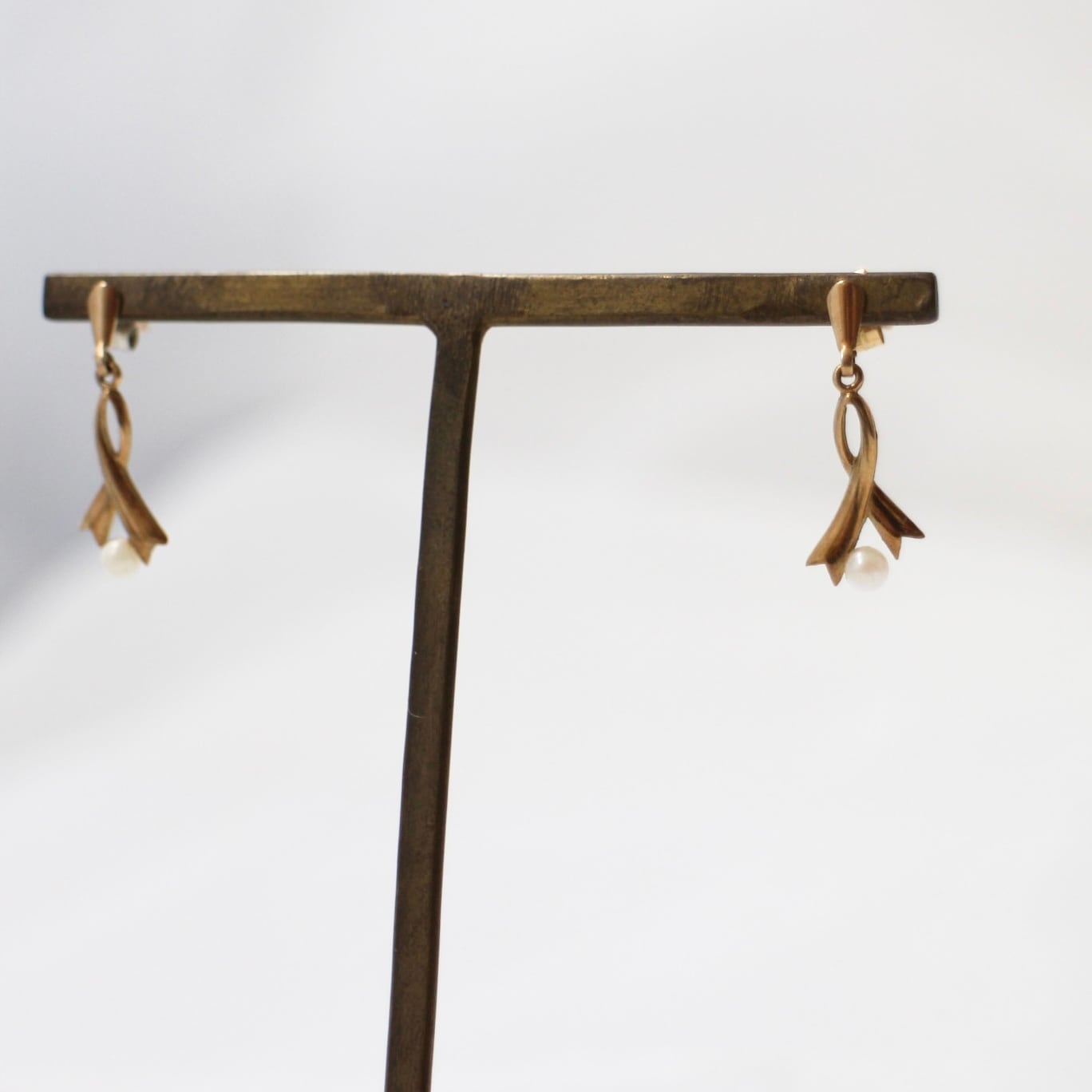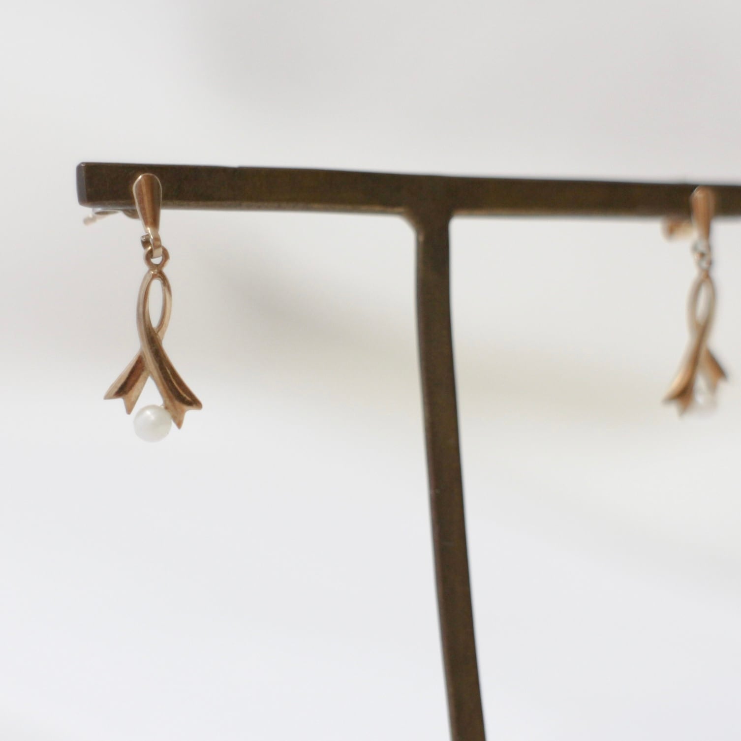K10×リアルパール*華奢リボン*ヴィンテージピアス