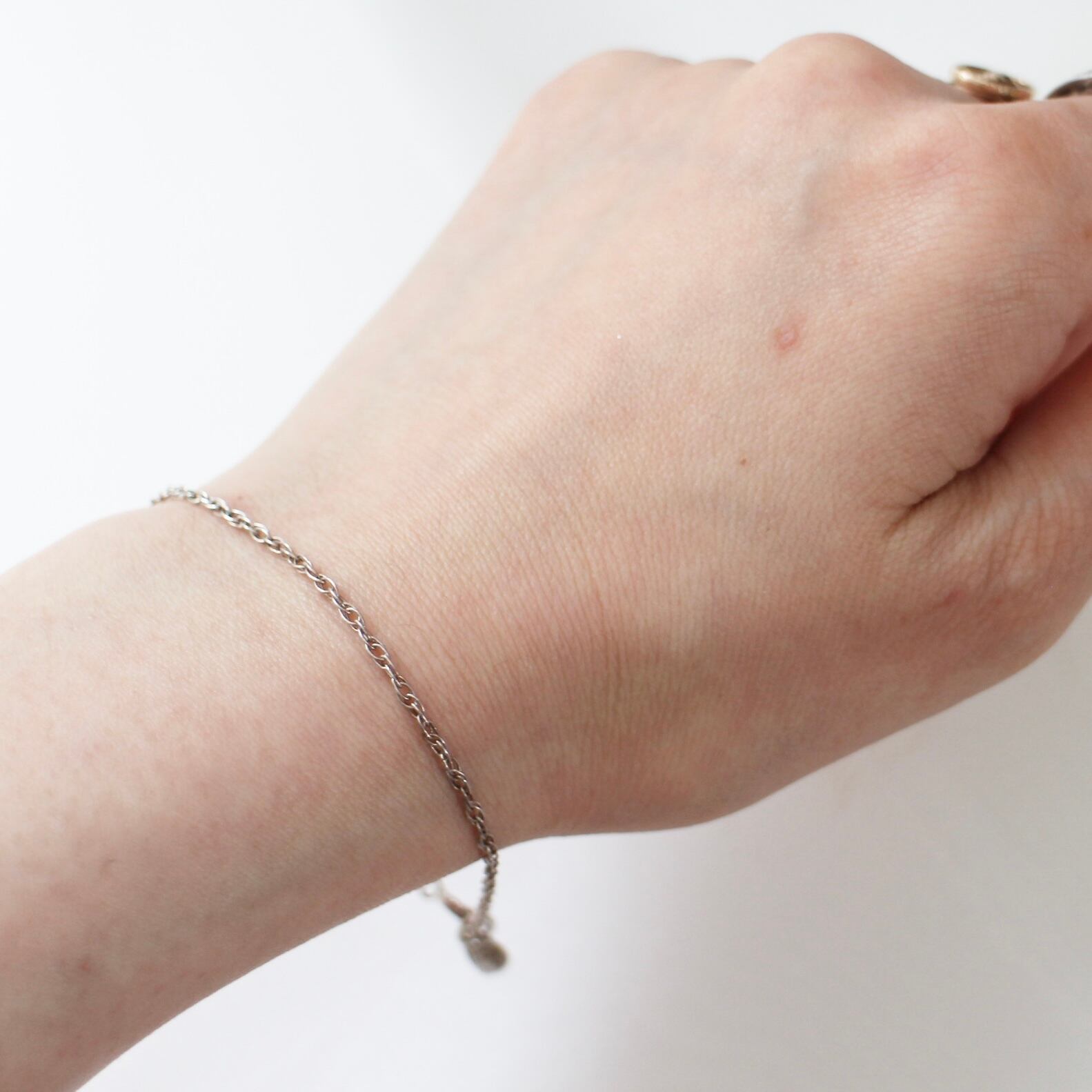 華奢でシンプルなシルバーブレスレット。