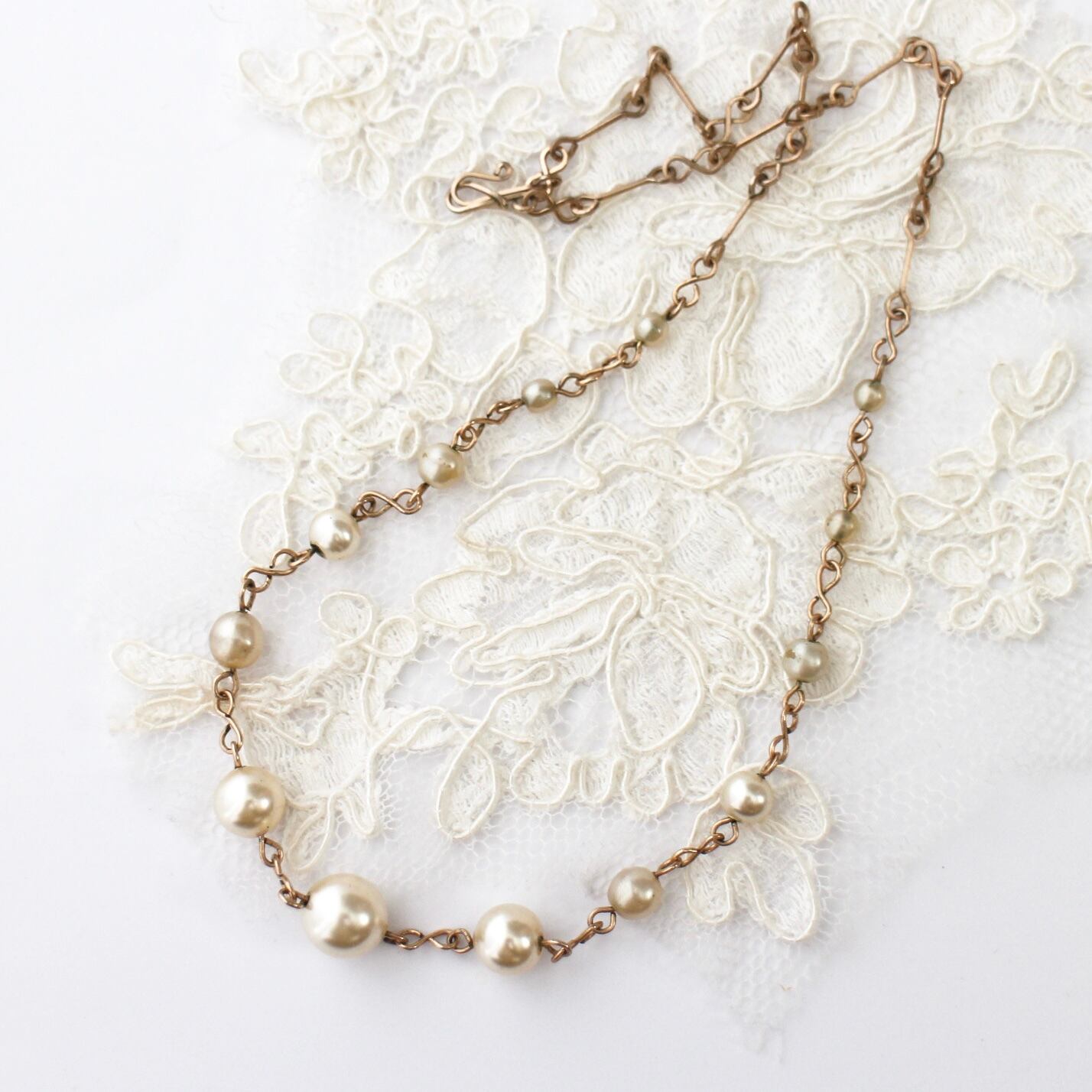 art déco*パール×バーチェーン*ヴィンテージネックレス