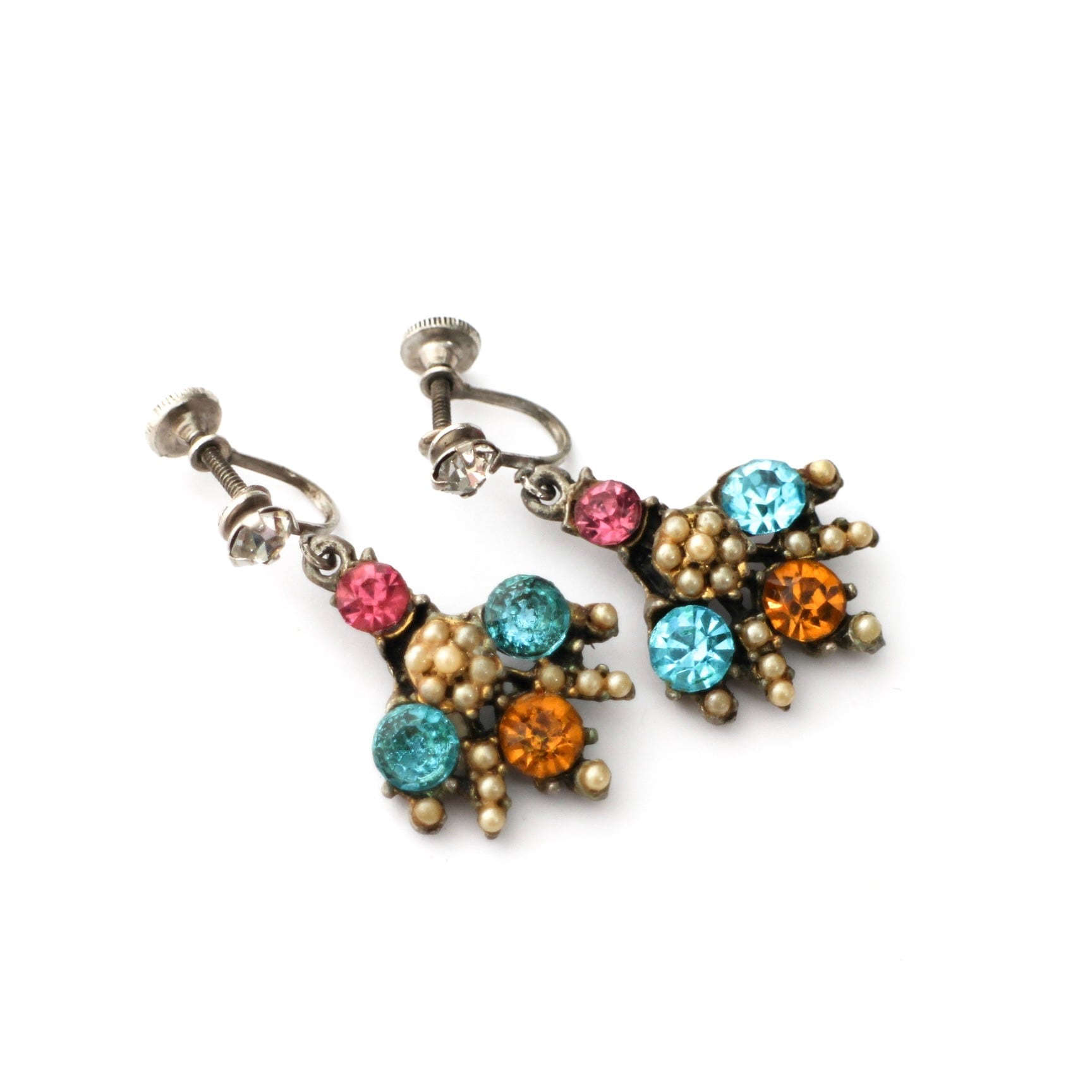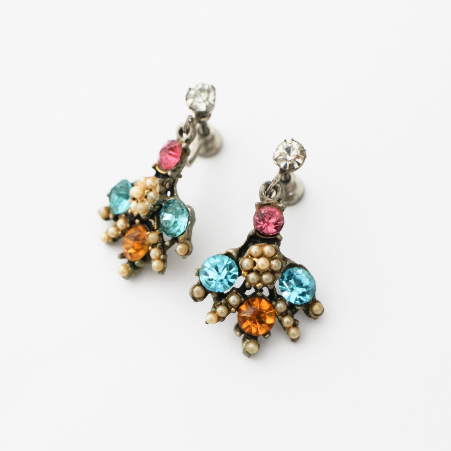 カラフルビジュー*パールフラワー*ヴィンテージイヤリング