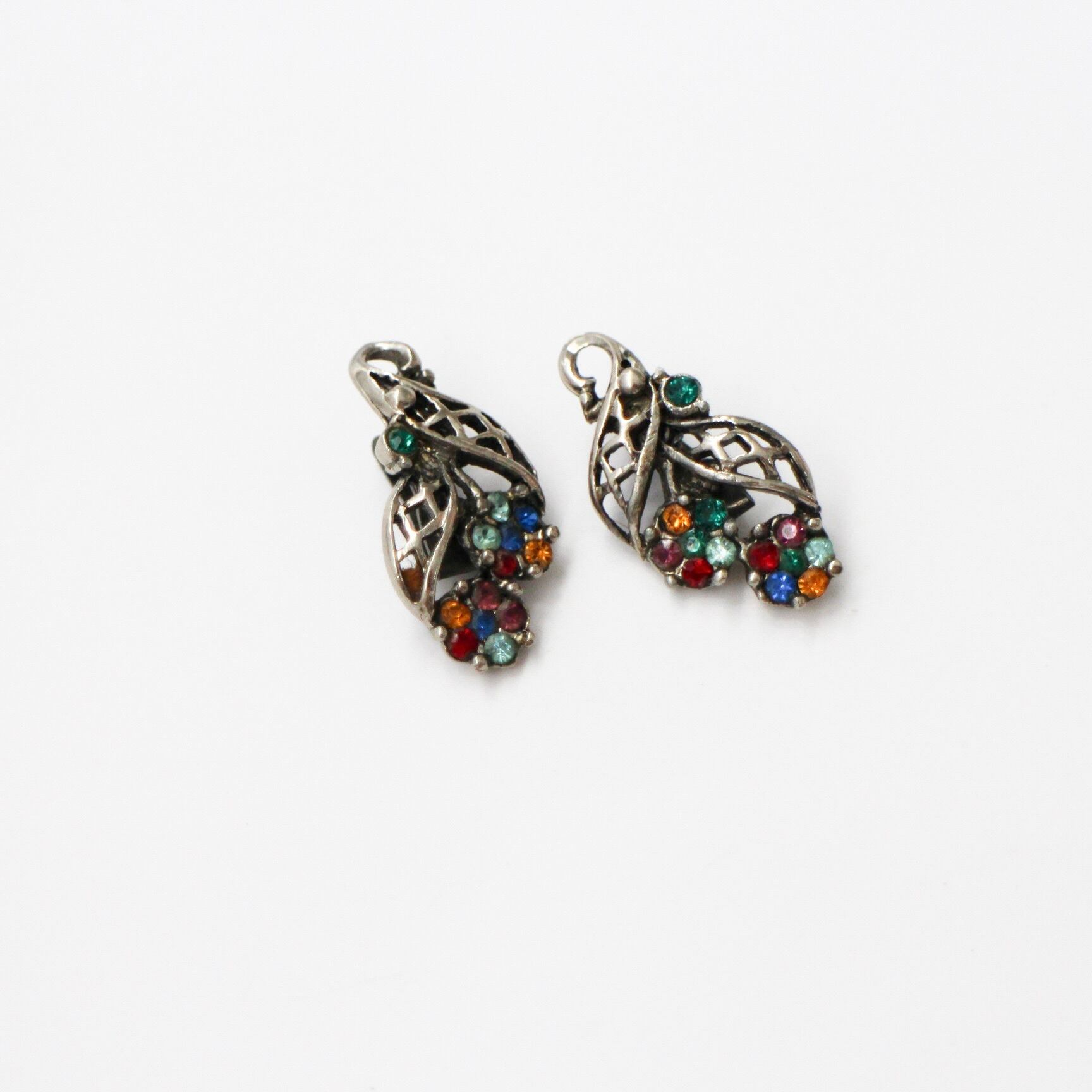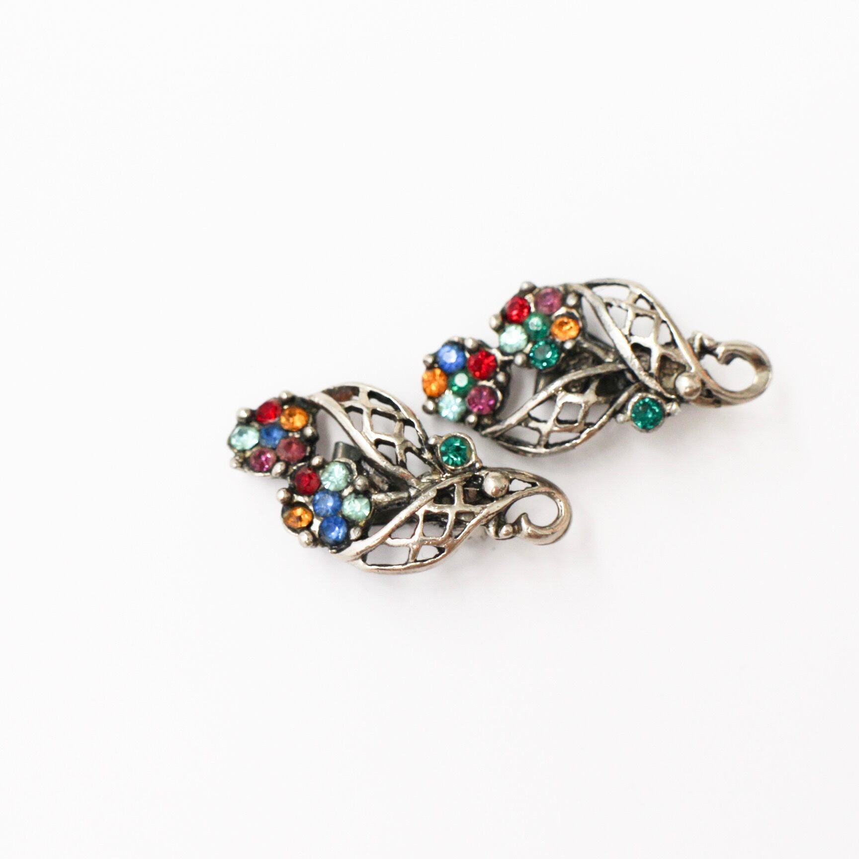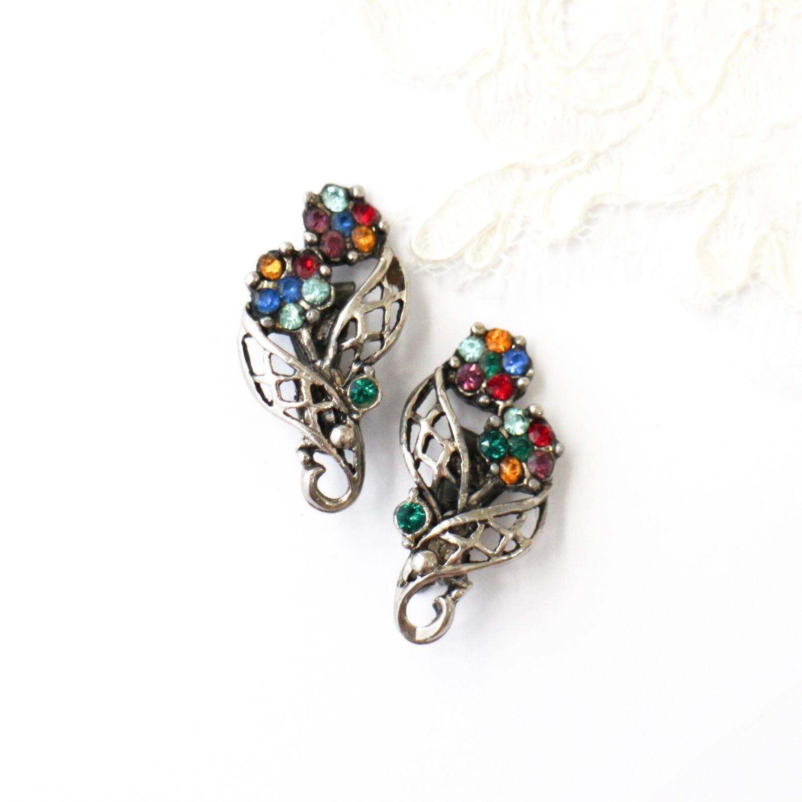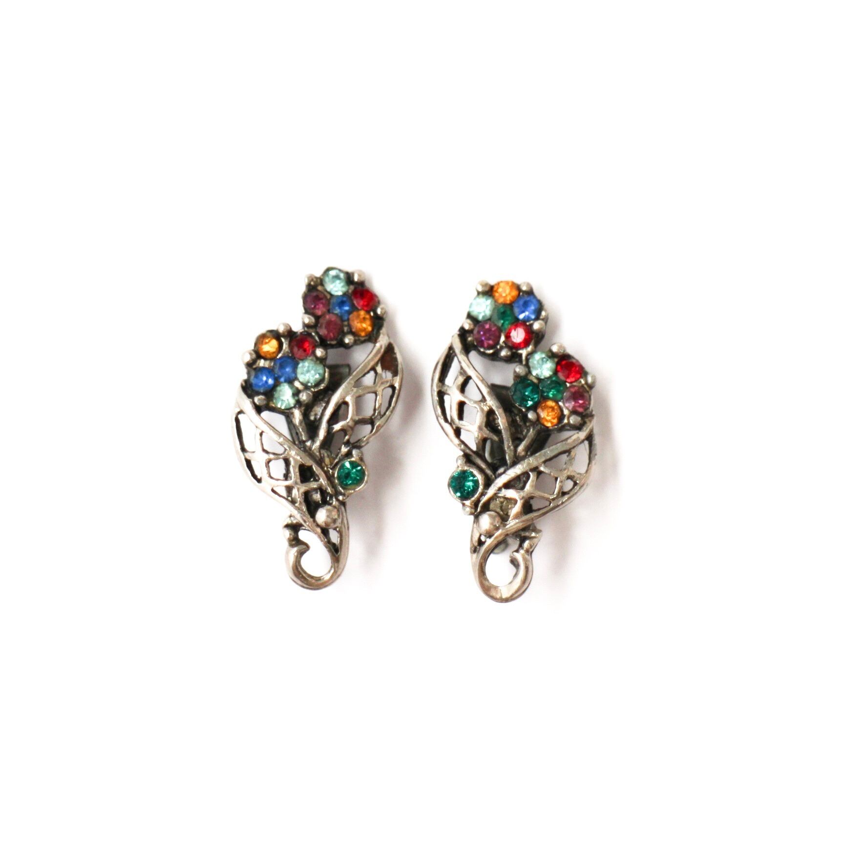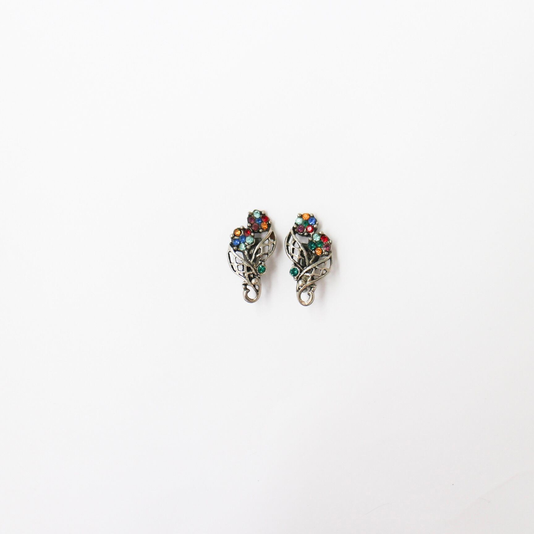 メタルワークリーフ*カラフルフラワー*ヴィンテージイヤリング