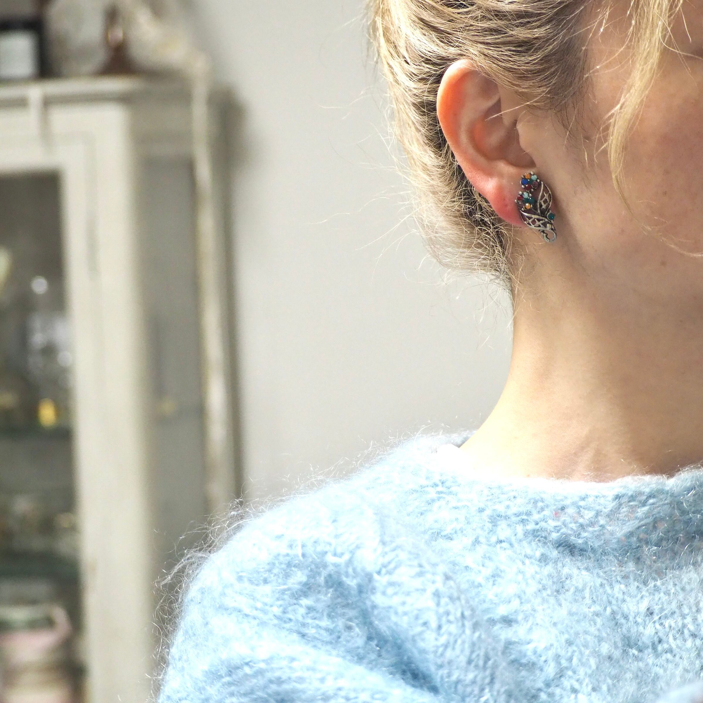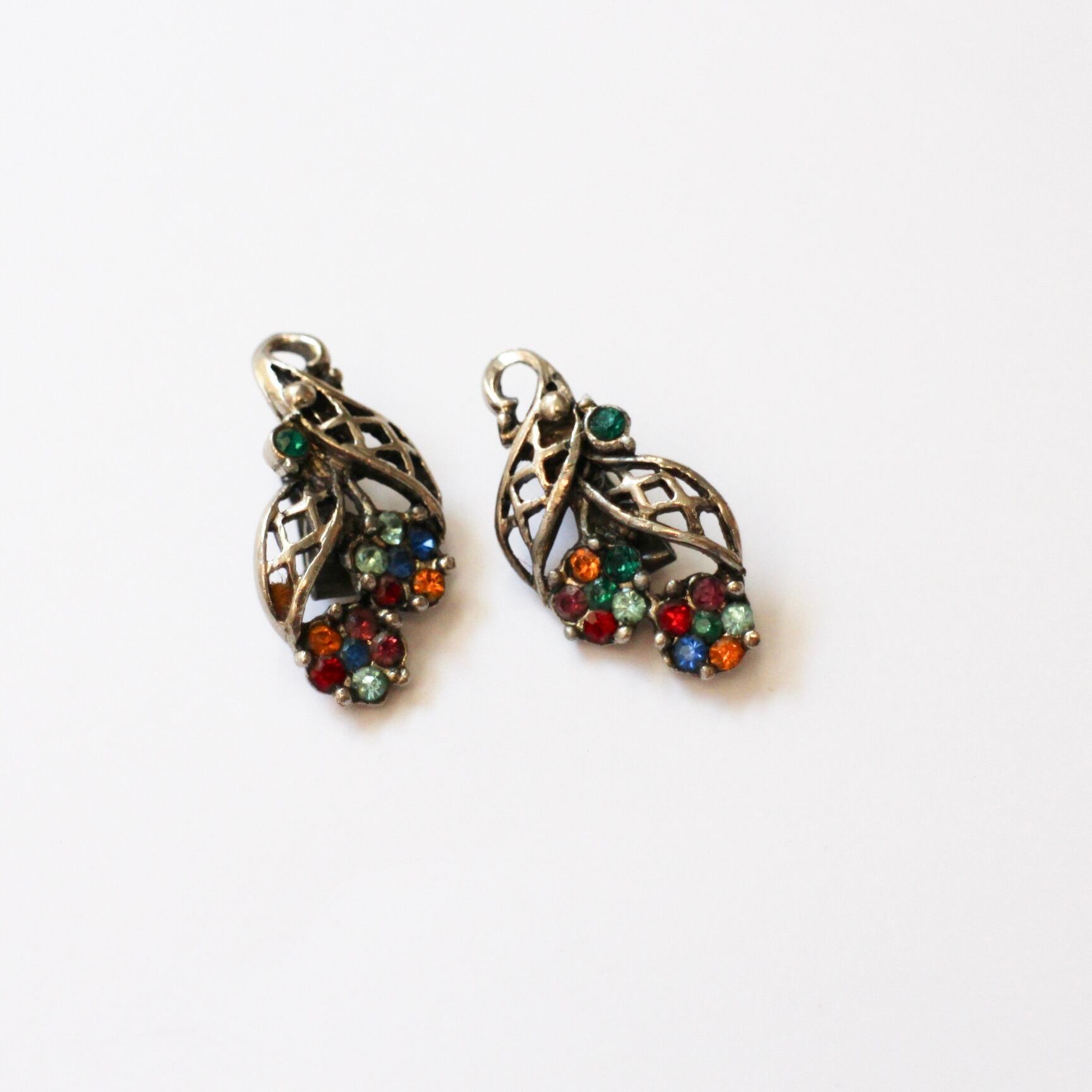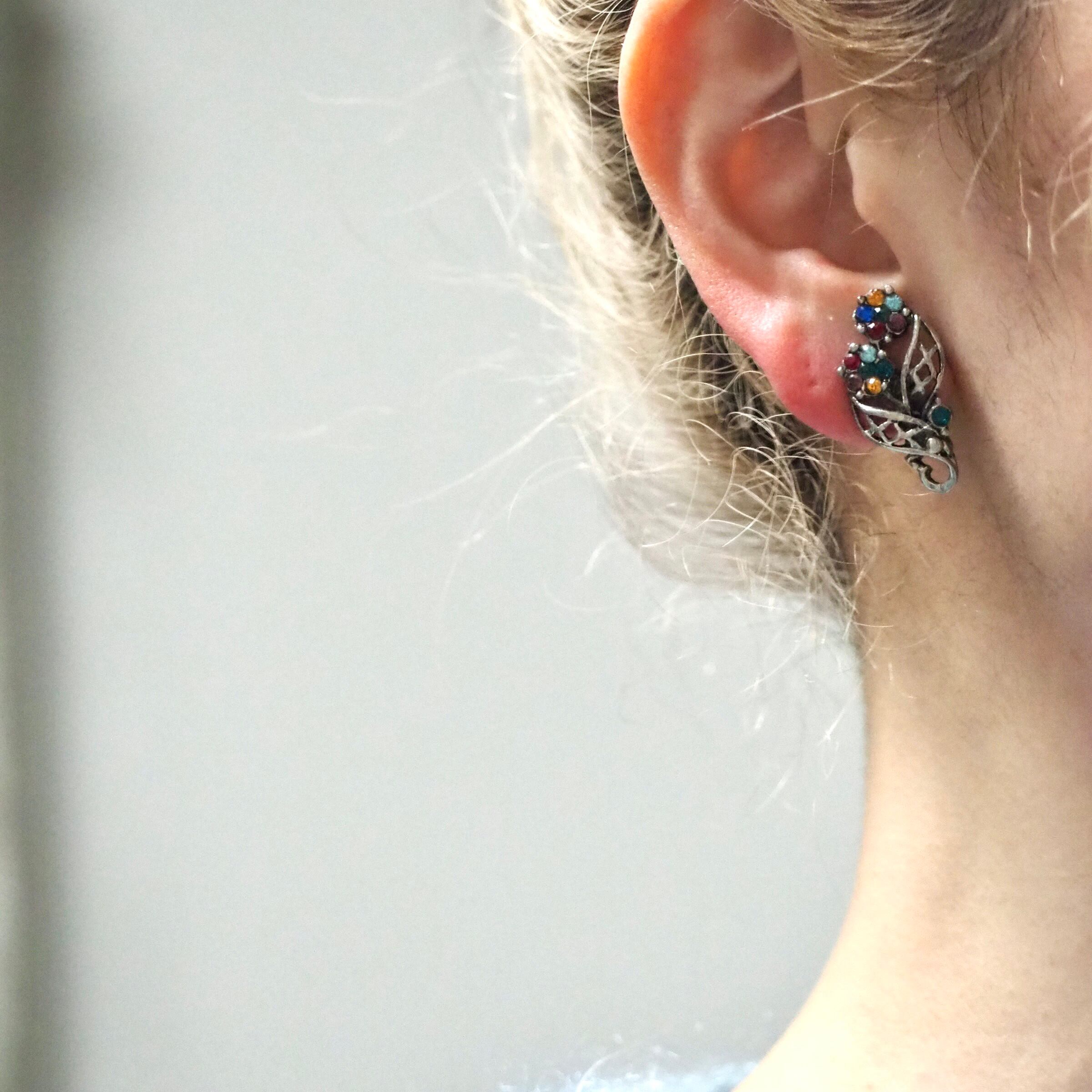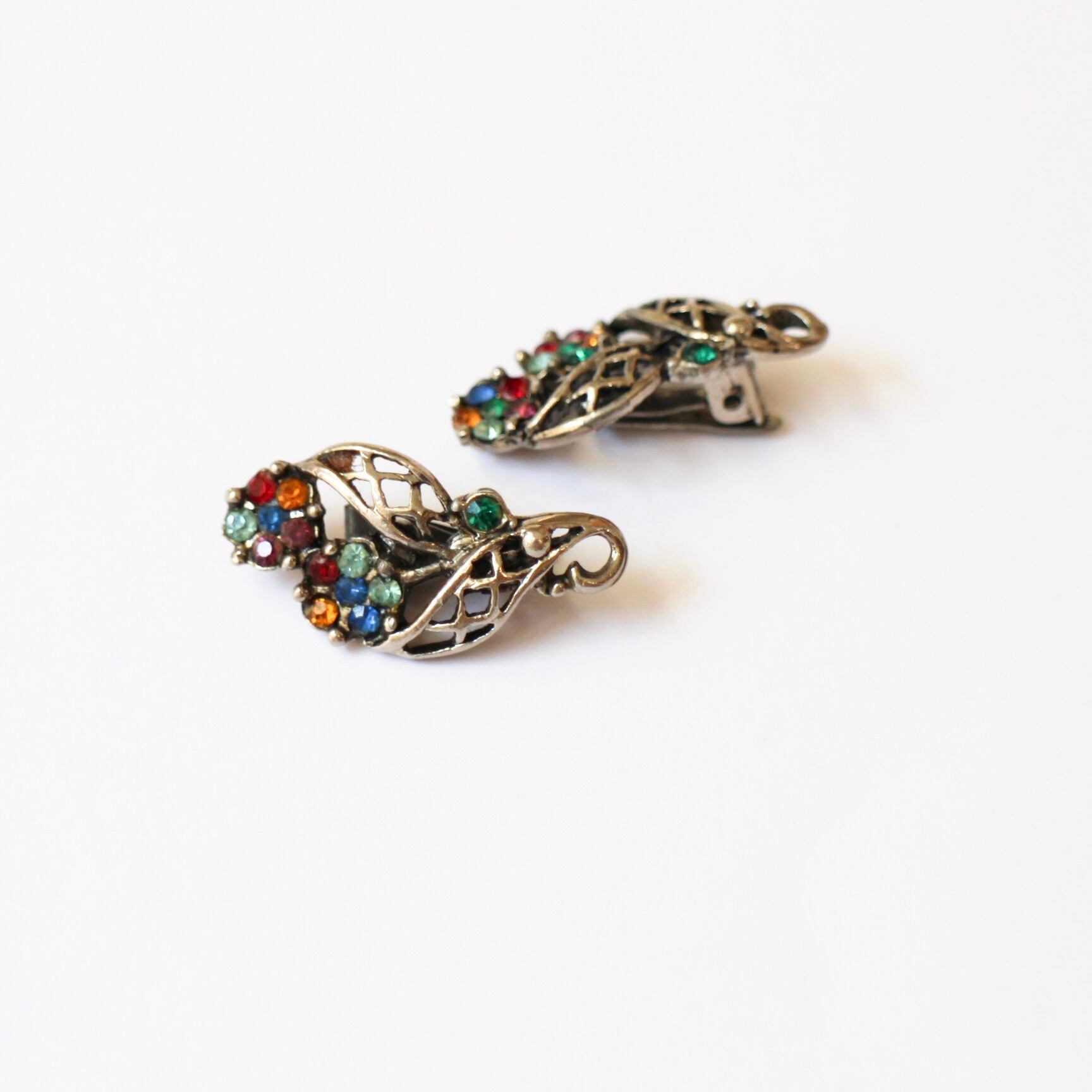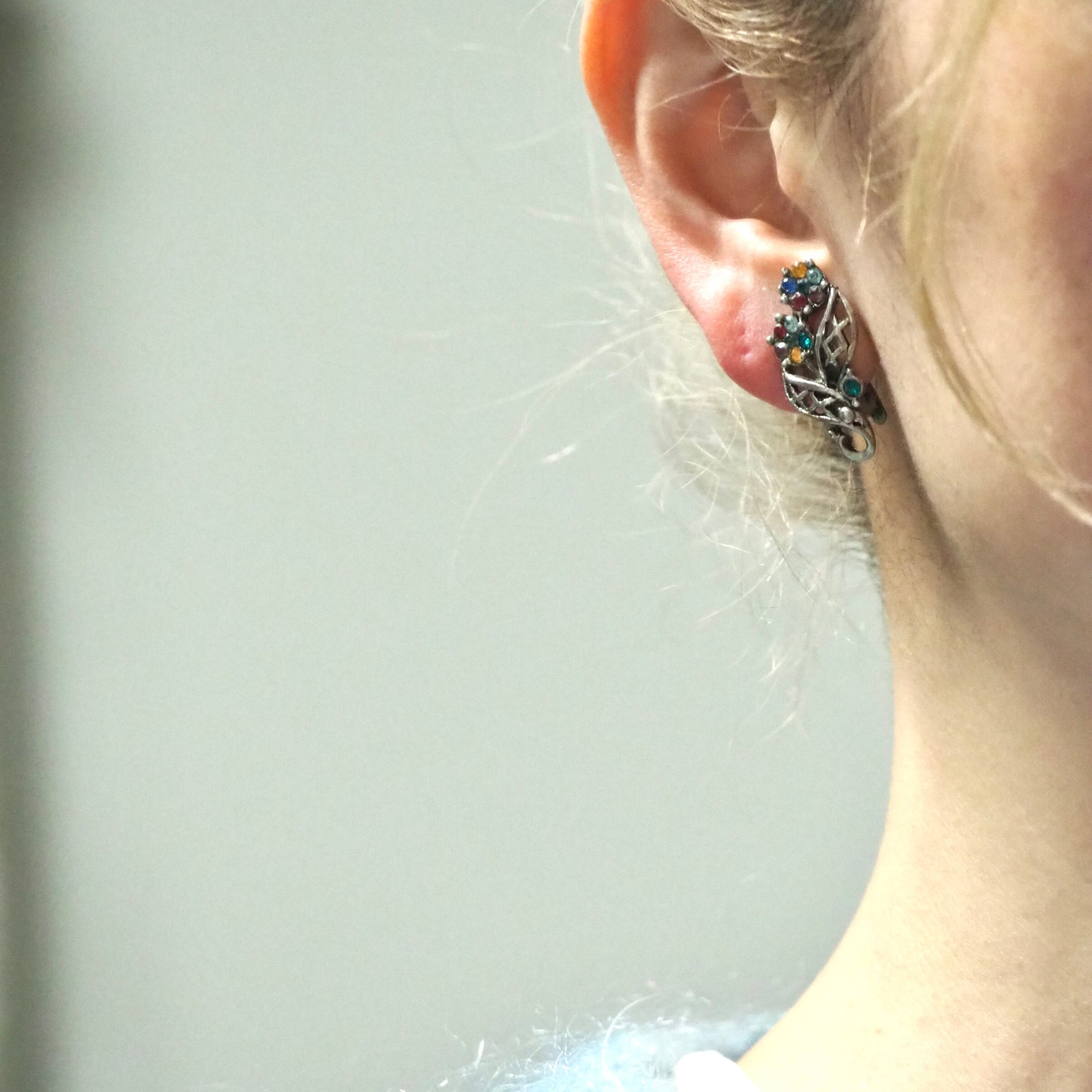 メタルワークリーフ*カラフルフラワー*ヴィンテージイヤリング