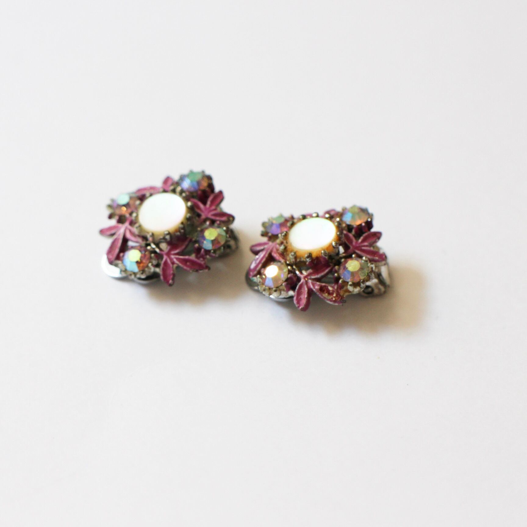 パープルリーフ*シェルパーツ*ヴィンテージイヤリング