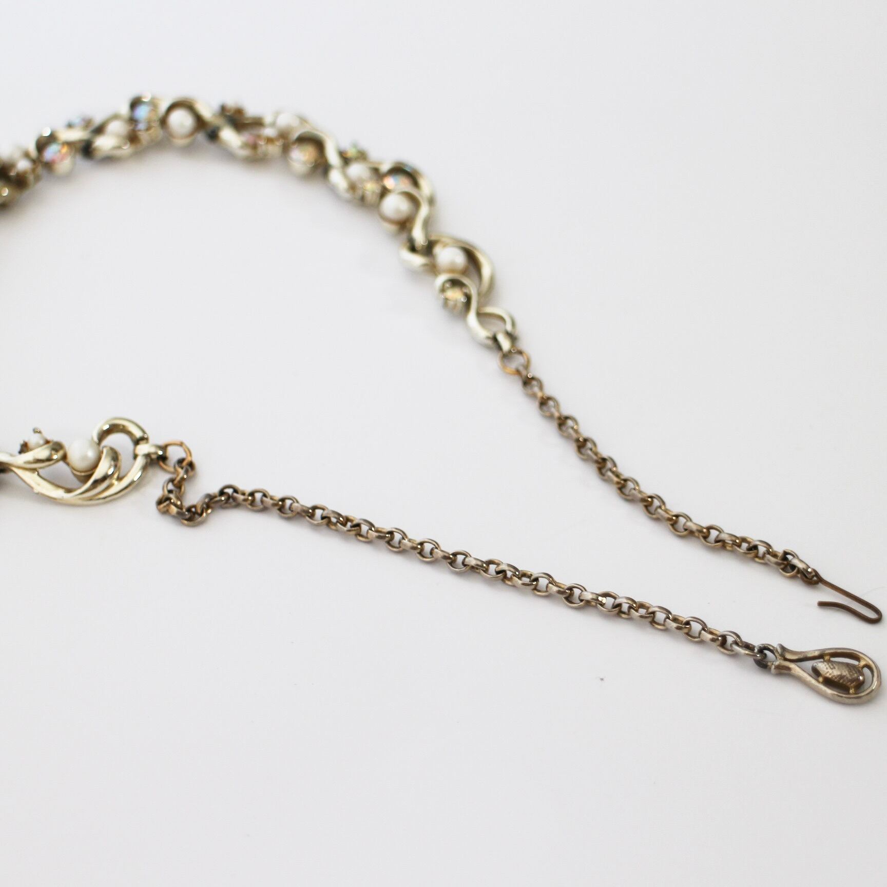 その間に虹色にきらめく小粒ストーンを散りばめたヴィンテージネックレス。