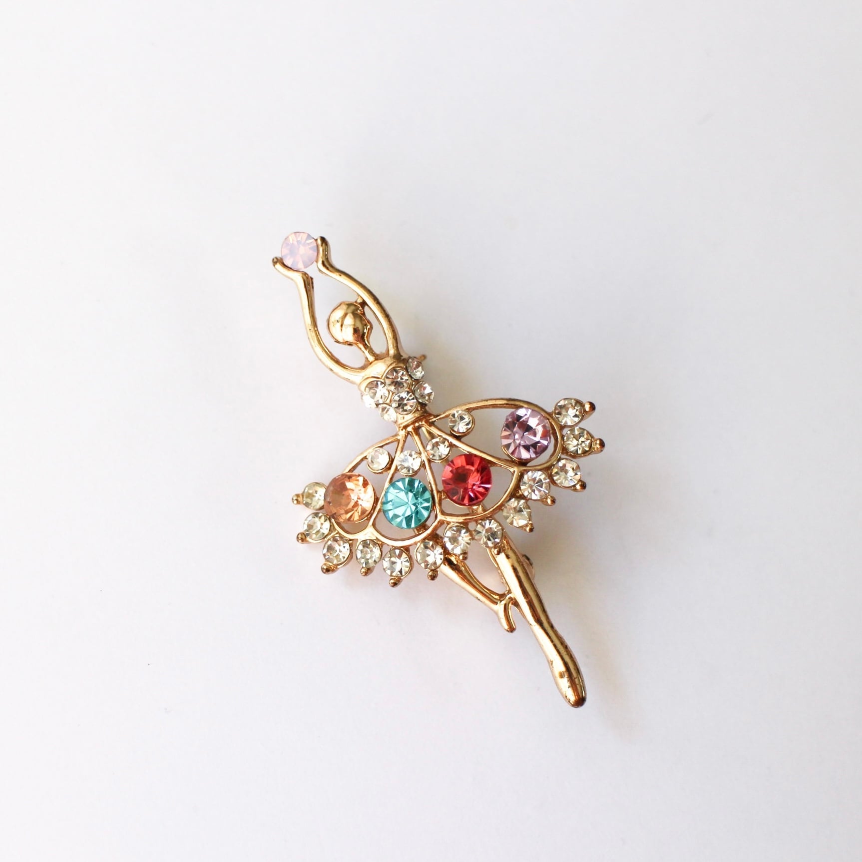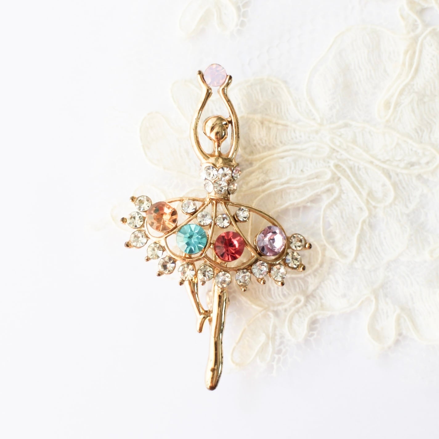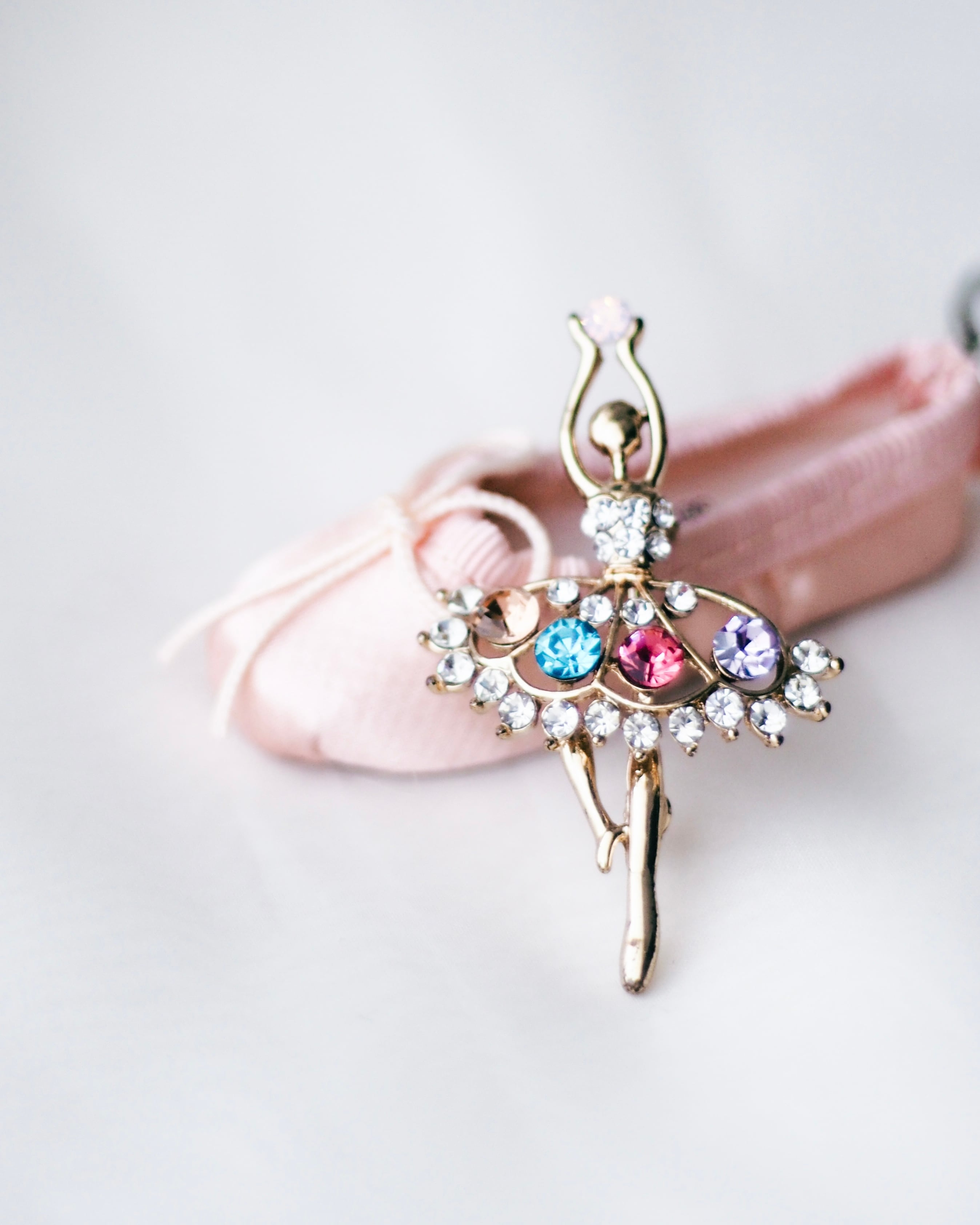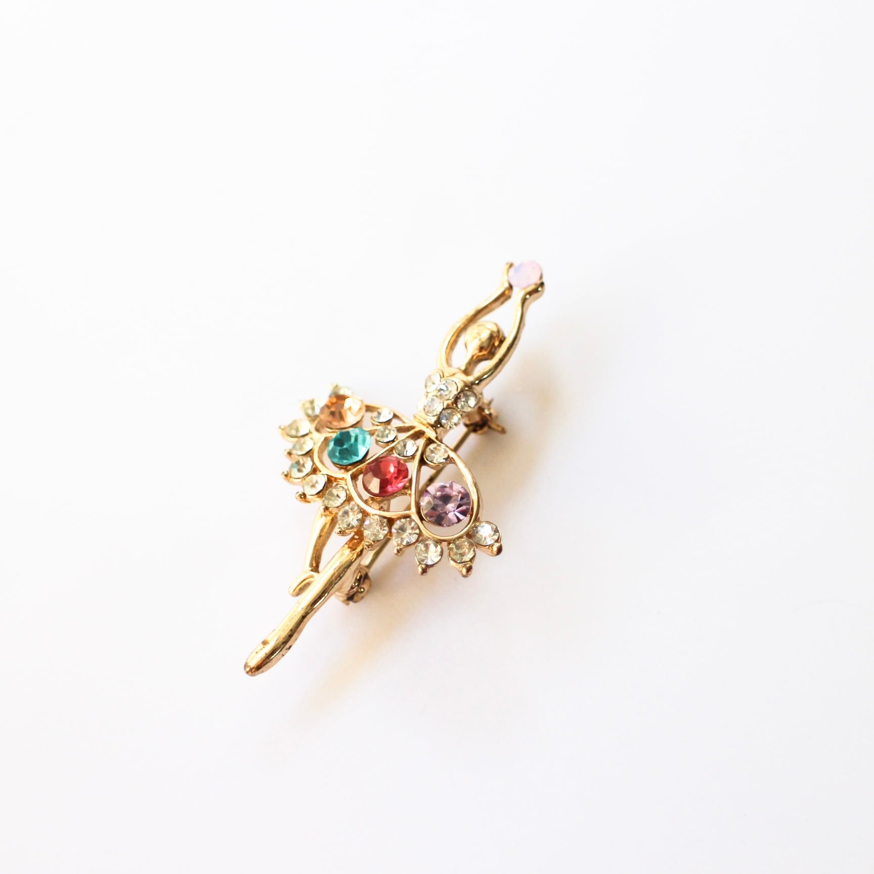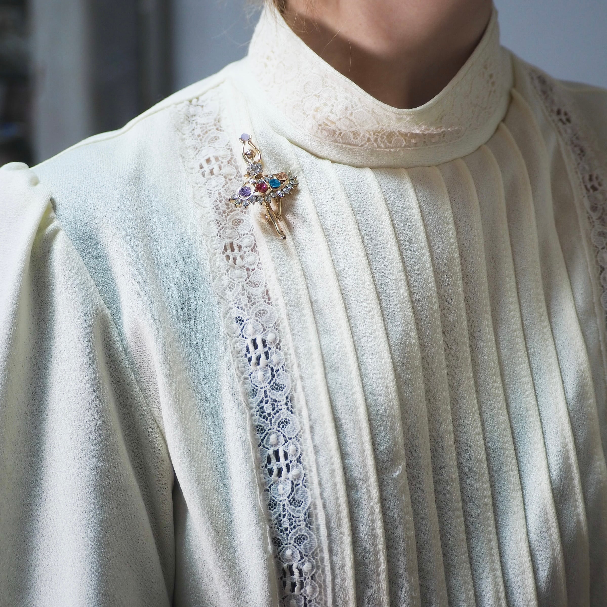 今まさに舞台の中央で回転している瞬間を切り取ったようなブローチ。
