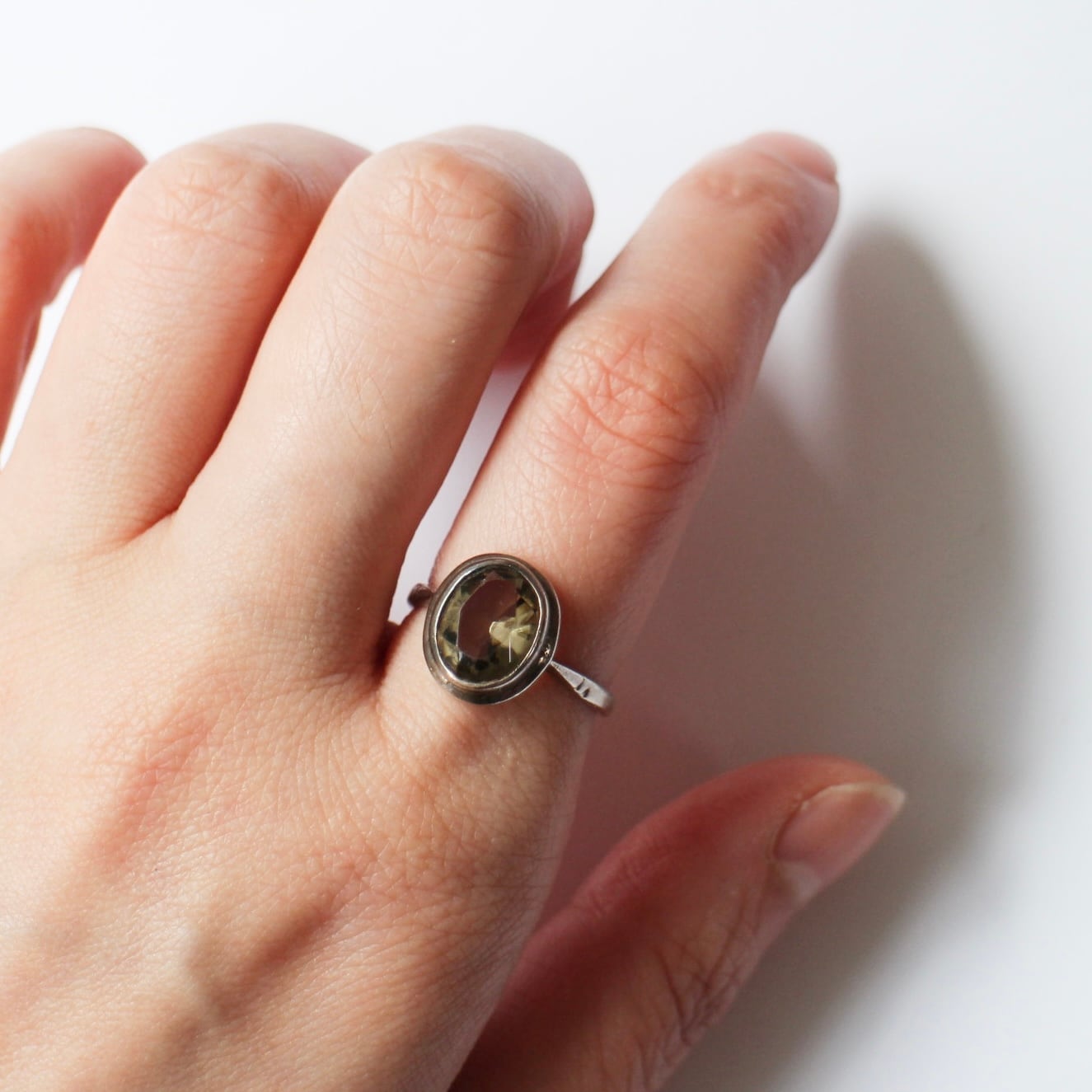 シンプルなシルバーベゼルで囲んだシルバーリング。