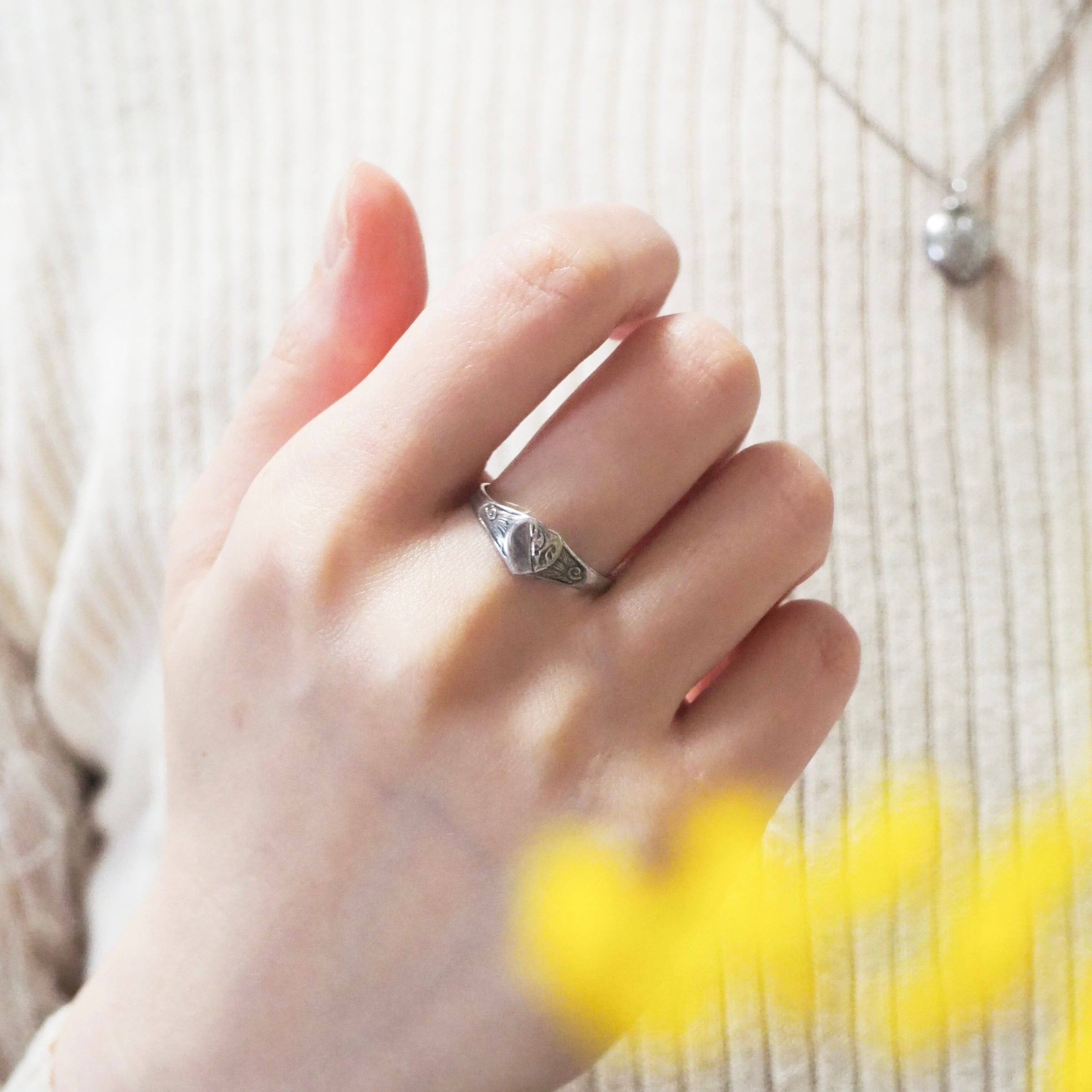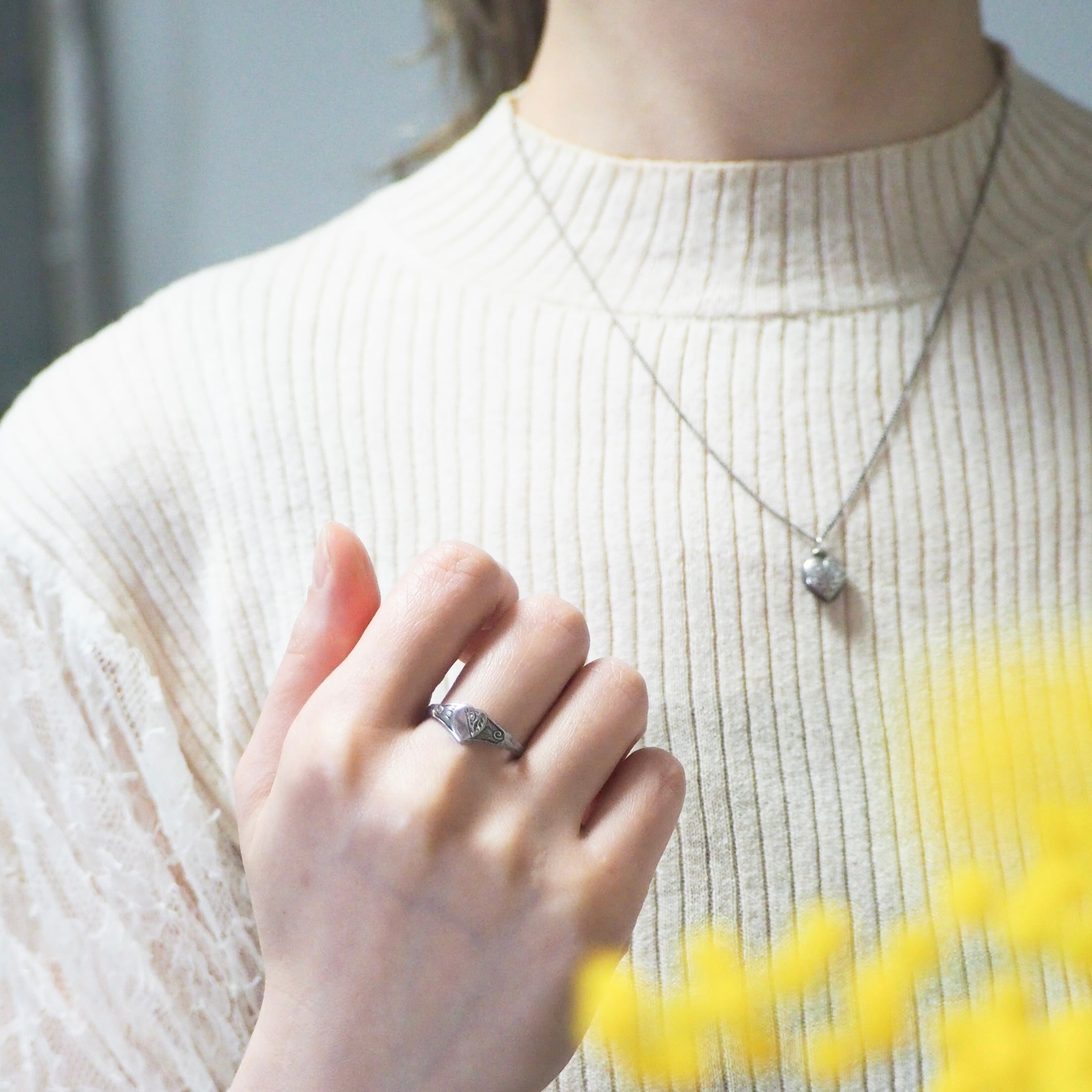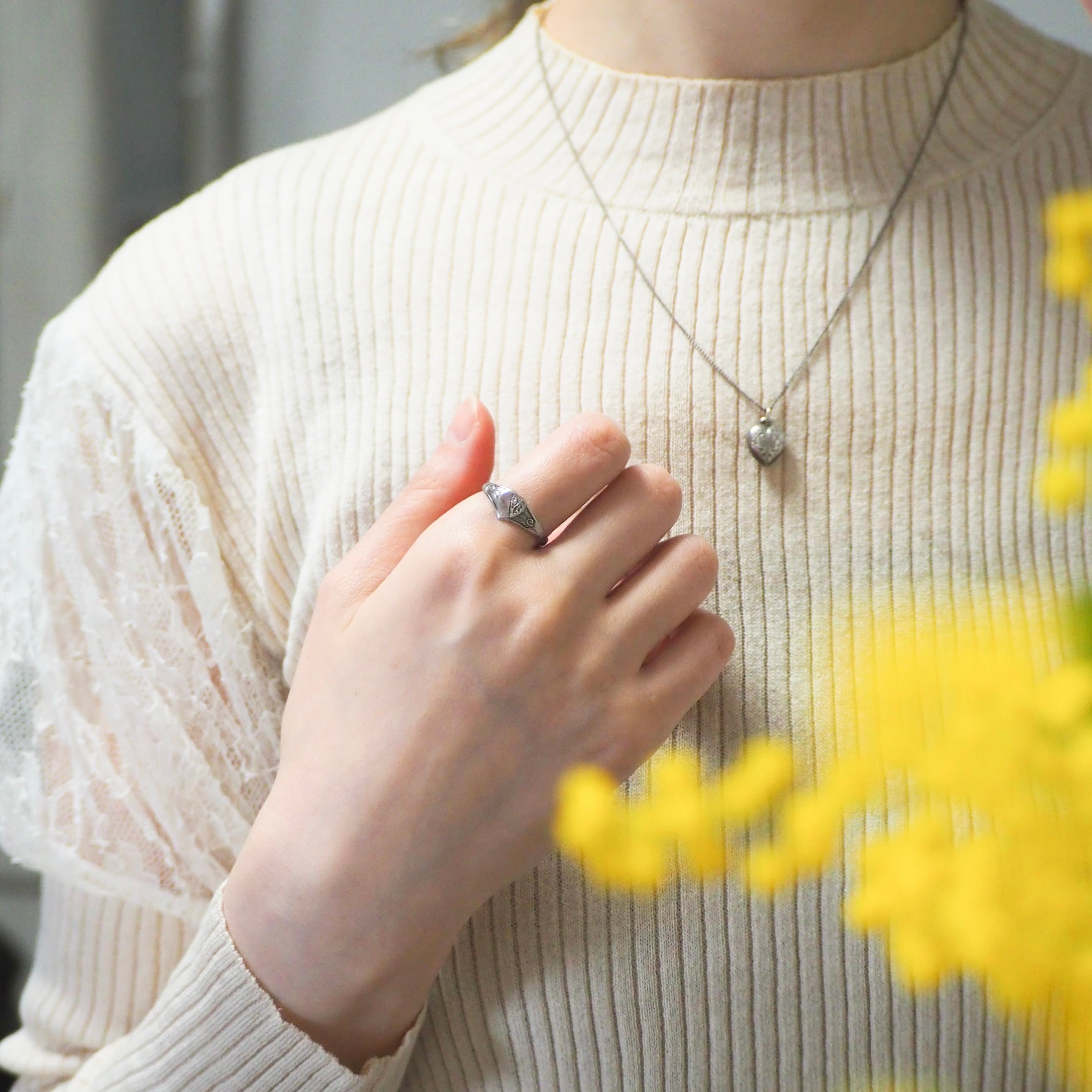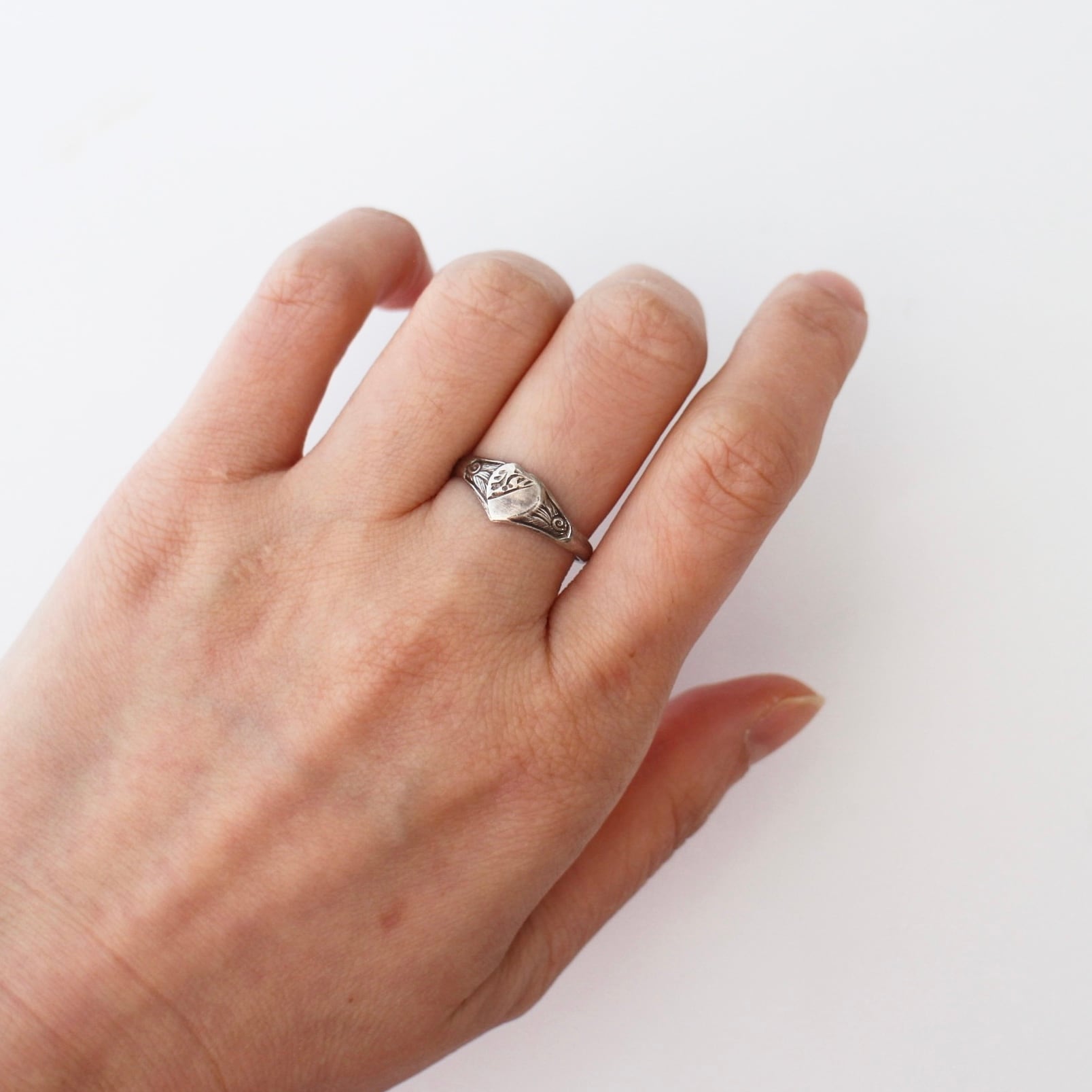 Silver シルバー ハート シグネット ヴィンテージ リング