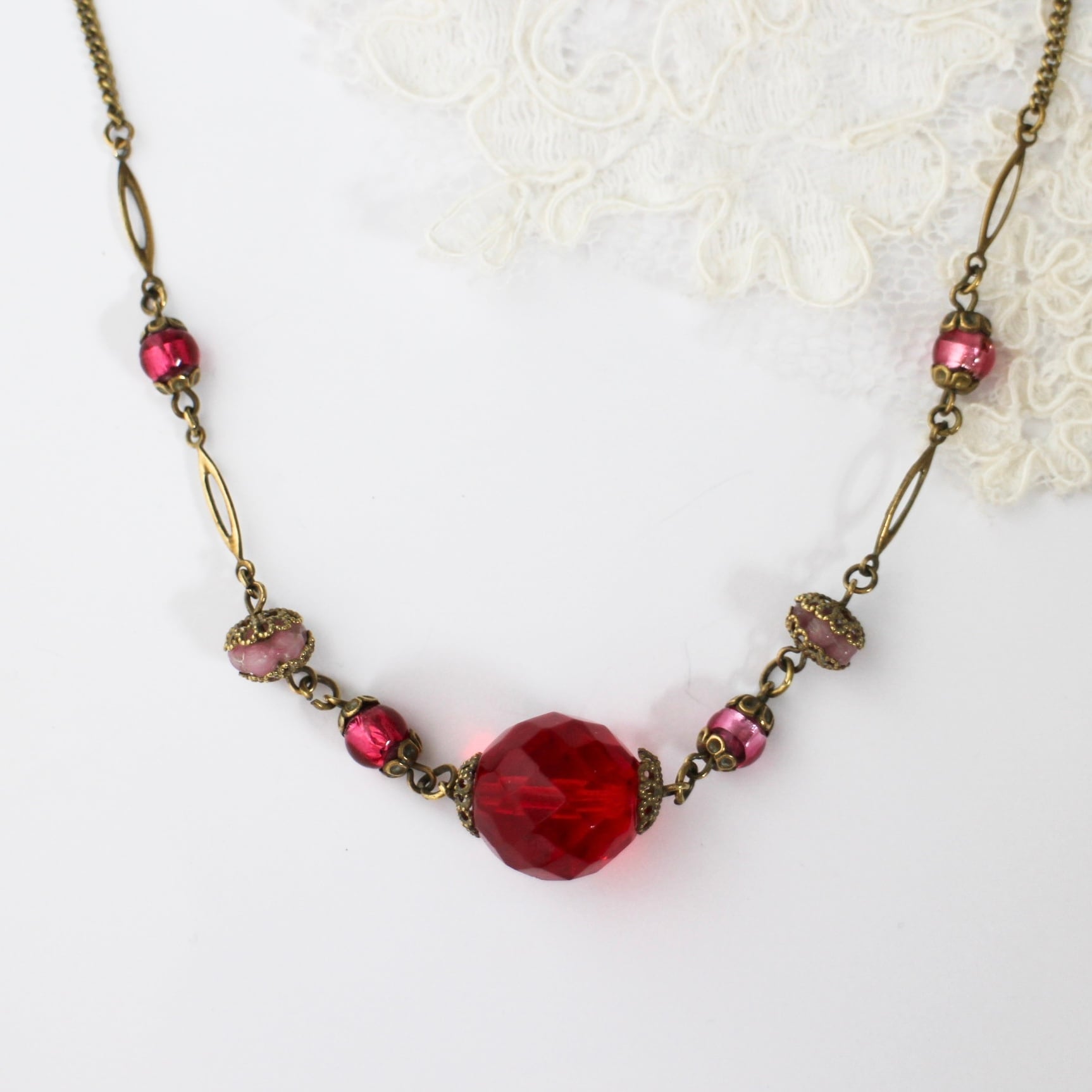 アールデコ レッドビジュー ヴィンテージネックレス