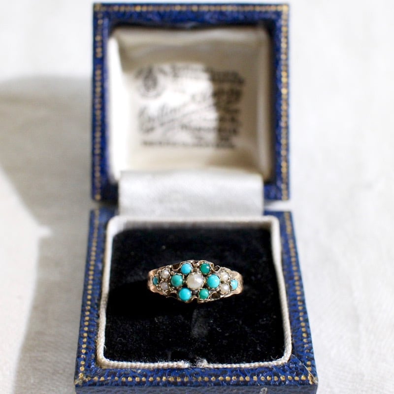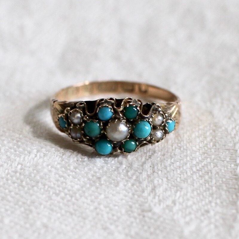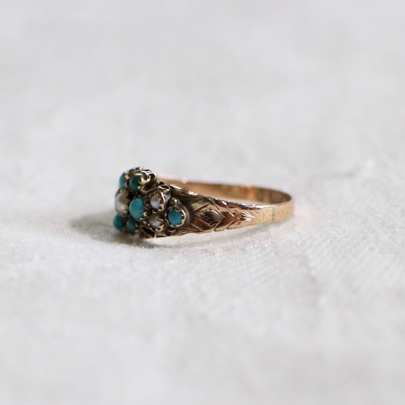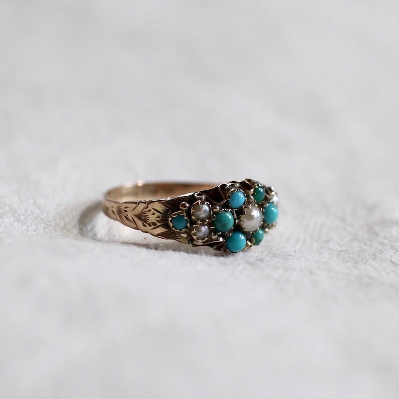 ヴィクトリアン*9kゴールド*ターコイズ*パールアンティークリング