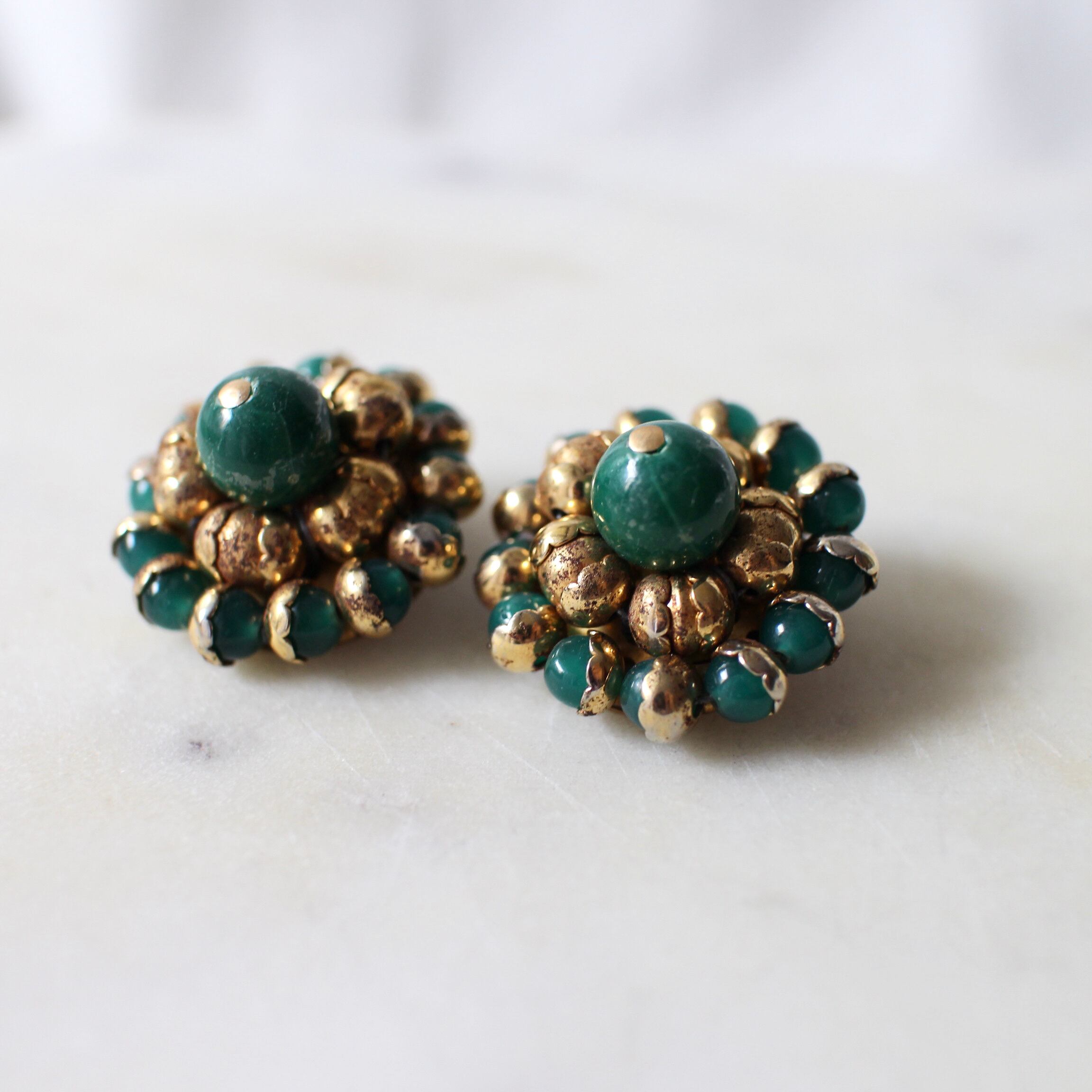 フランスヴィンテージ*グリーン×ゴールド*サークルイヤリング