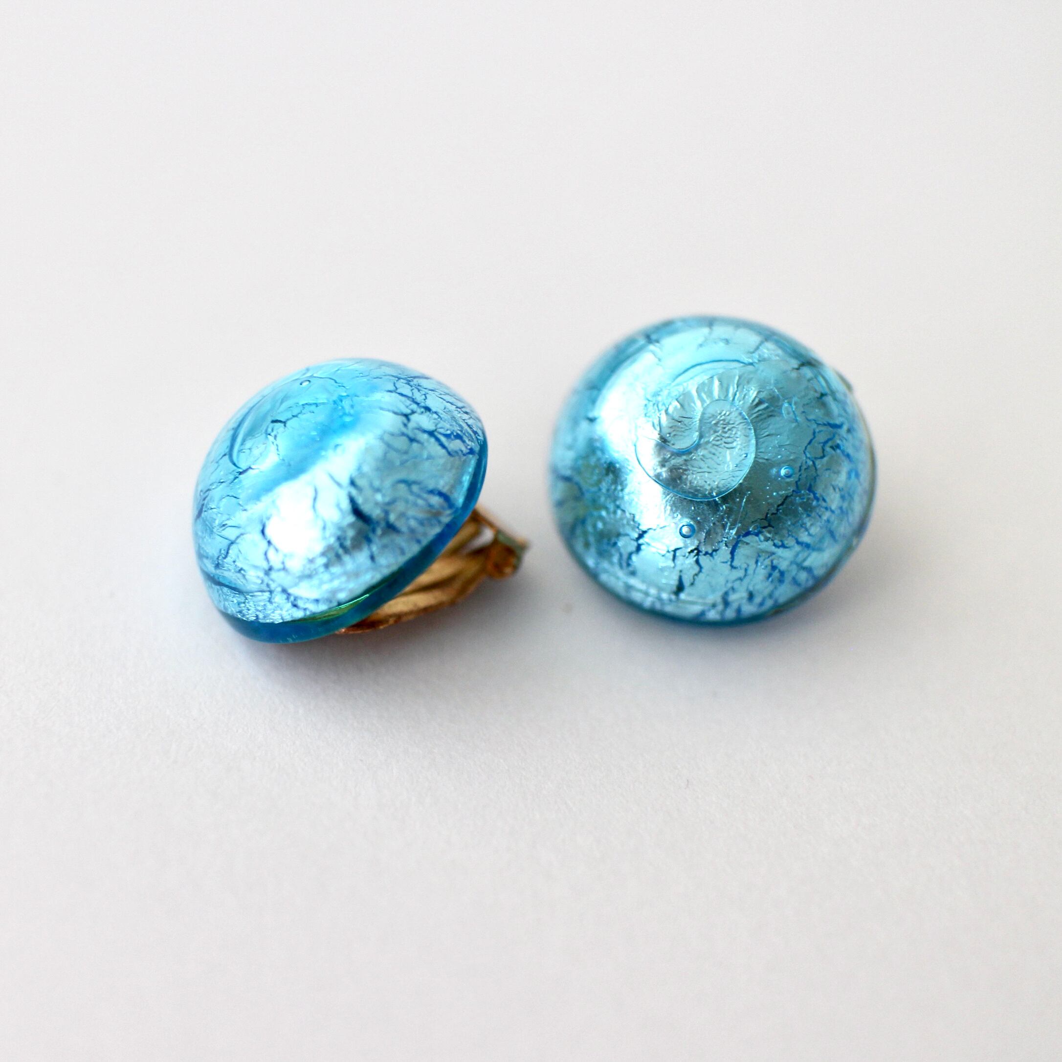 明るいブルーが印象的なヴィンテージイヤリング。